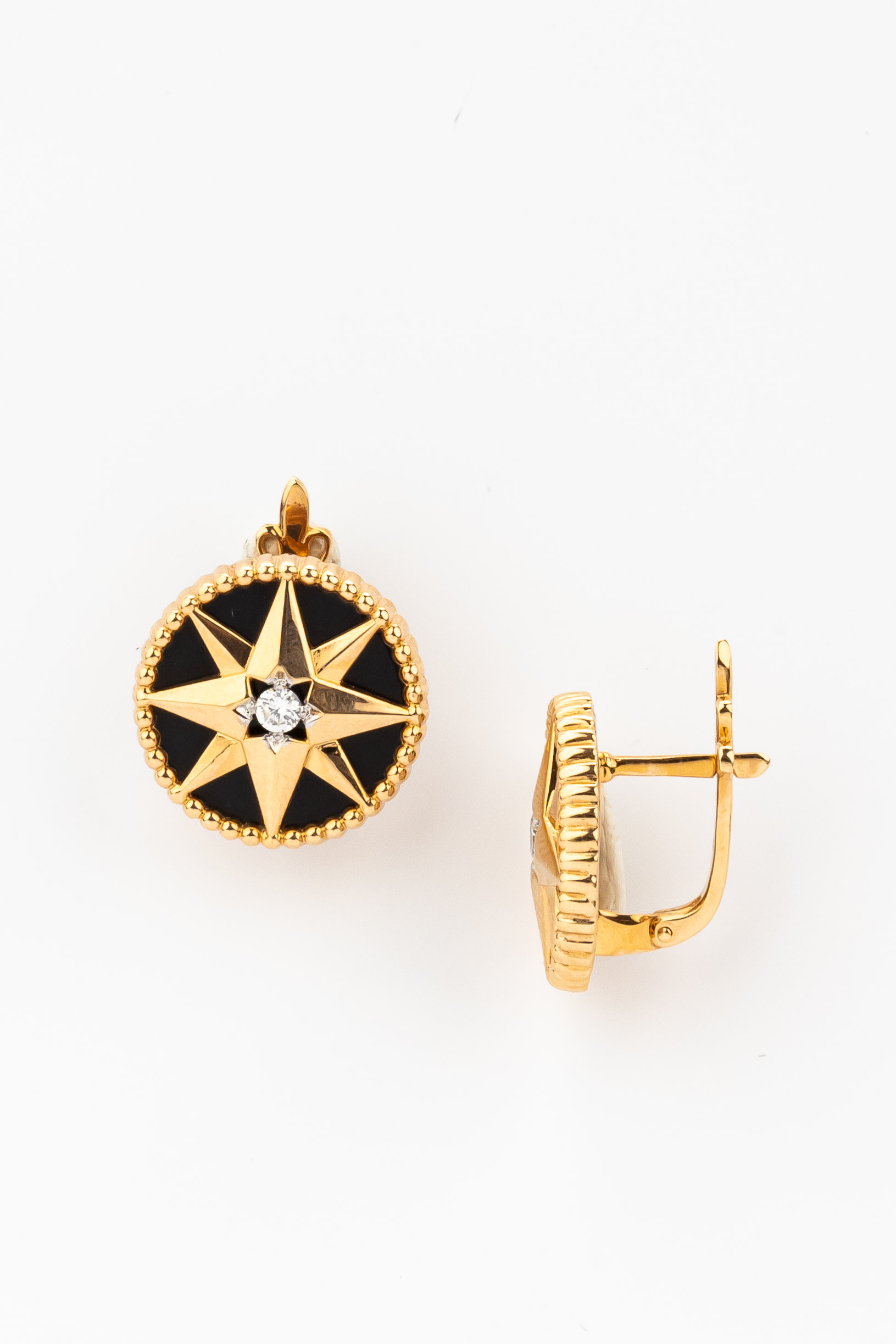 Серьги из золота c фианитом и ониксом