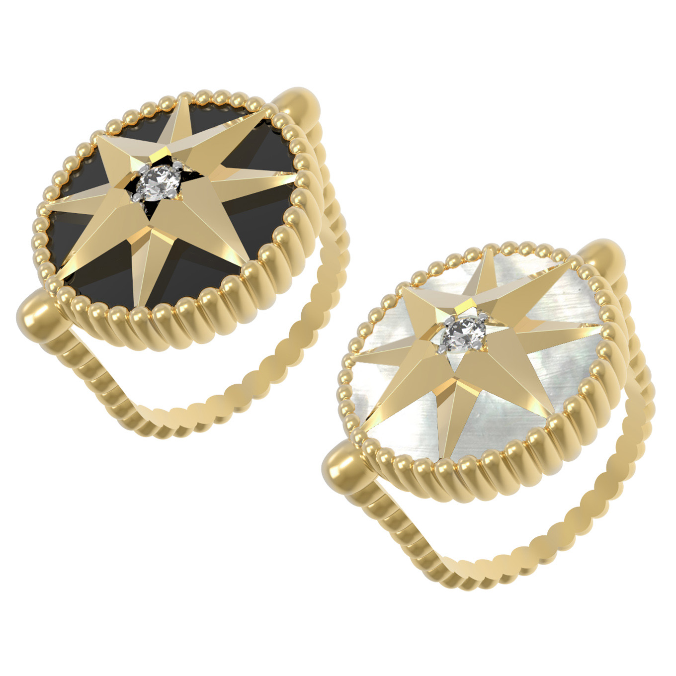 Кольцо из лимонного золота c фианитом, ониксом и перламутром