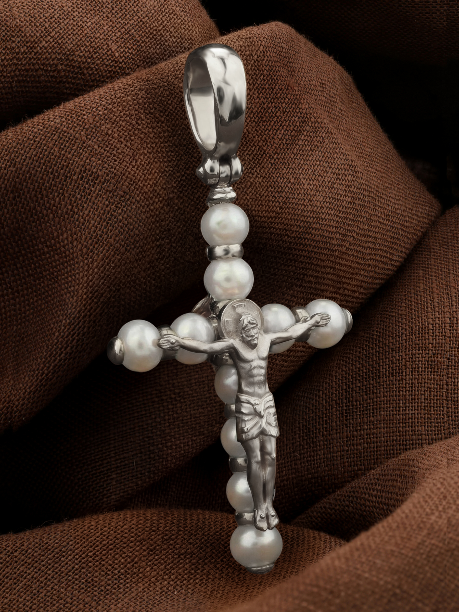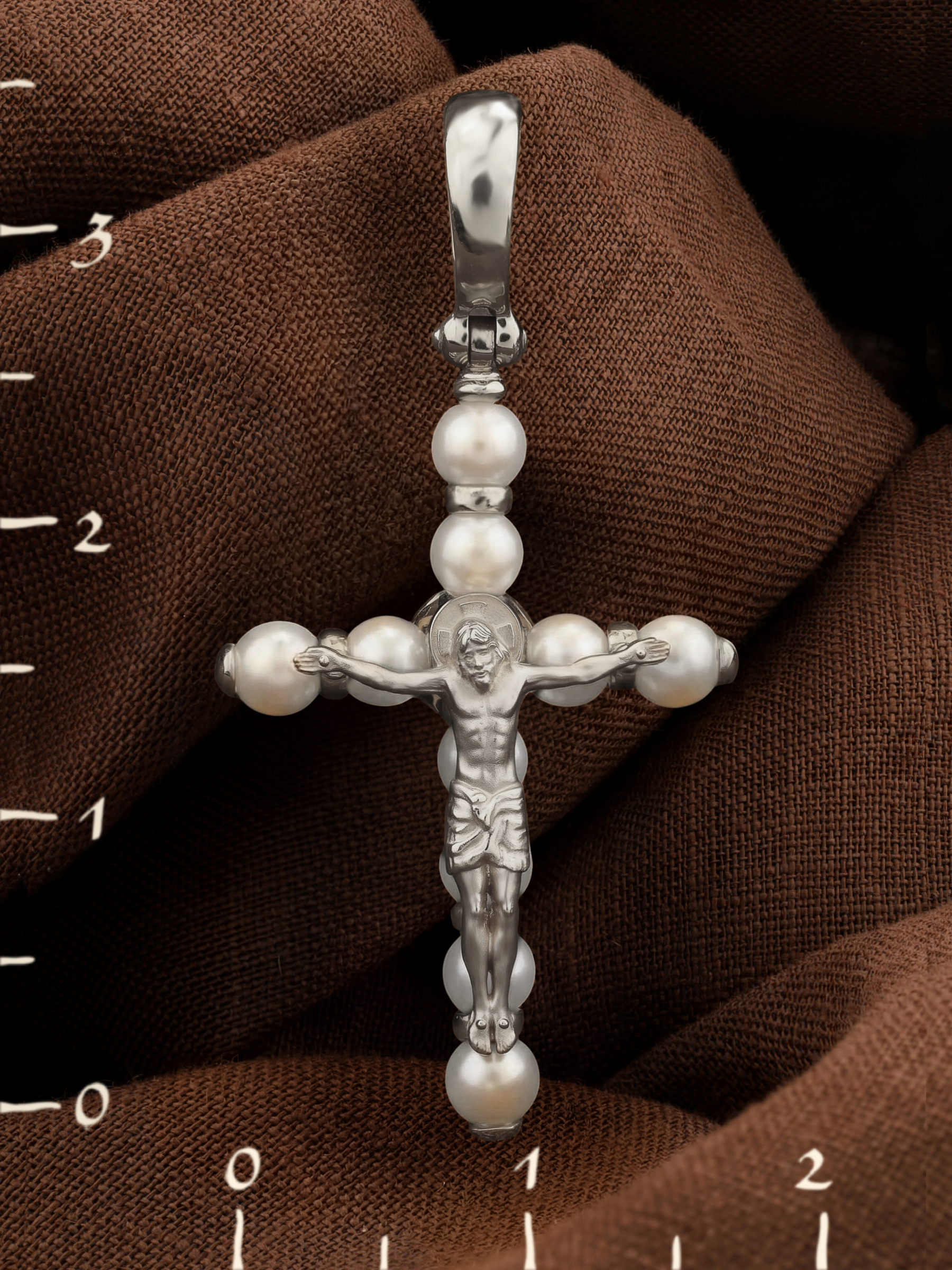 Крест из белого золота c жемчугом