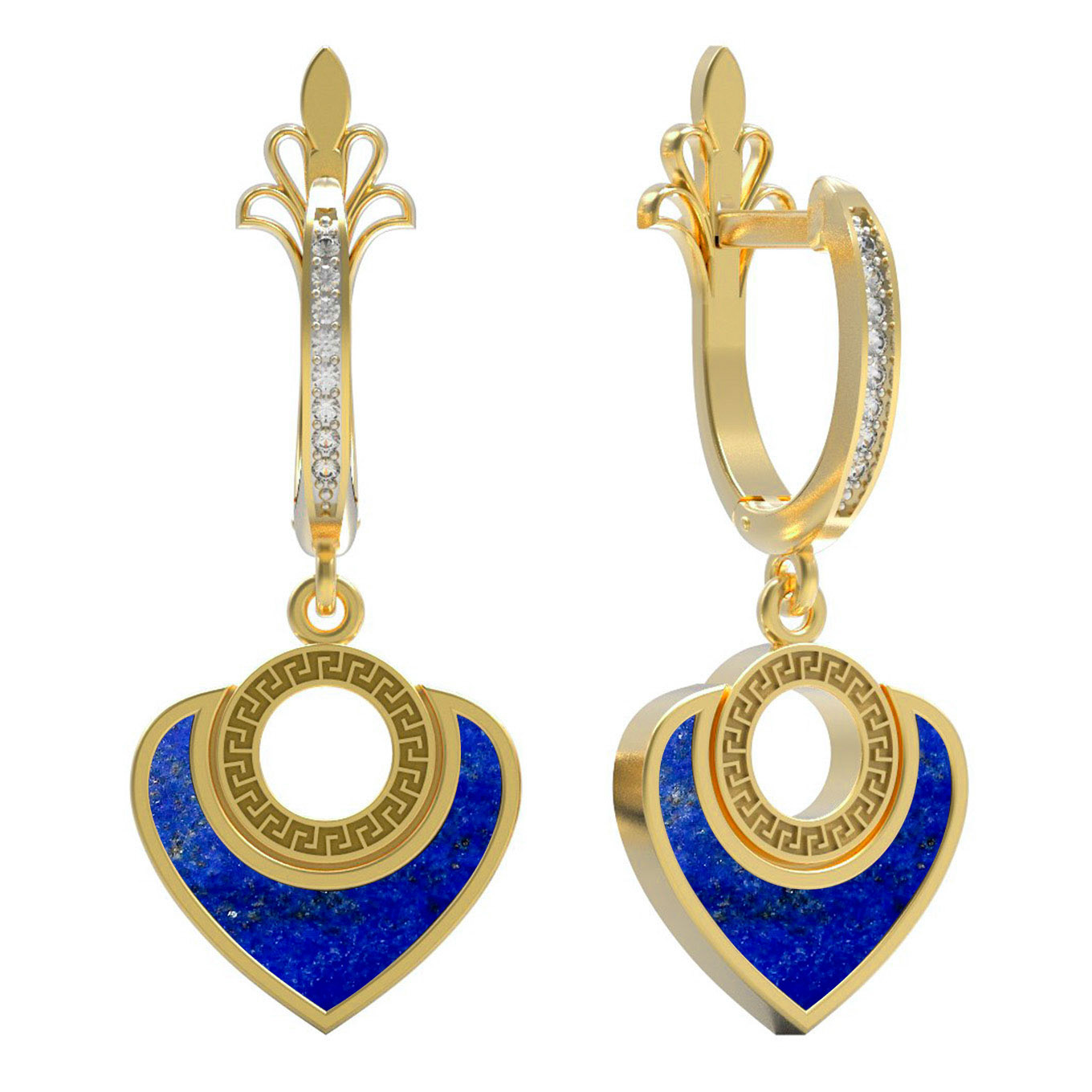 Подвеска из лимонного золота c фианитом, лазуритом и перламутром