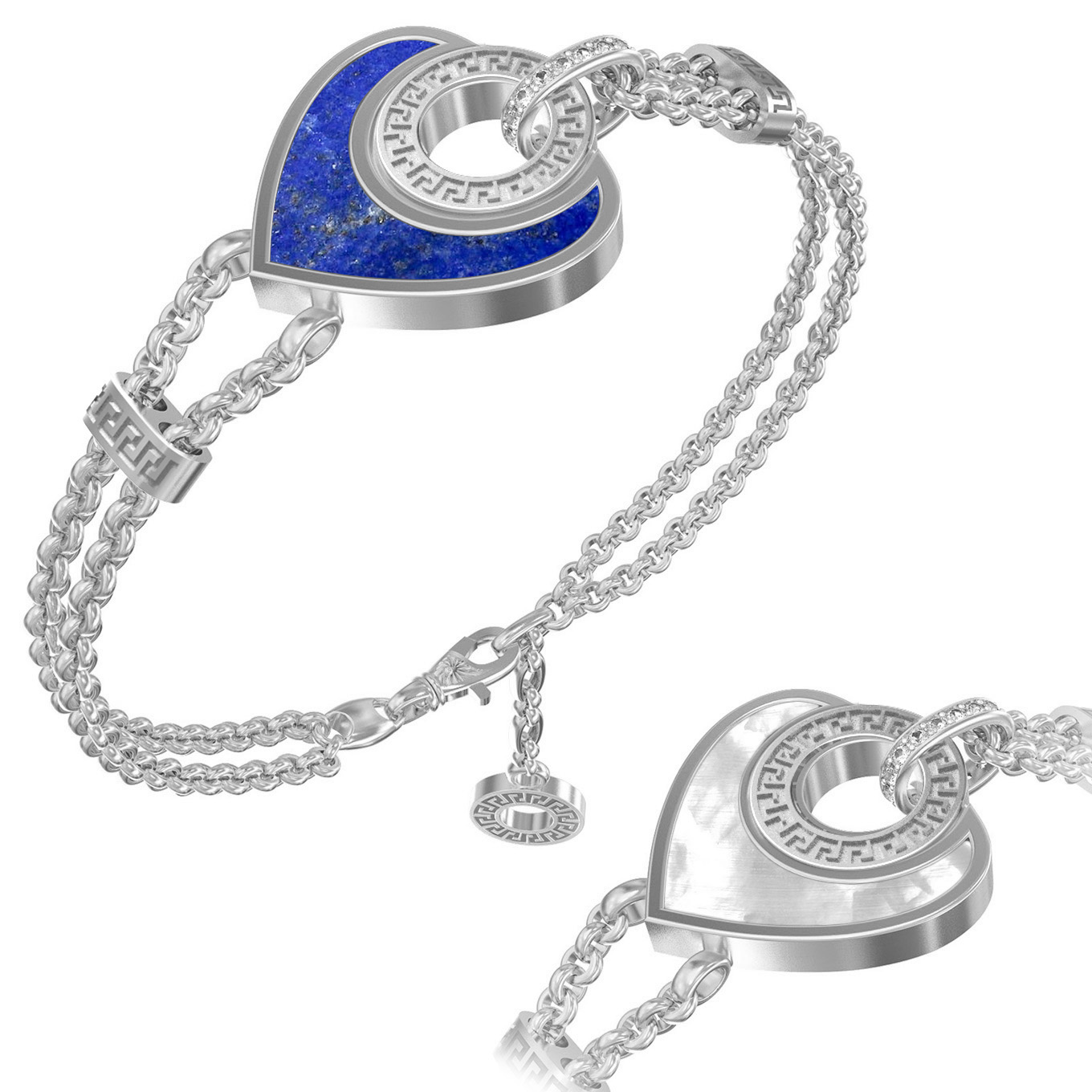 Браслет из белого золота c фианитом, лазуритом и перламутром