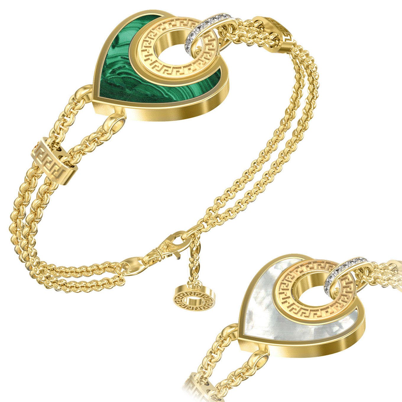 • Браслет из золота c фианитом, малахитом и перламутром