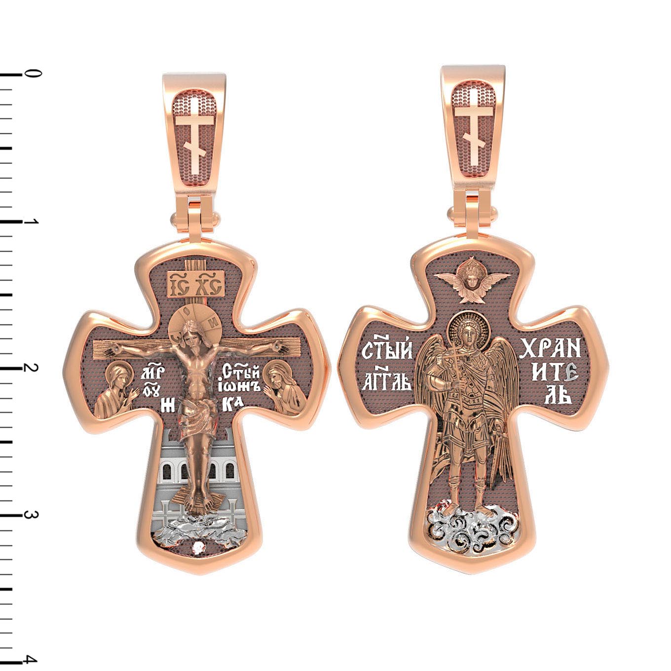 На оборотной стороне креста изображен Святой Ангел-Хранитель держащего в правой руке крест, а в левой — мечь. Ангел-Хранитель — это Ангел приставляемый Богом к человеку при крещении для охраны и помощи в добрых делах. Он невидимо находится при человеке на протяжении всей его жизни, если человек сохраняет в себе любовь к Богу и истинную веру перед Ним. Ангел-Xранитель делают для нас все, что служит к истинному нашему благу и спасению. Невидимо пребывая при нас постоянно, он, руководствуя нас ко спасению, не только по нашему желанию таинственно наставляет нас на все доброе и полезное, не только возносит наши молитвы к Богу, но еще и сам от себя охраняют и защищают нас от врагов видимых и невидимых и ходатайствует за нас пред Богом. Одного лишь каждому из нас он желает — спасения души; к этому он направляет все свои заботы. Над образом помещен Серафим.