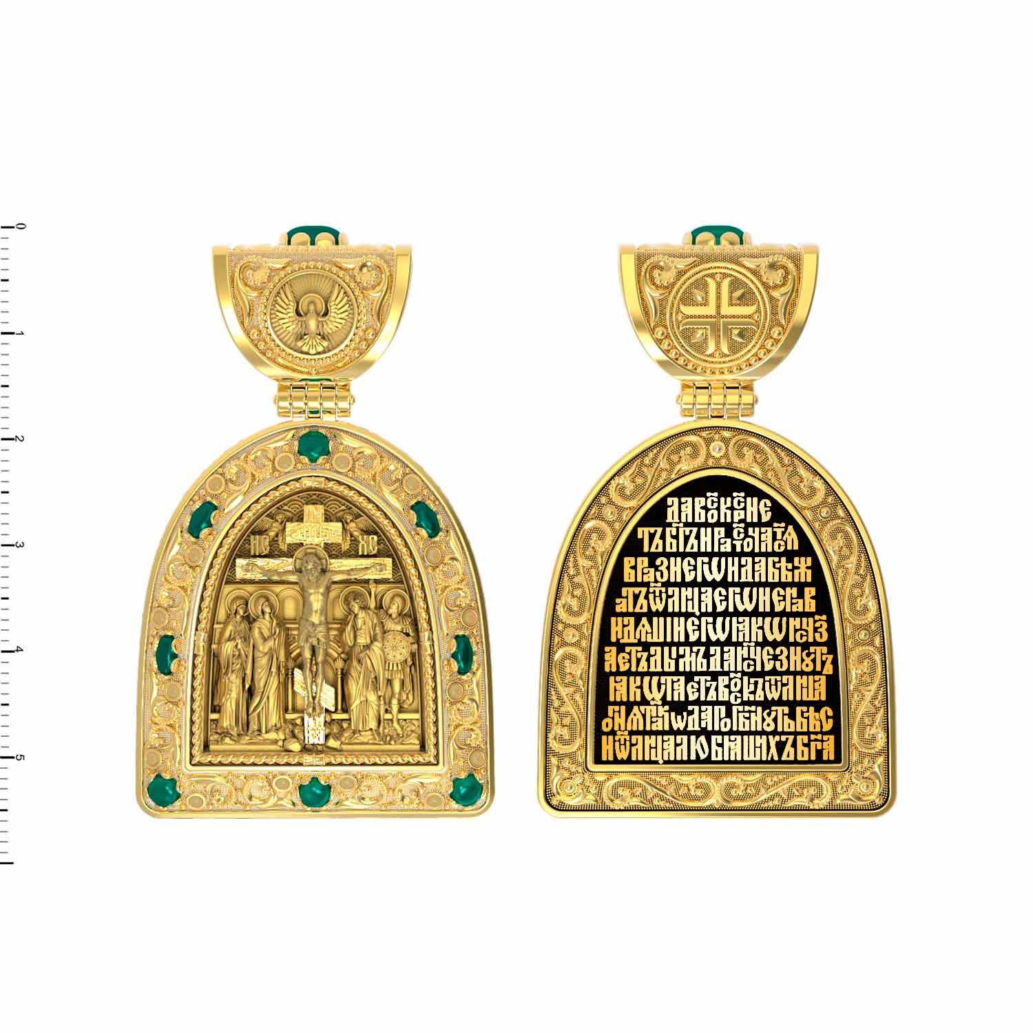 Образок из лимонного золота c эмалью и хризопразом