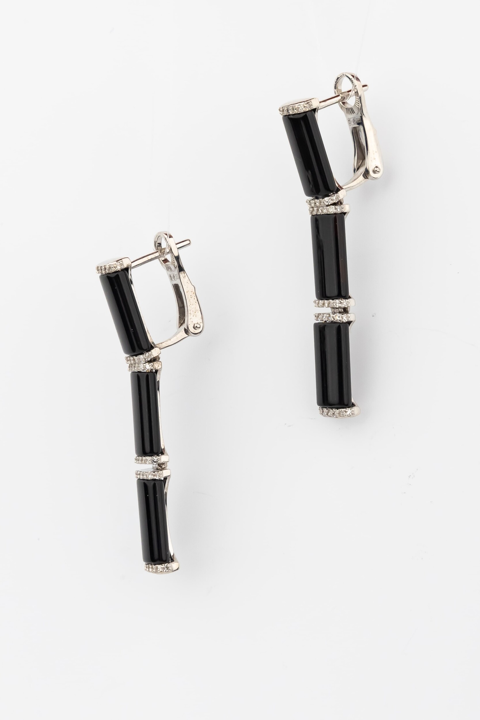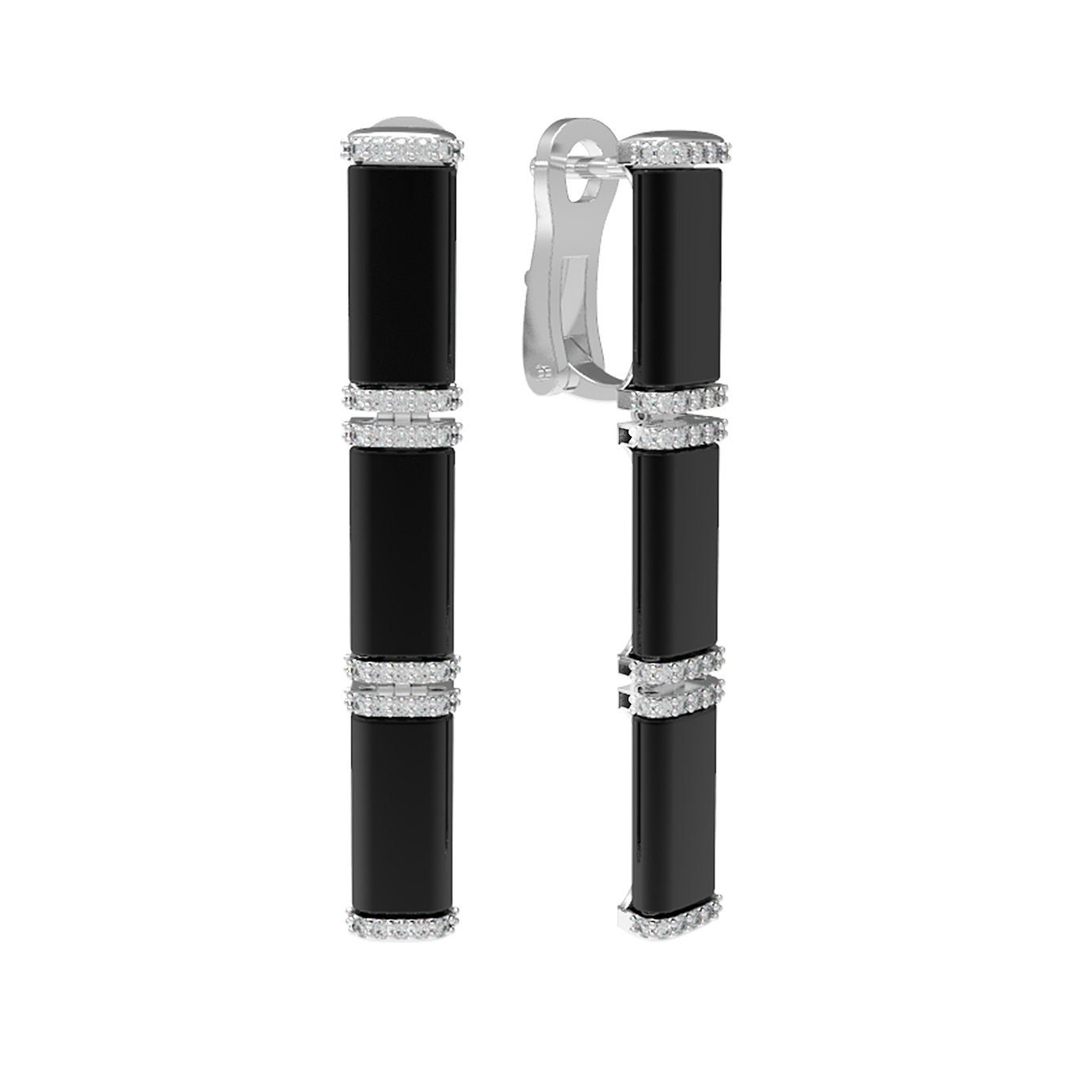 Серьги из белого золота c бриллиантами и ониксом