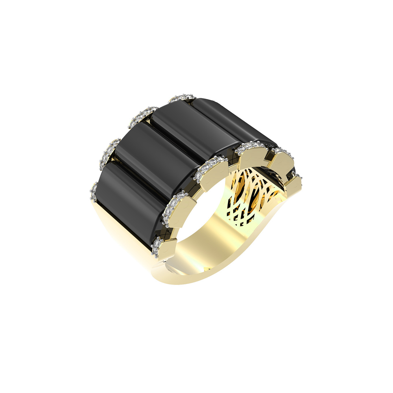 Кольцо из лимонного золота c бриллиантами и ониксом