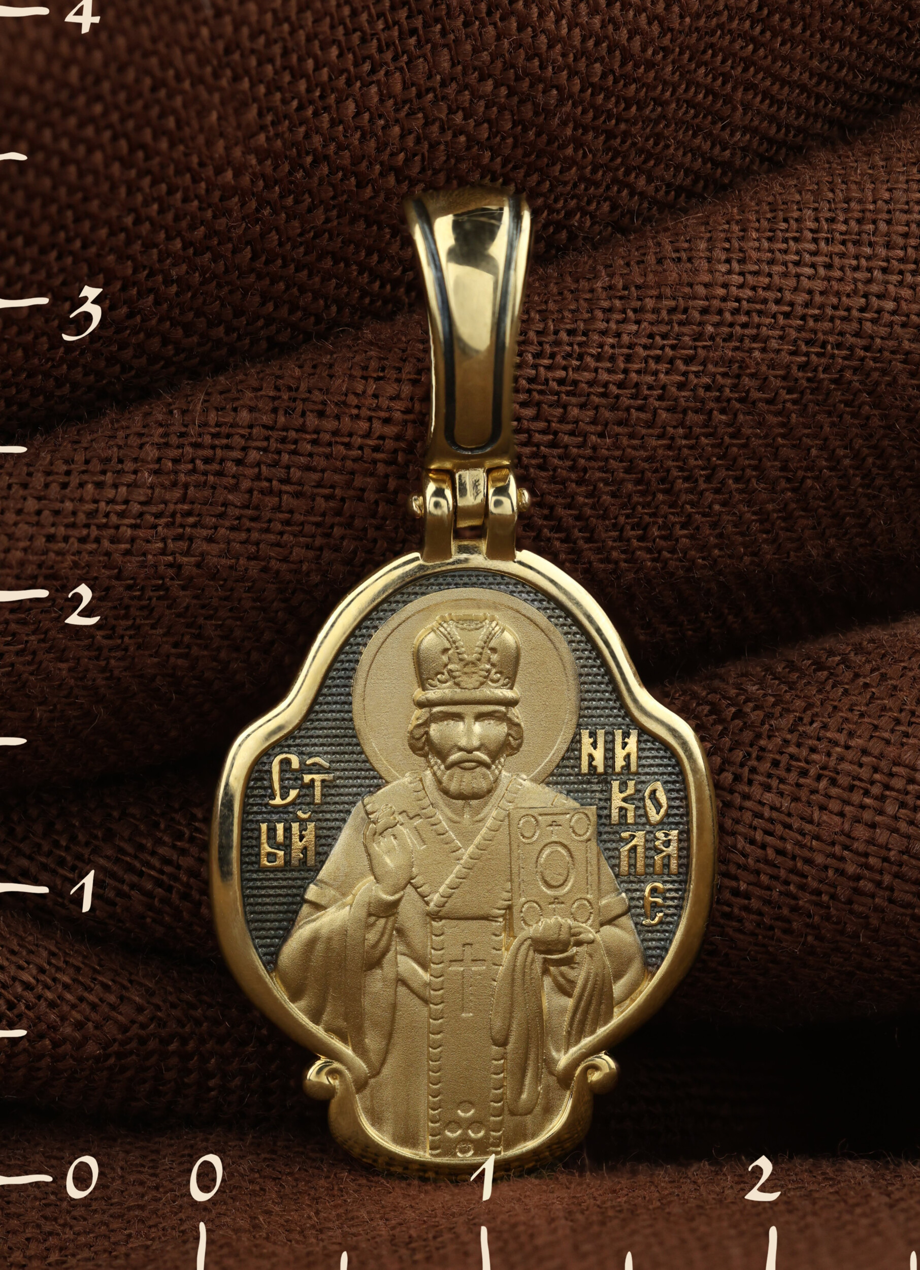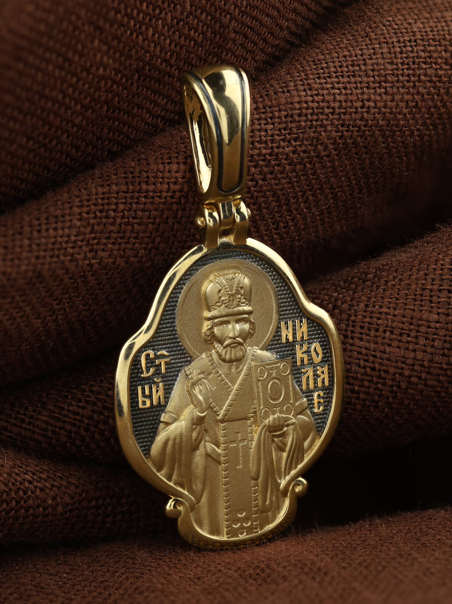 Лицевую сторону возглавляет икона святителя Николая Чудотворца. Святитель Николай родился во второй половине III века в Малой Азии в Ликийском городе Патары. С рождения Божий Угодник проявлял необыкновенные дарования. Сохранилось Предание, что во время крещения он, никем не поддерживаемый, простоял в купели три часа. С детства святитель избегал пустых развлечений, любил молитву, прекрасно учился и проводил свободное время за чтением Священного Писания. По достижении зрелого возраста жители Патар выбрали его своим пресвитером. Несколько лет спустя св. Николай стал епископом в городе Миры, столице Ликии.