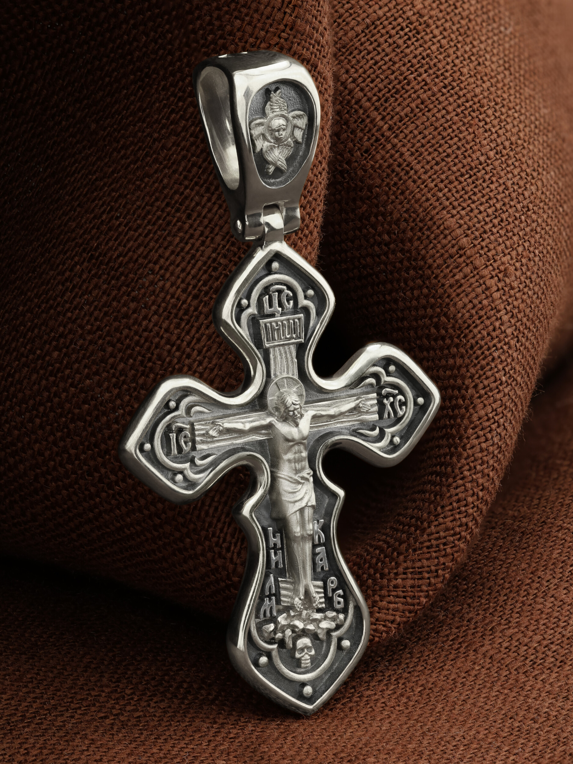 Крест с Распятием на лицевой стороне и молитвой на обороте выполнен в традициях русских нательных крестов. Его художественный образ отражает главное предназначение нательного креста — быть личным священным знаком Таинства Крещения. В Крещении человек получает второе, духовное рождение и усыновляется Богу, получая надежду на спасение и жизнь вечную. Ведь «если кто не родится от воды и Духа, не может войти в Царствие Божие».