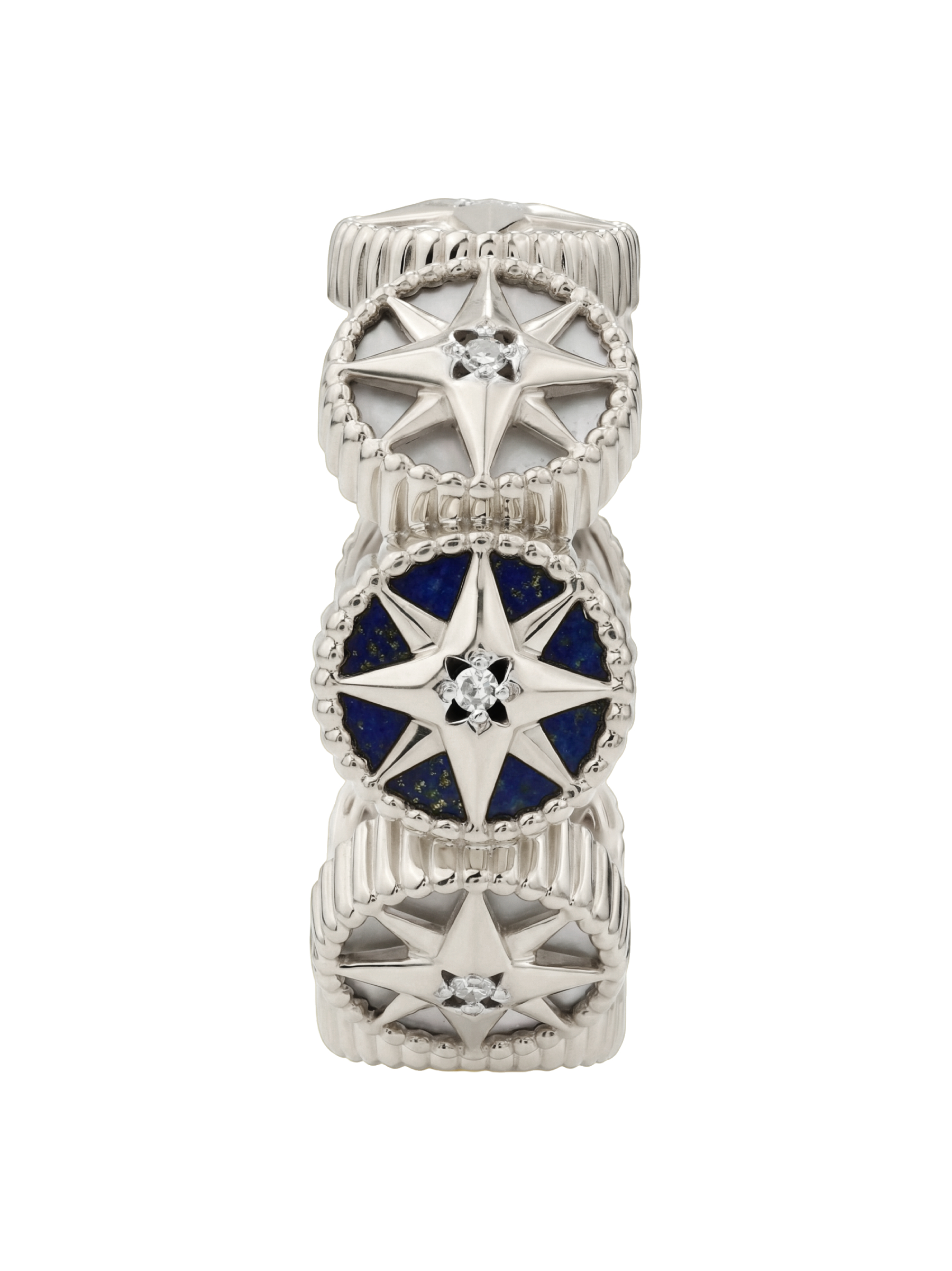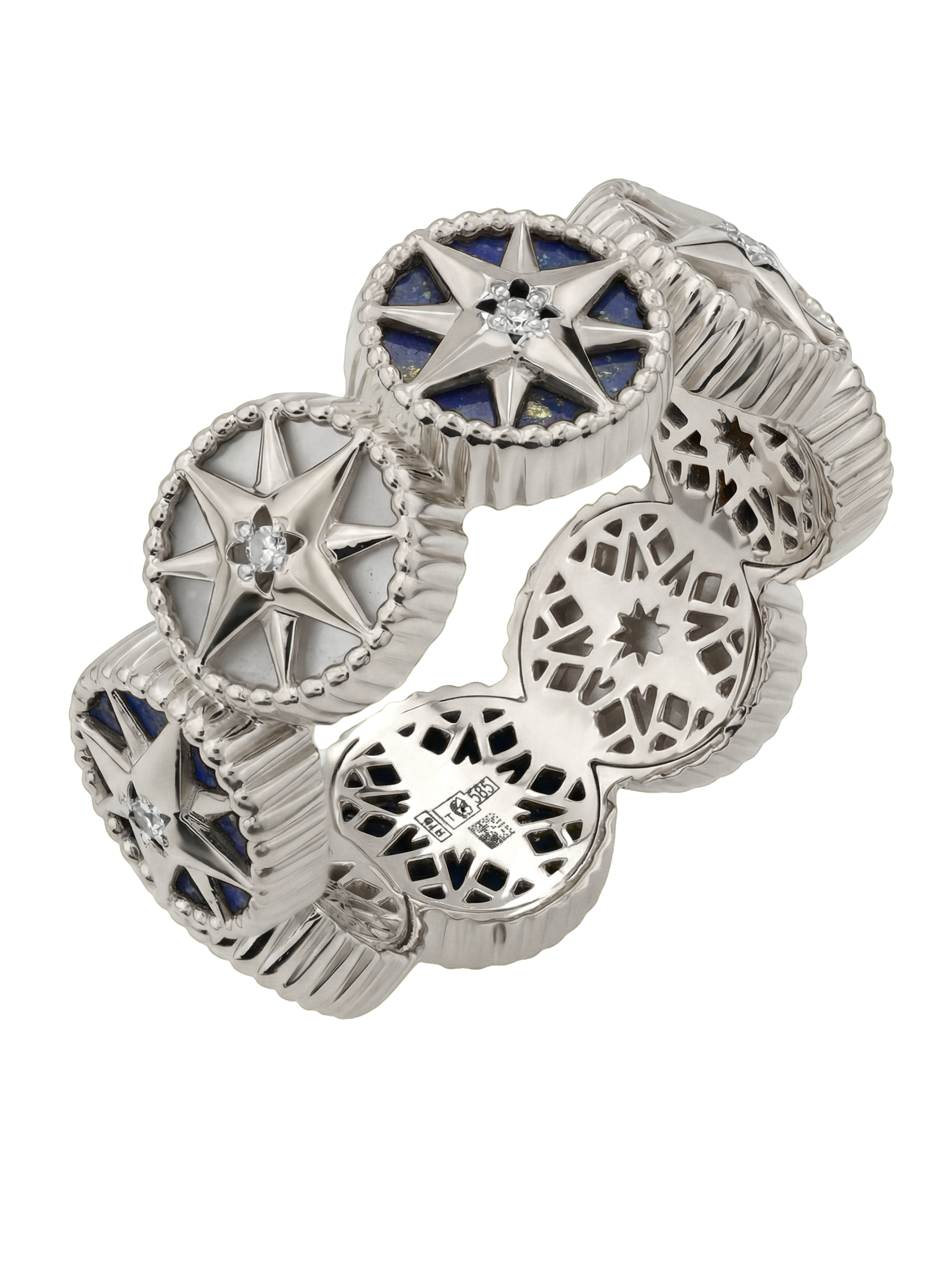 Кольцо из белого золота c бриллиантами, лазуритом и перламутром