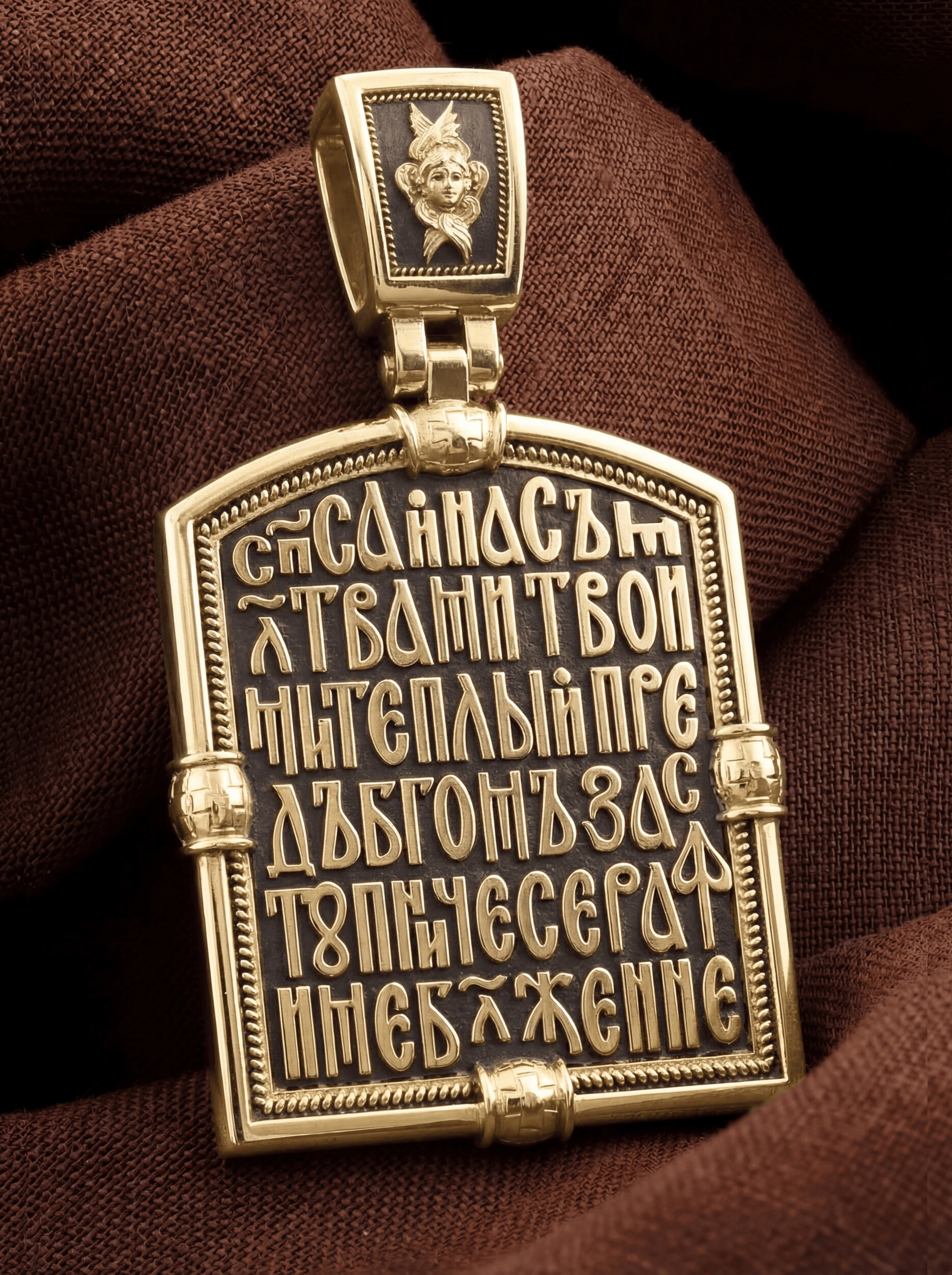 На лицевой стороне образка изображен Преподобный Серафим Саровский, самый великий русский святой XIX века. Преподобный Серафим почитается за особую милостивую любовь к людям и неоскудевающую помощь во всяких делах.