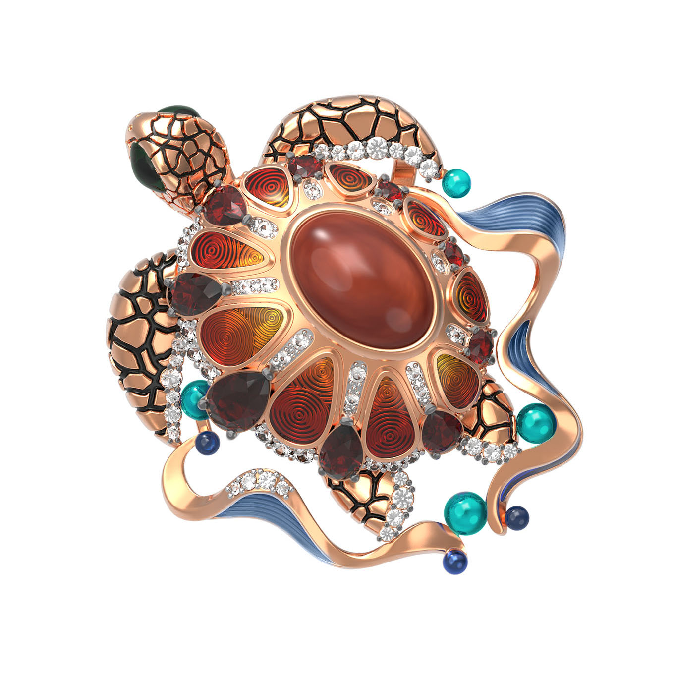 Подвеска из золота c эмаль, фианитом, гранатом и янтарём