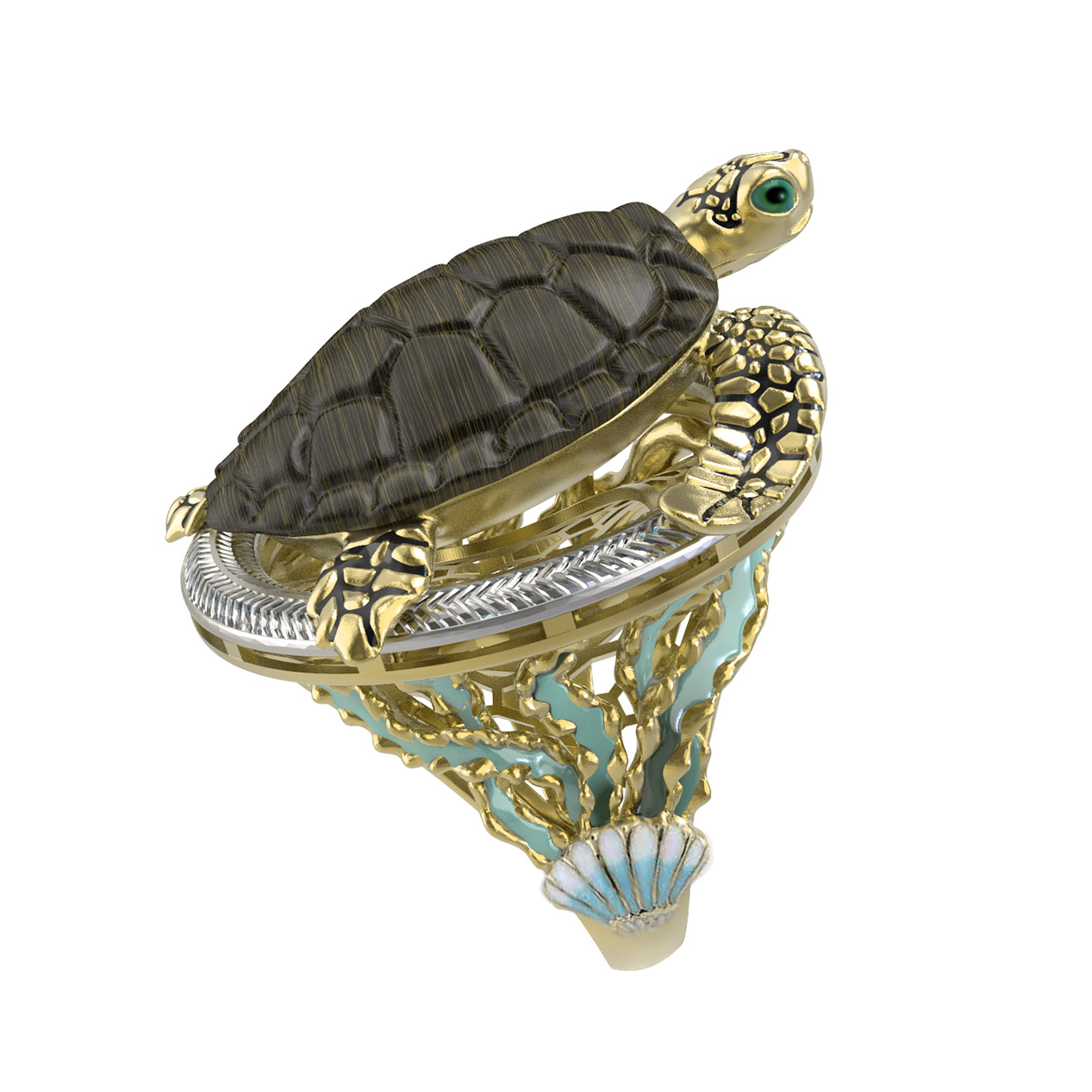 Кольцо из лимонного золота c эмаль и железным деревом