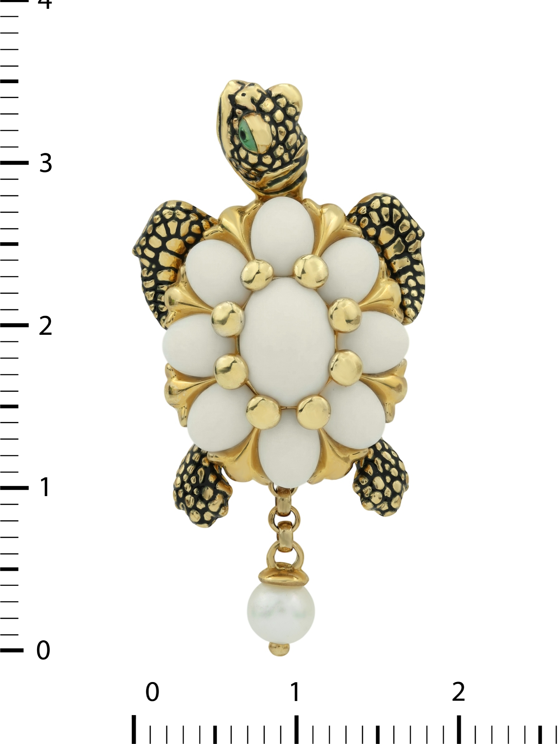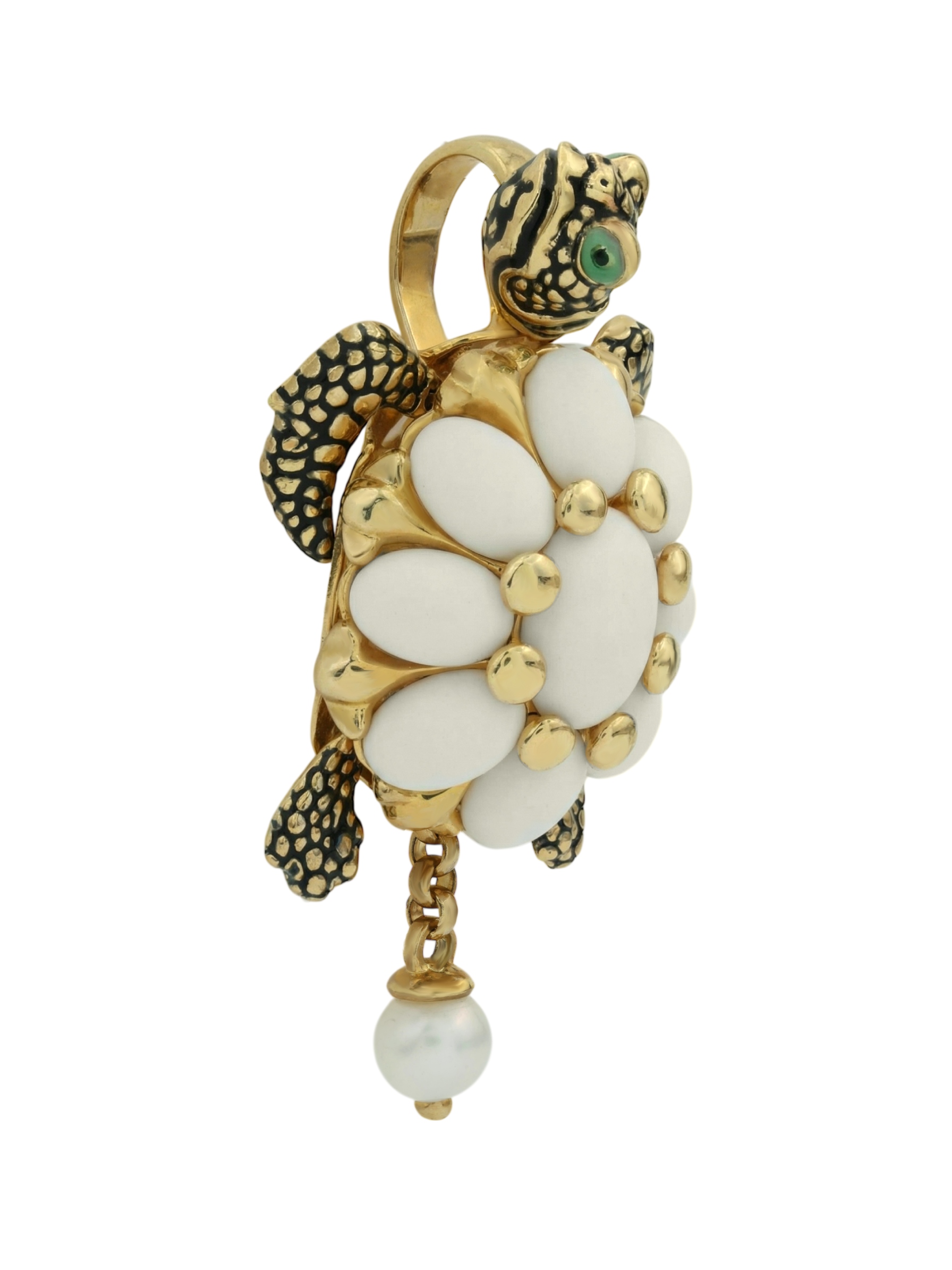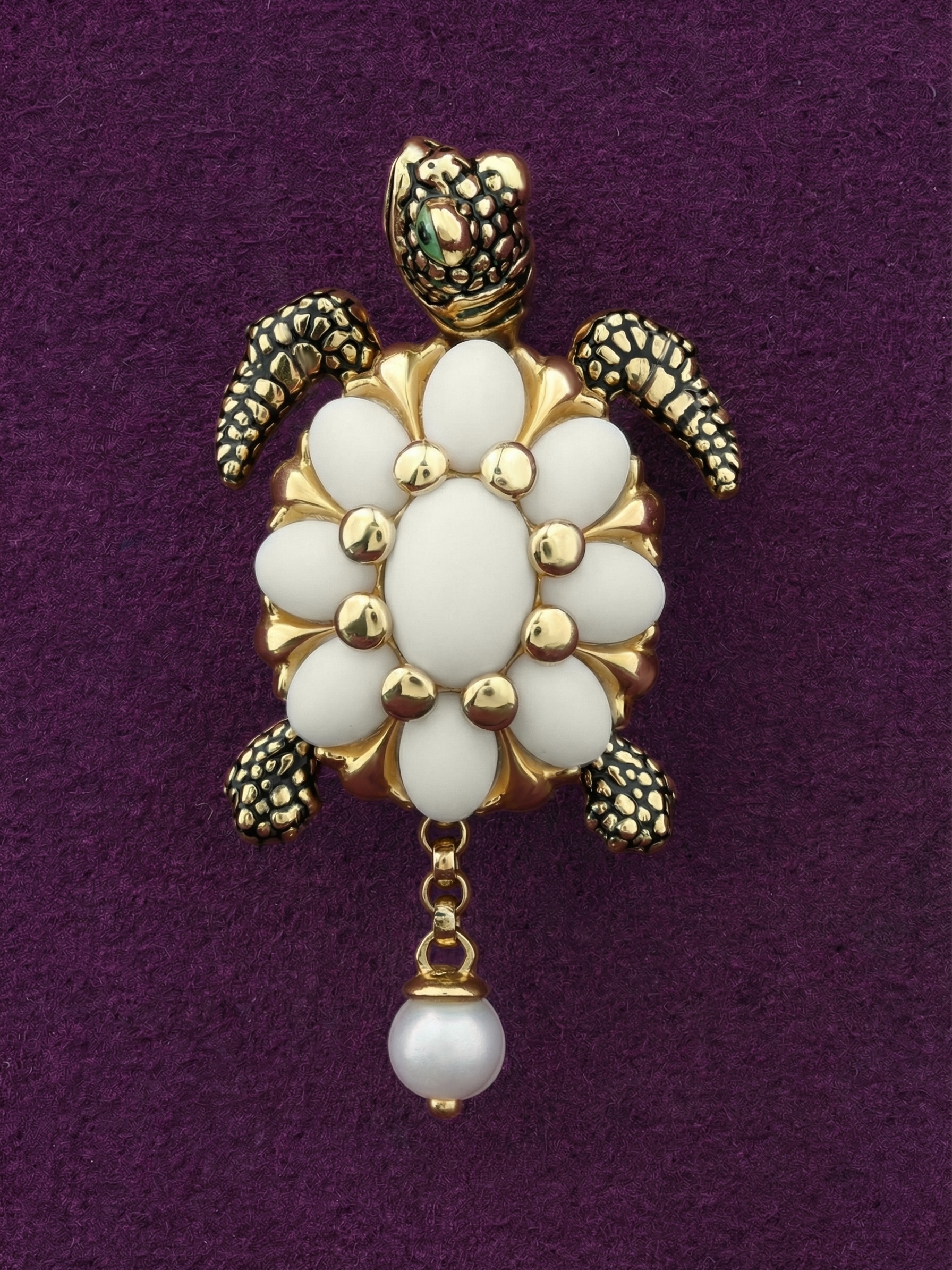 Подвеска из лимонного золота c эмаль , жемчугом и бивнем мамонта