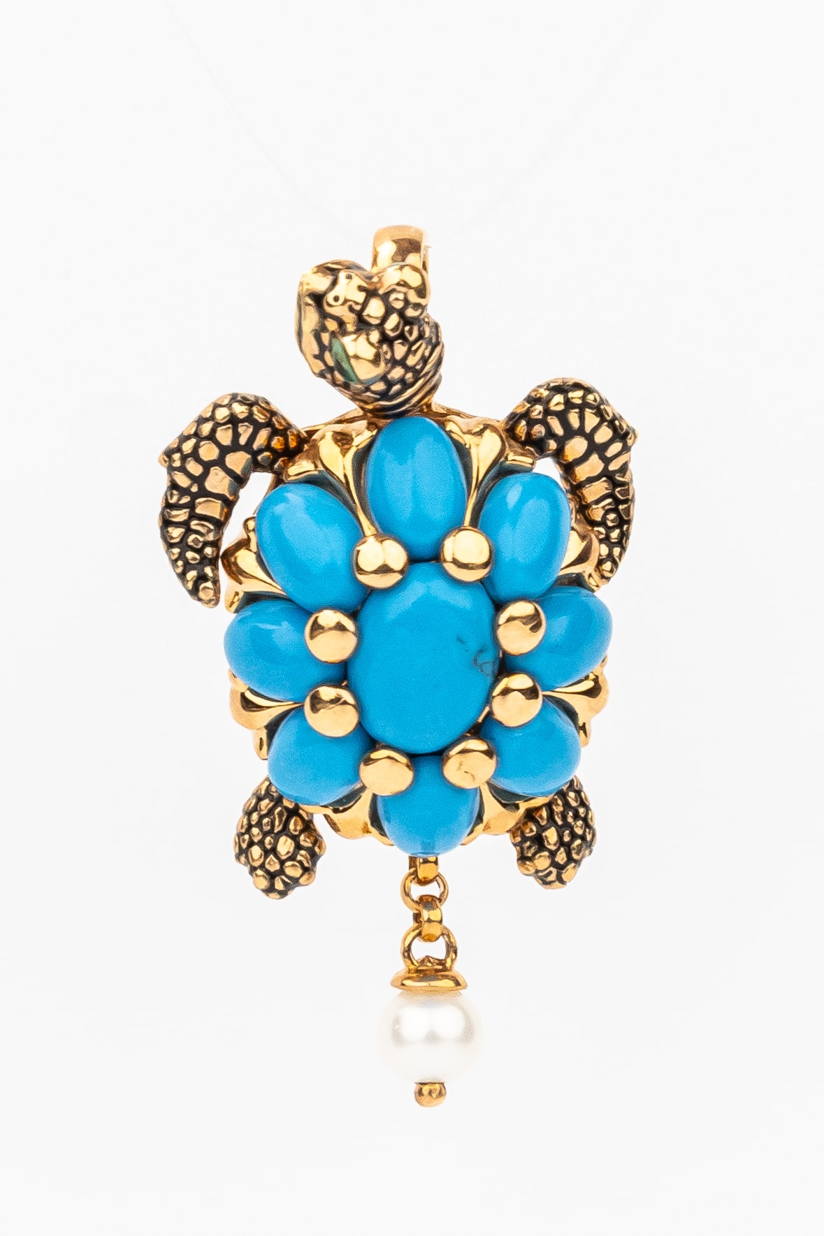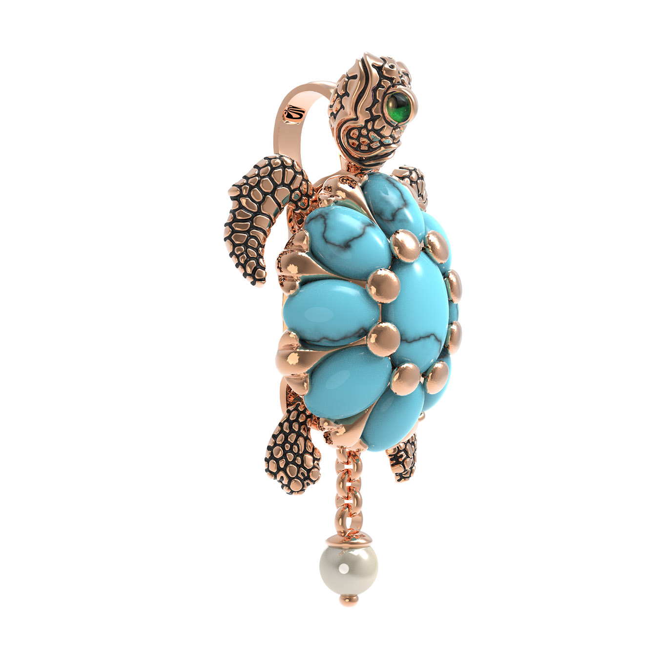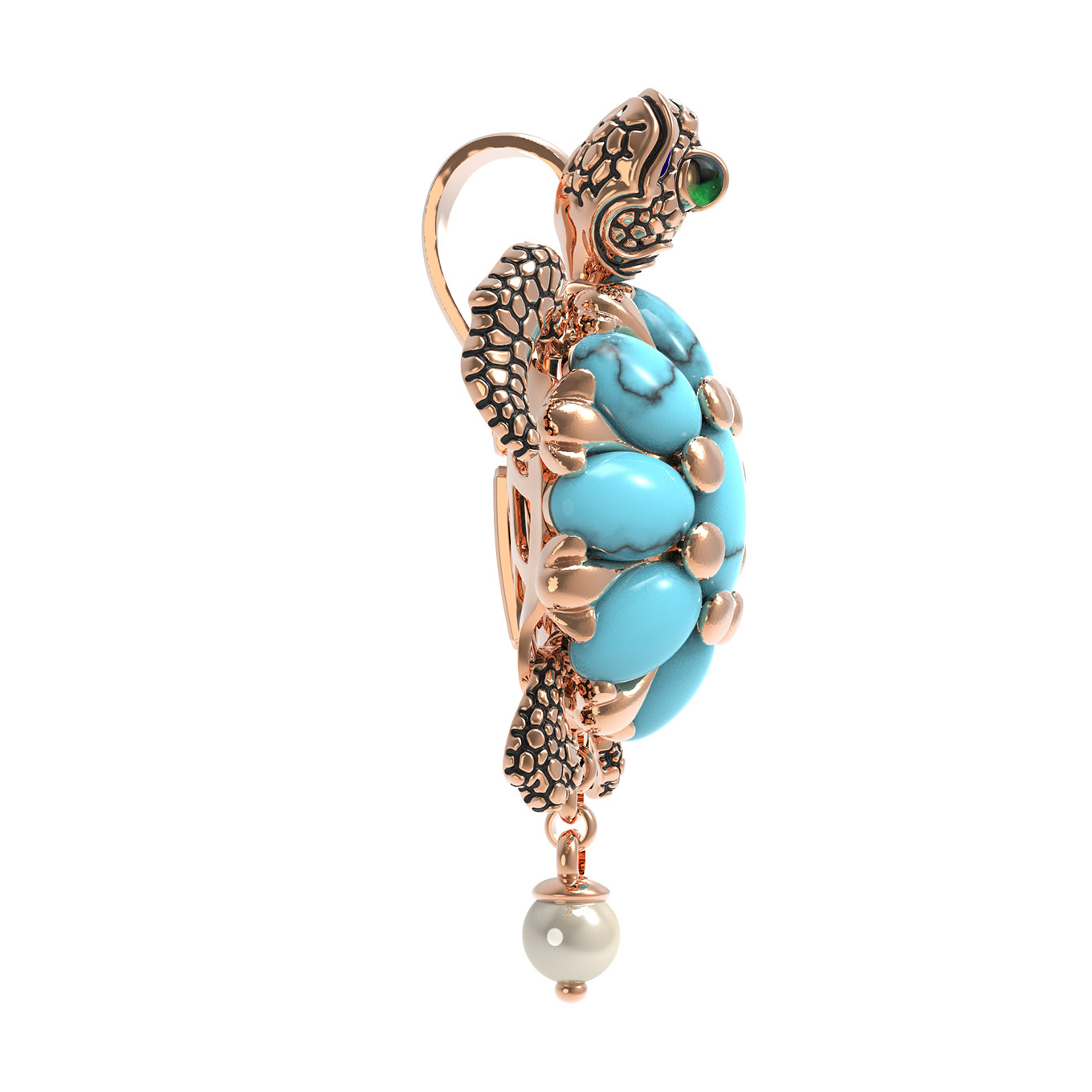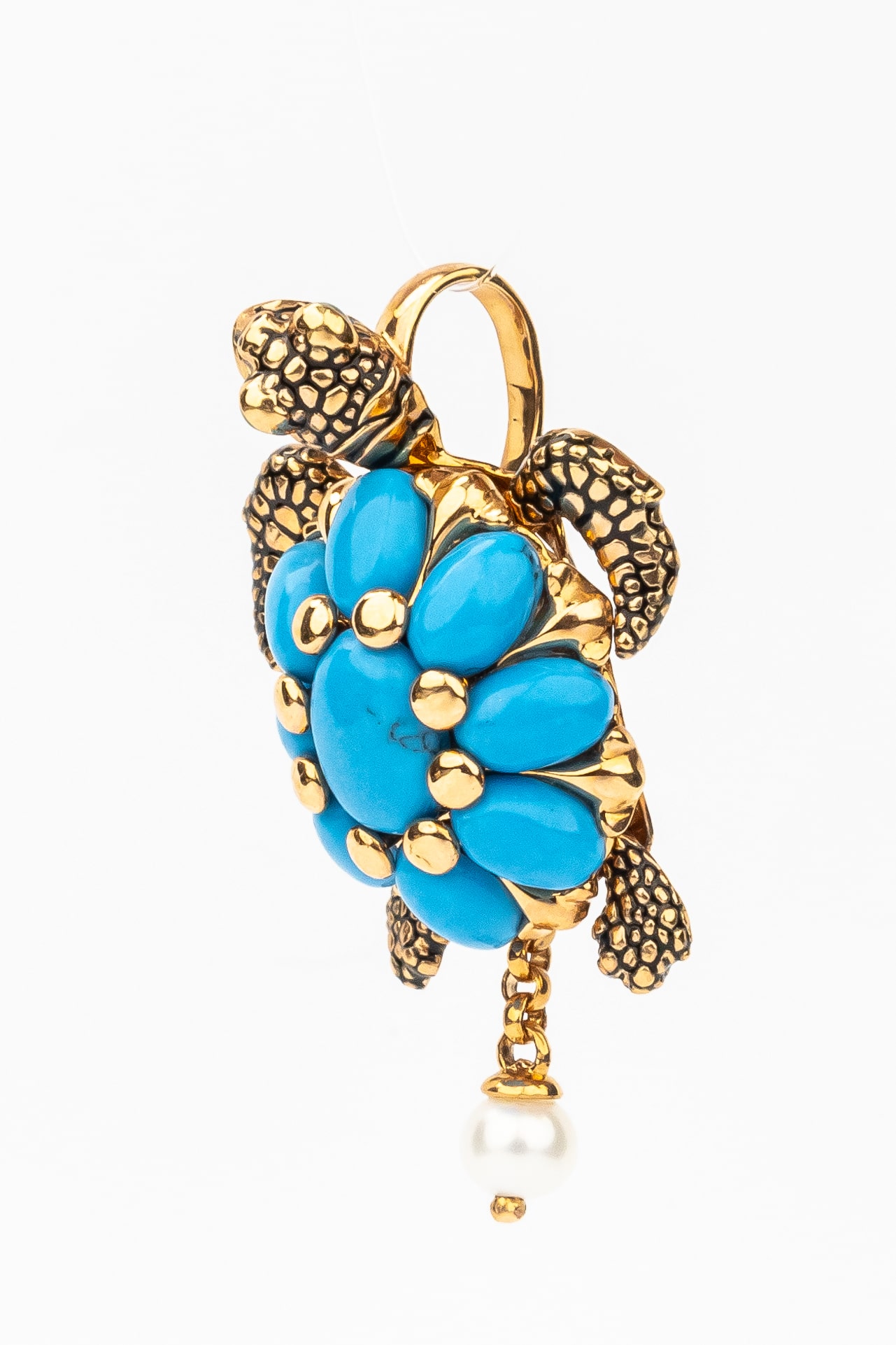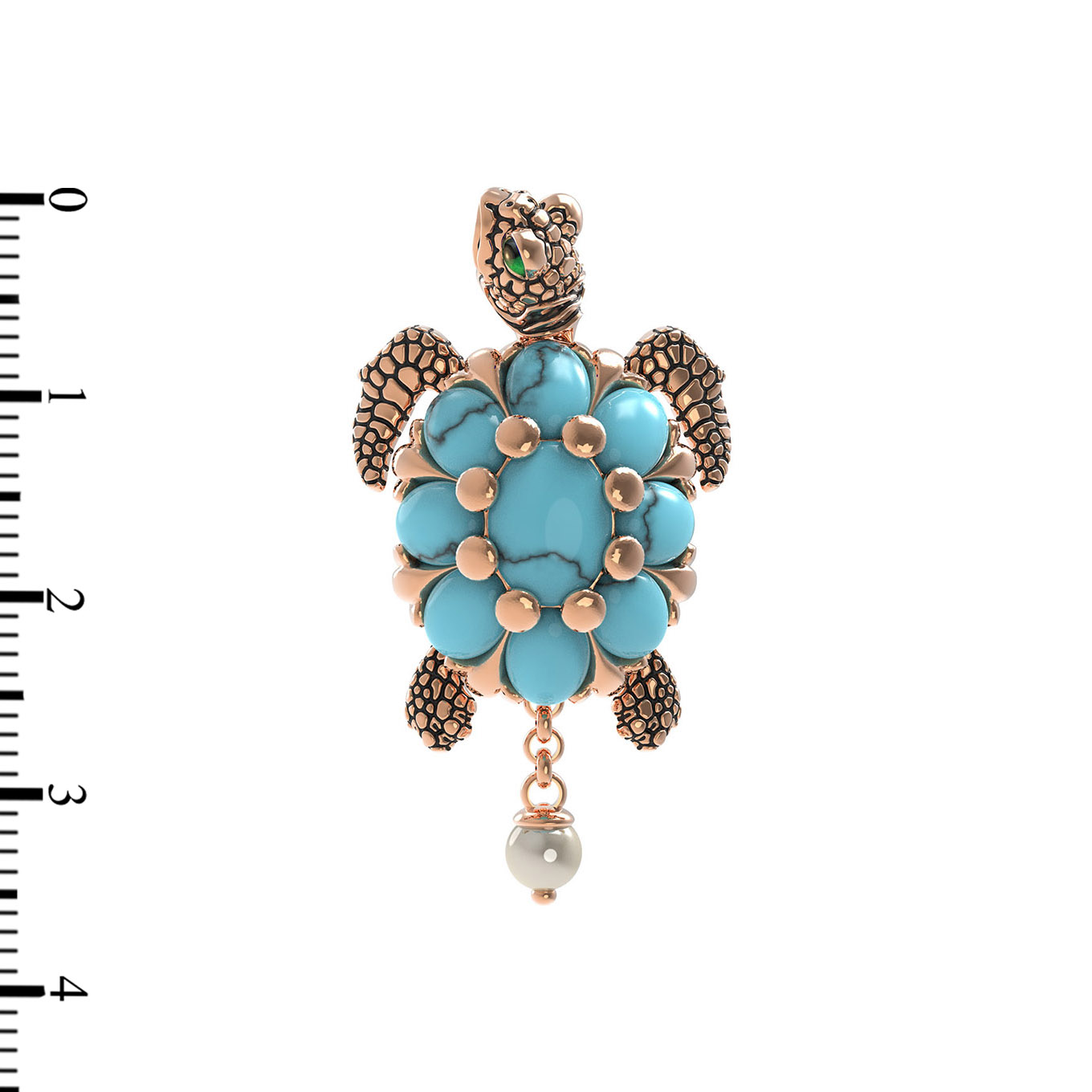 Подвеска из золота c эмаль, жемчугом и бирюзой