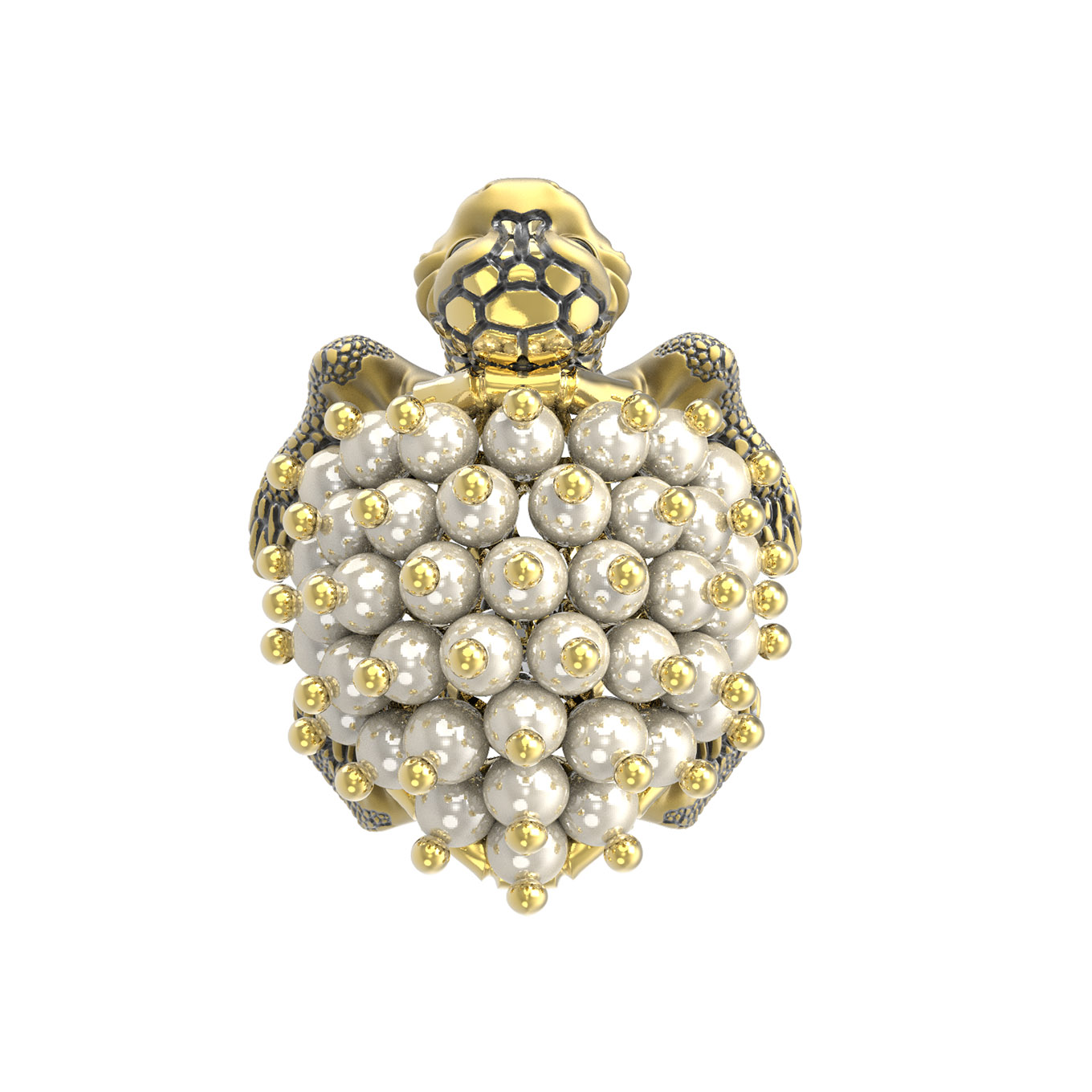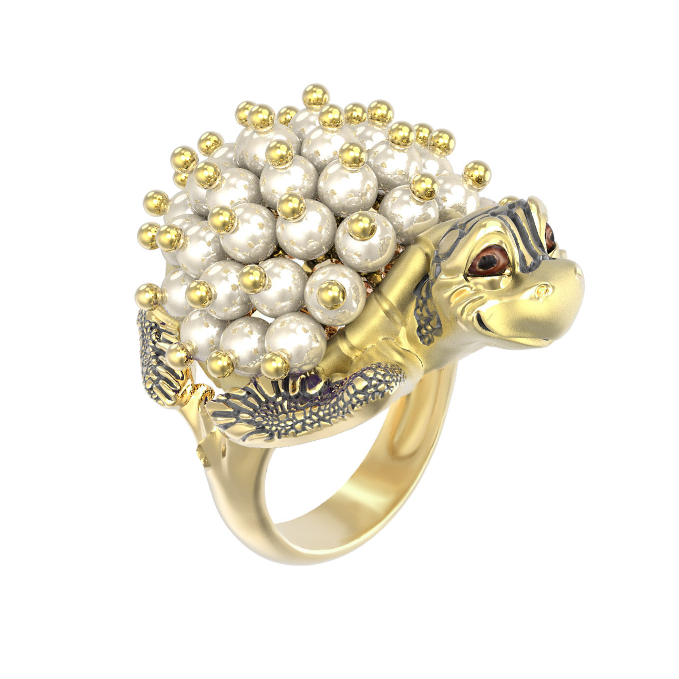 Кольцо из лимонного золота c эмалью и жемчугом