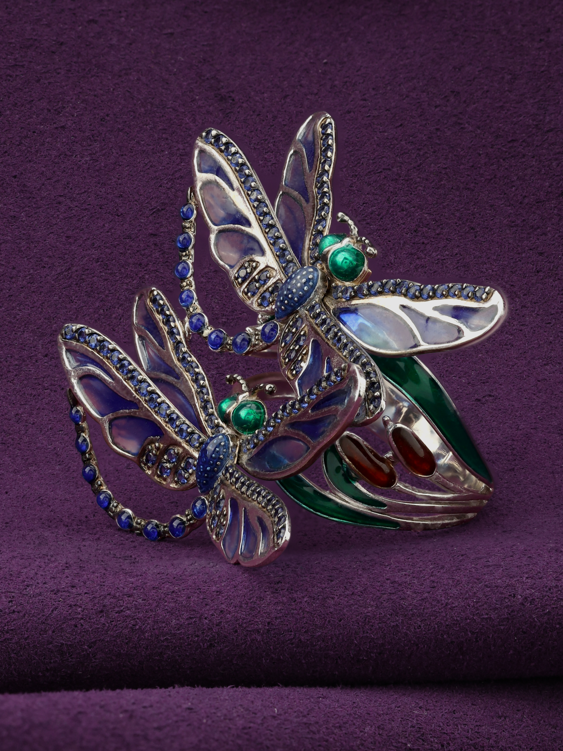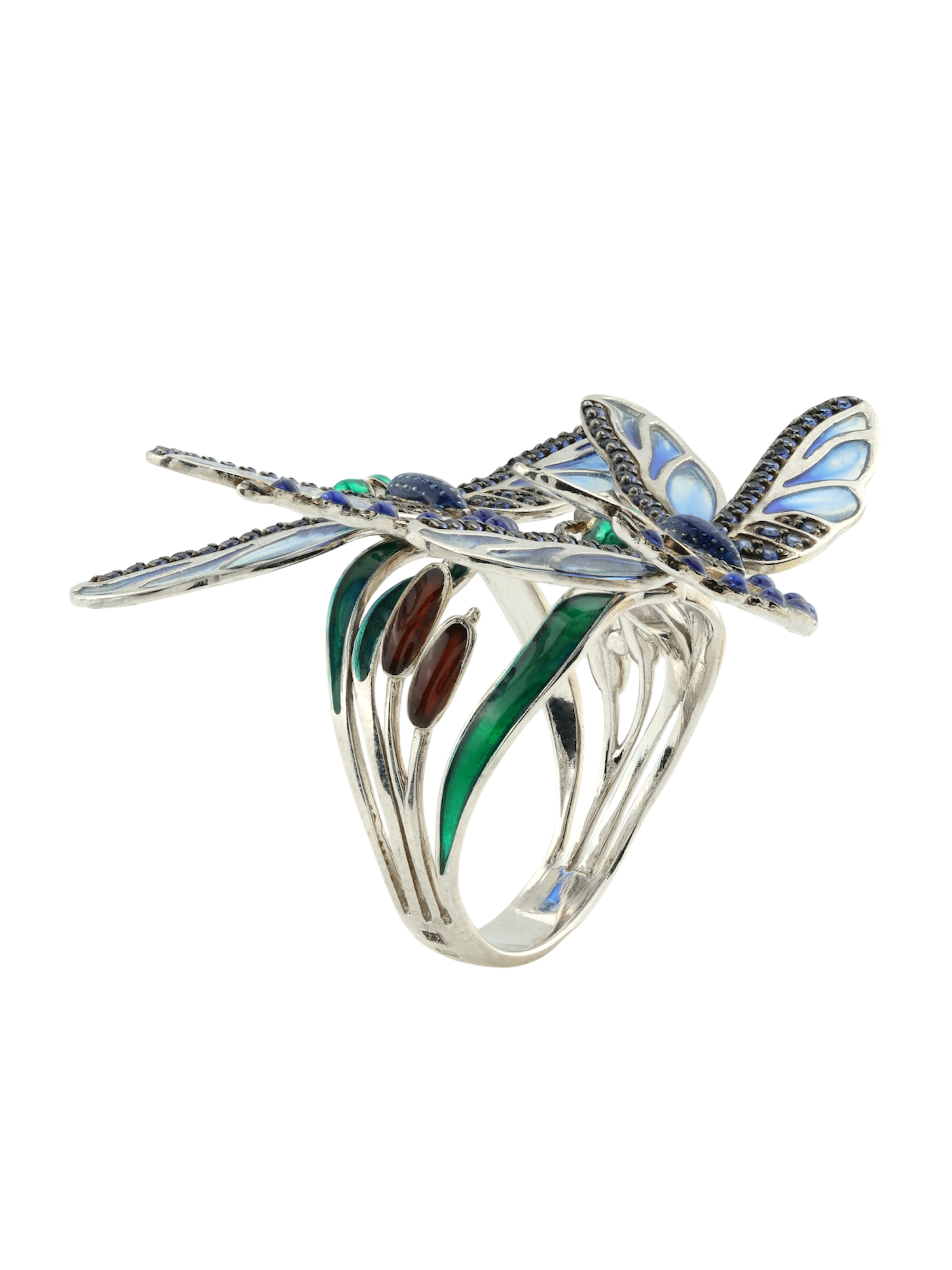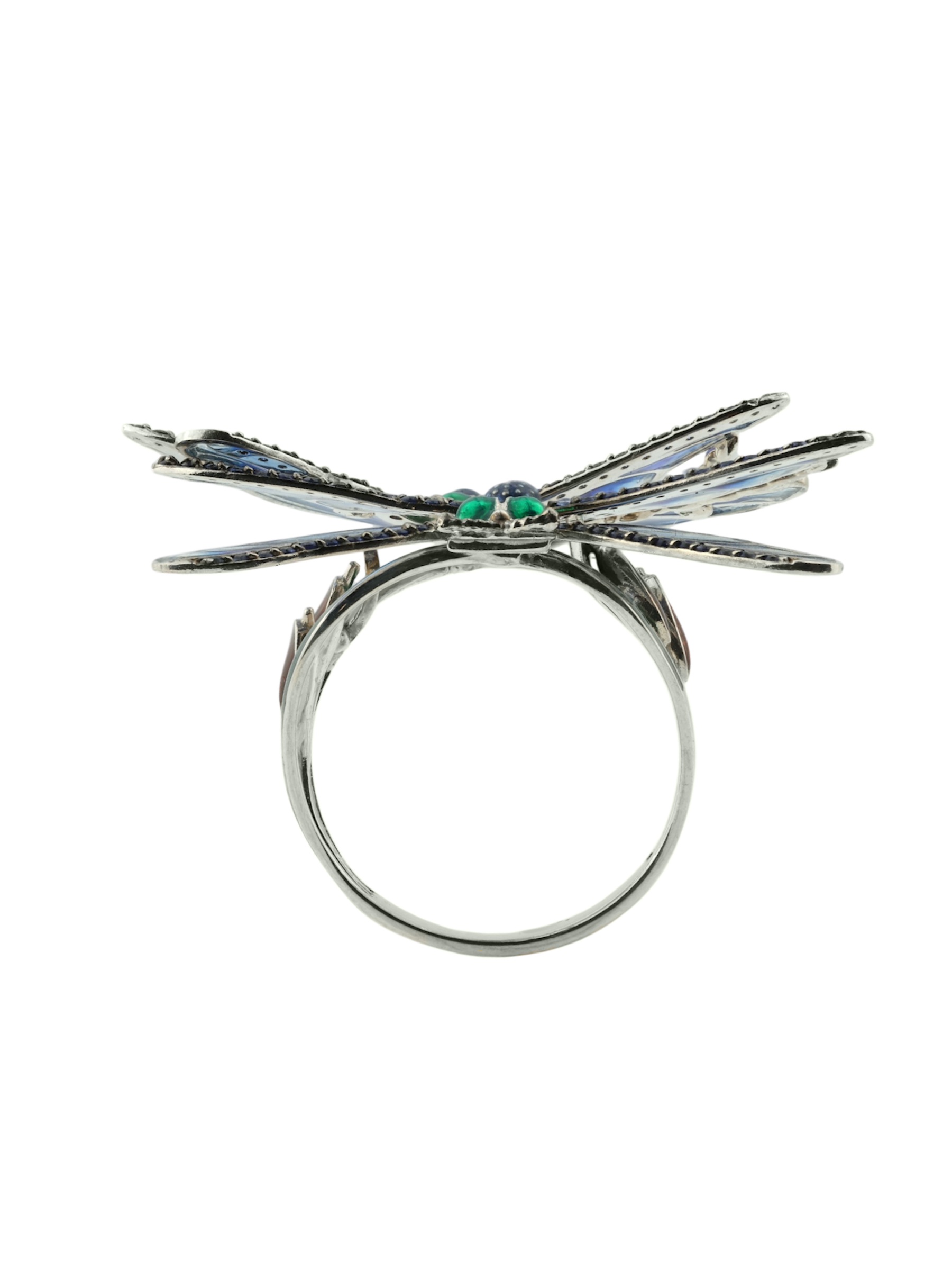 Кольцо из белого золота c сапфиром и эмалью