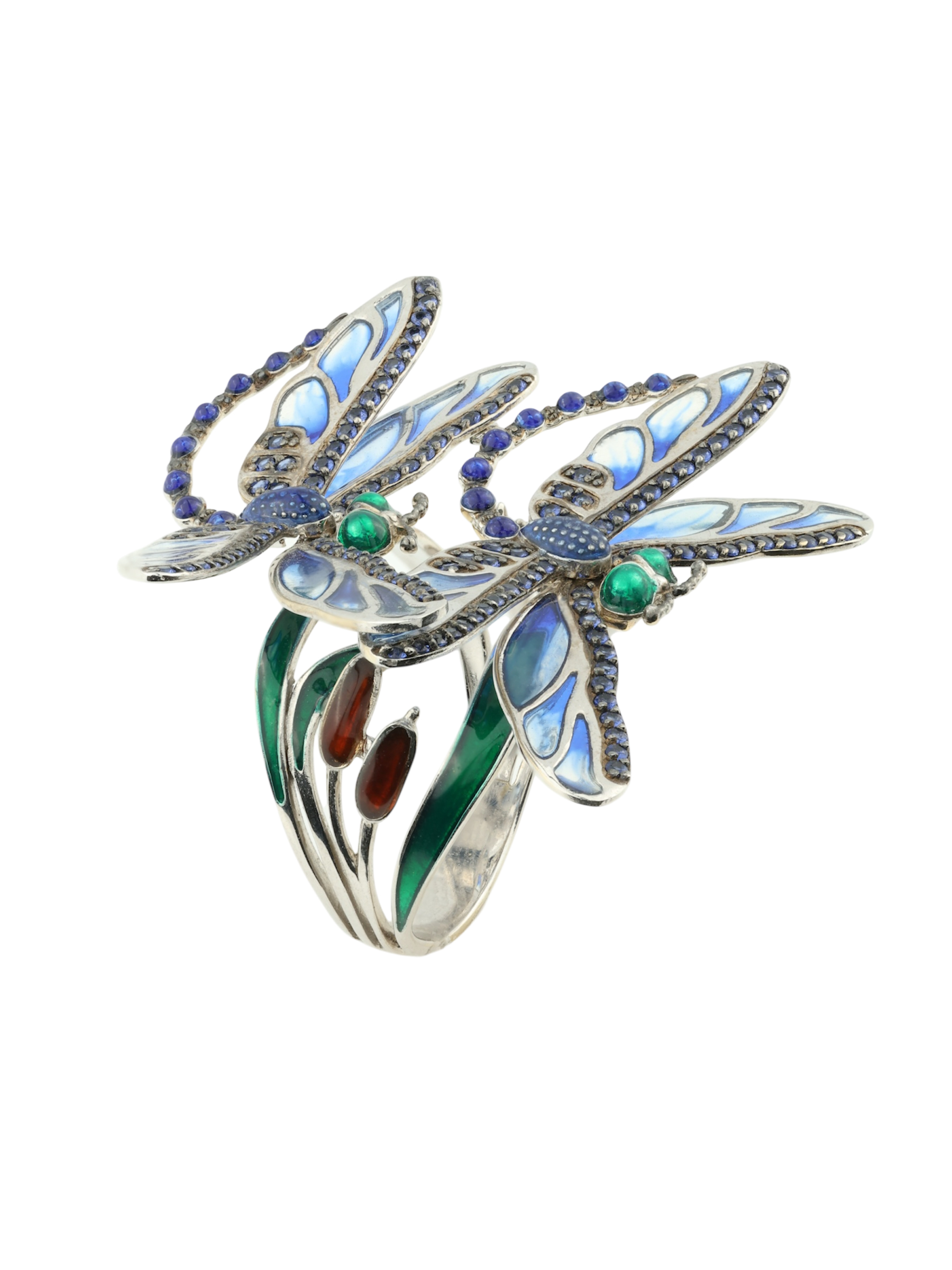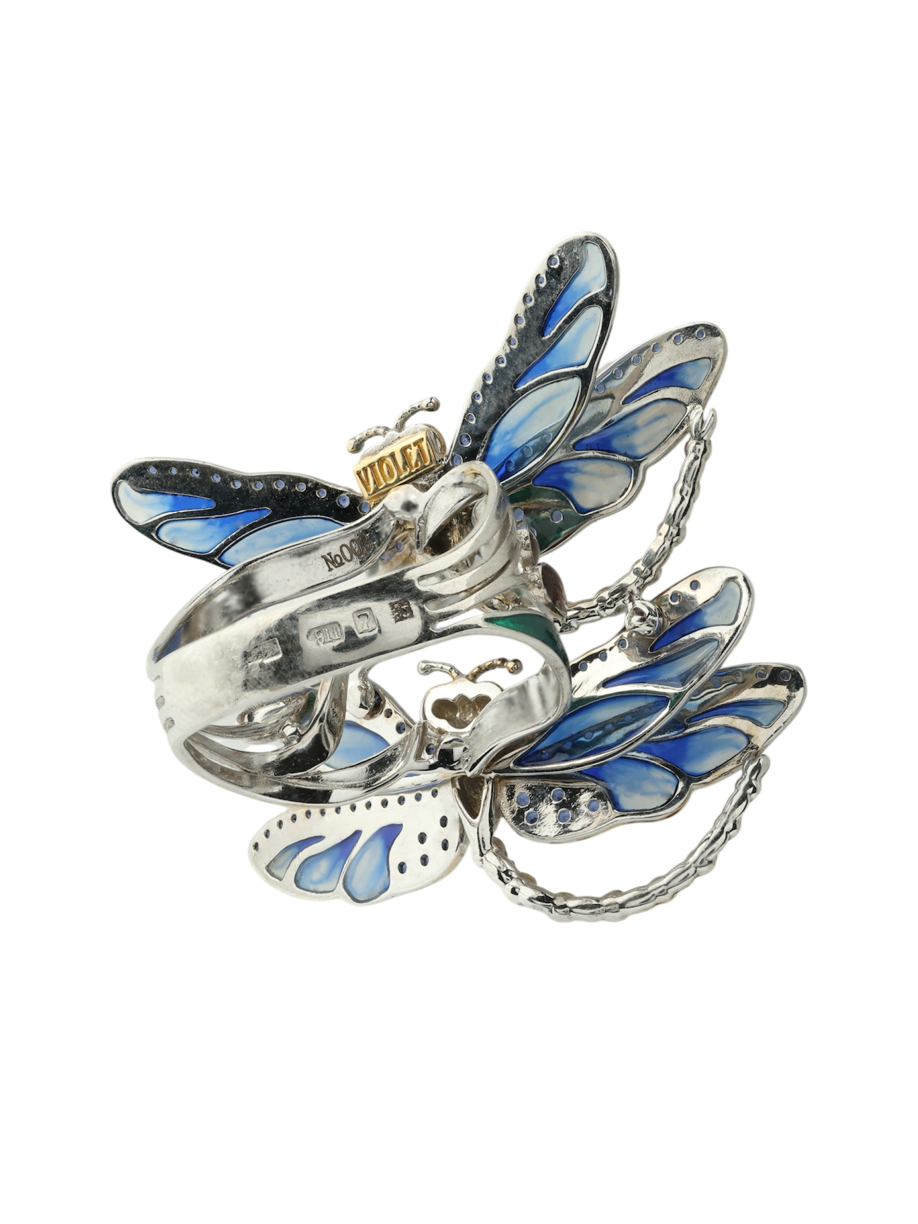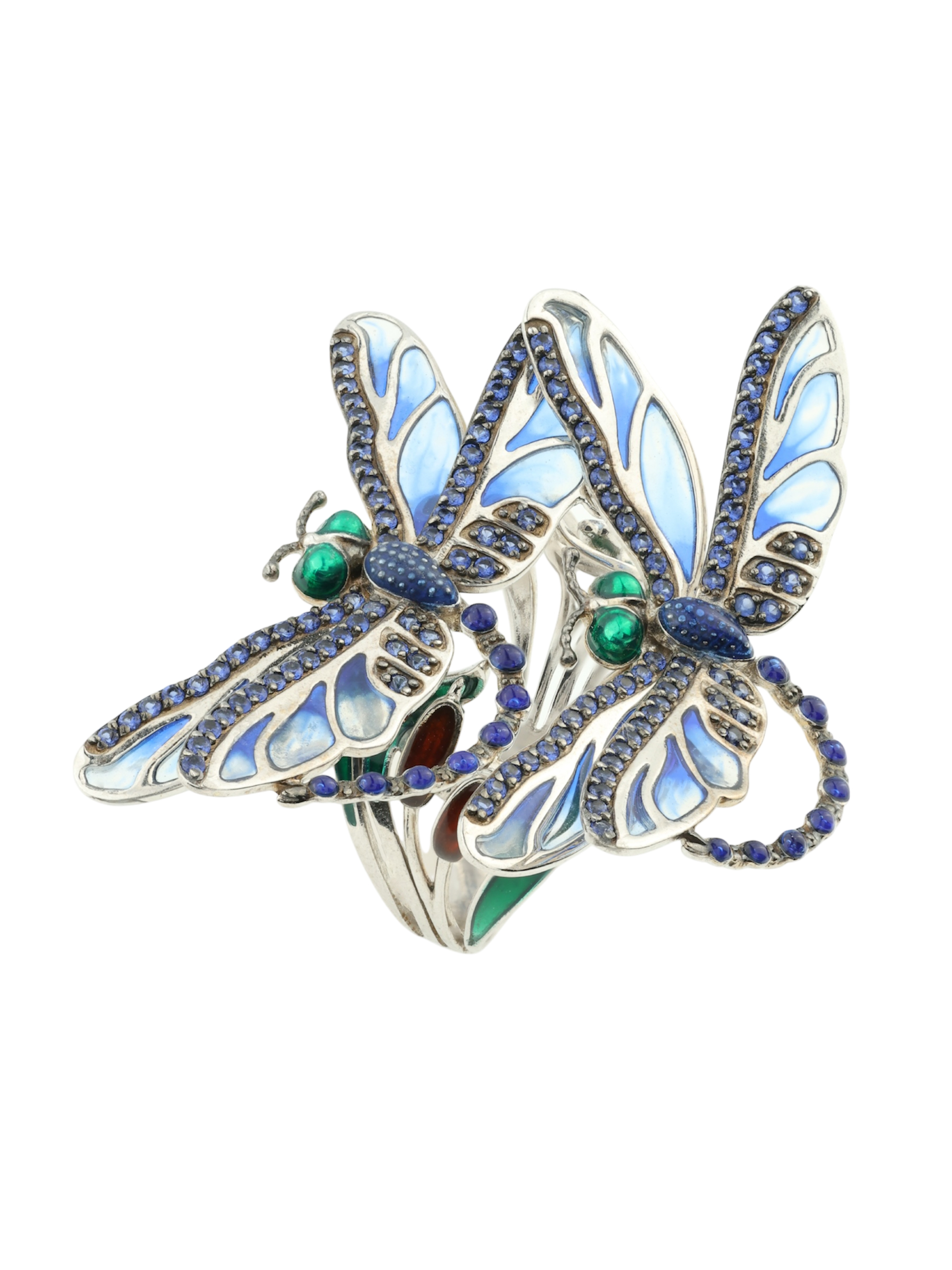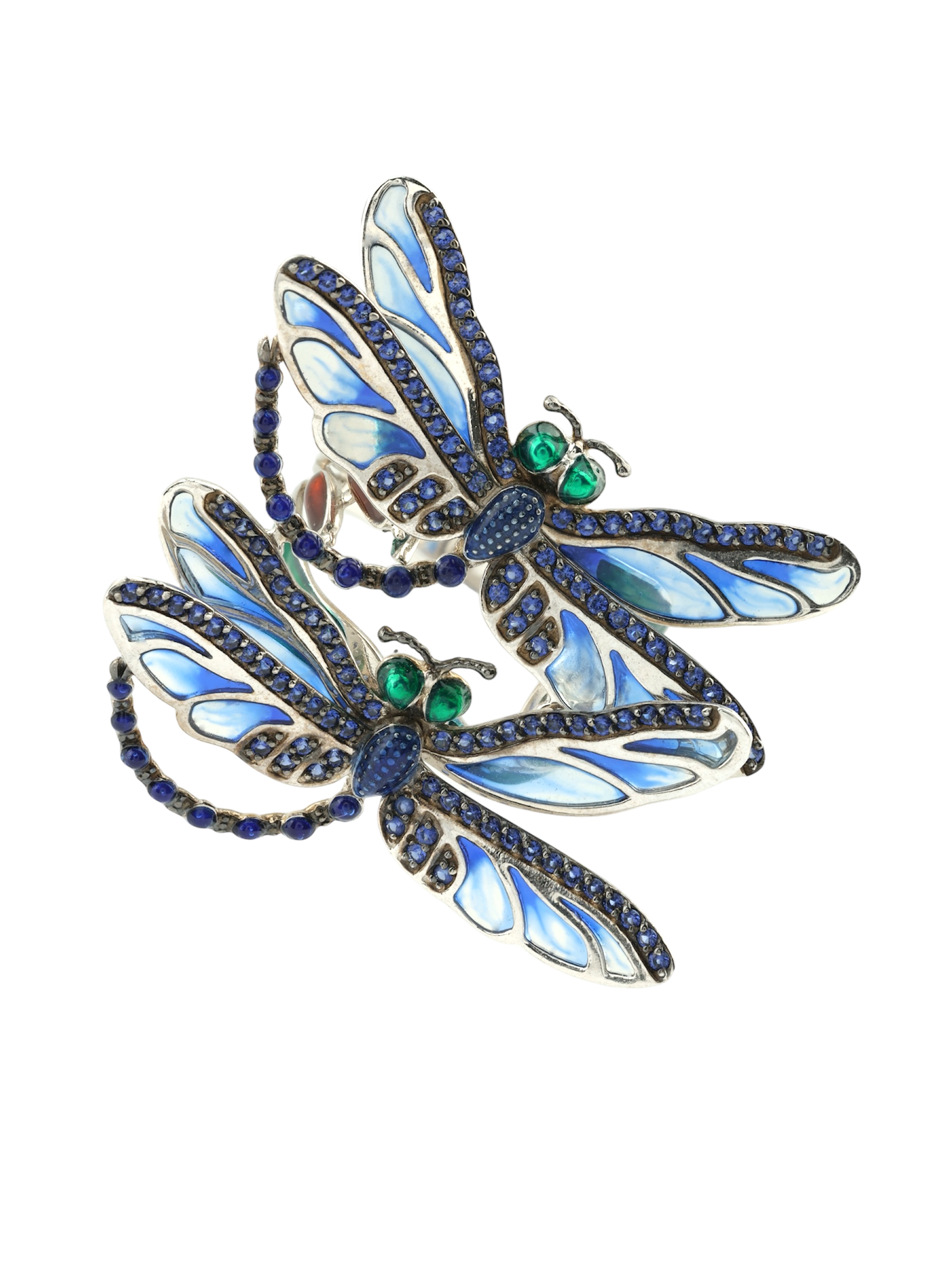 Кольцо из белого золота c сапфиром и эмалью