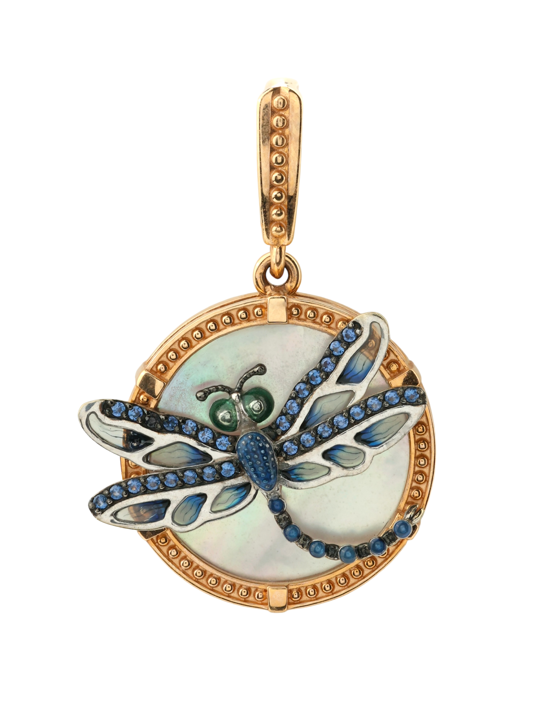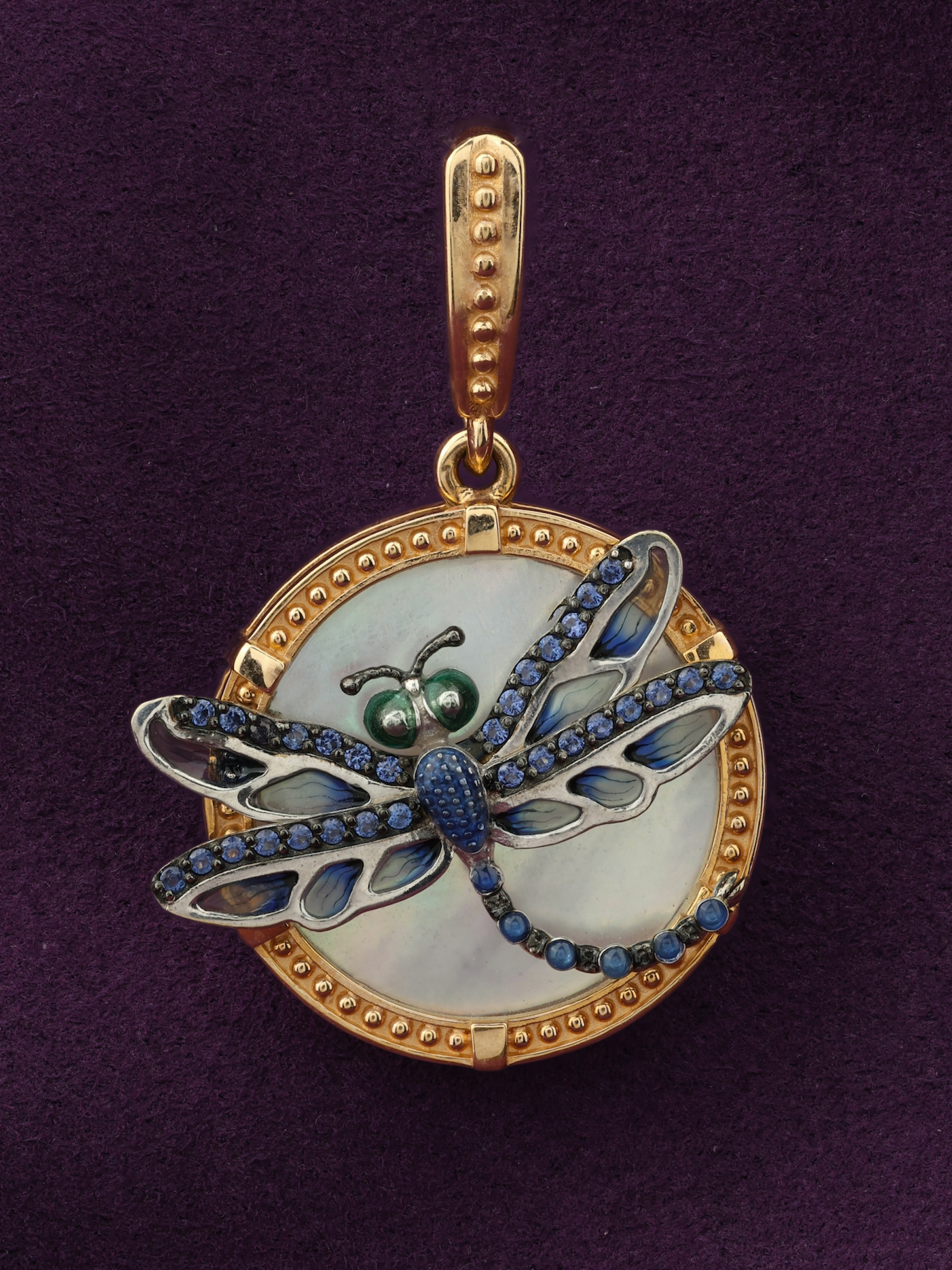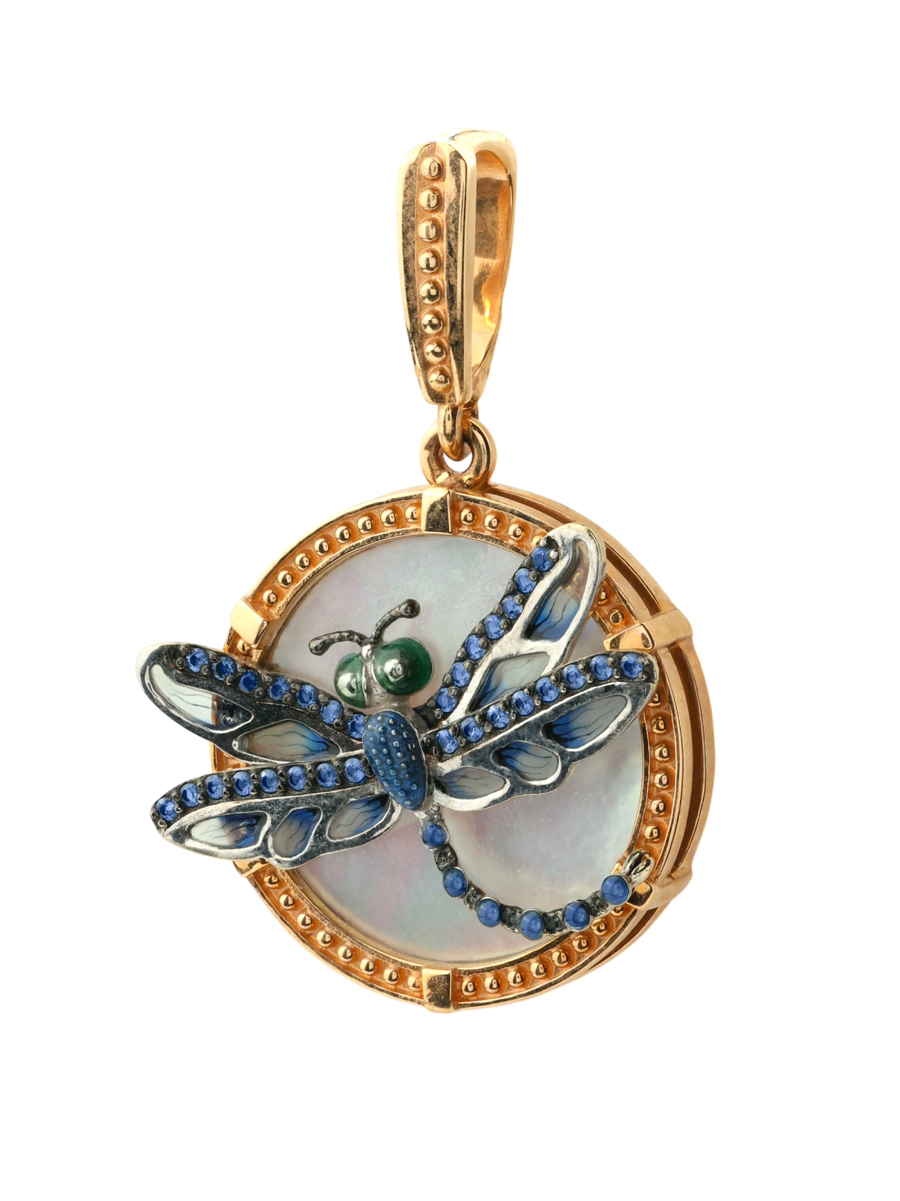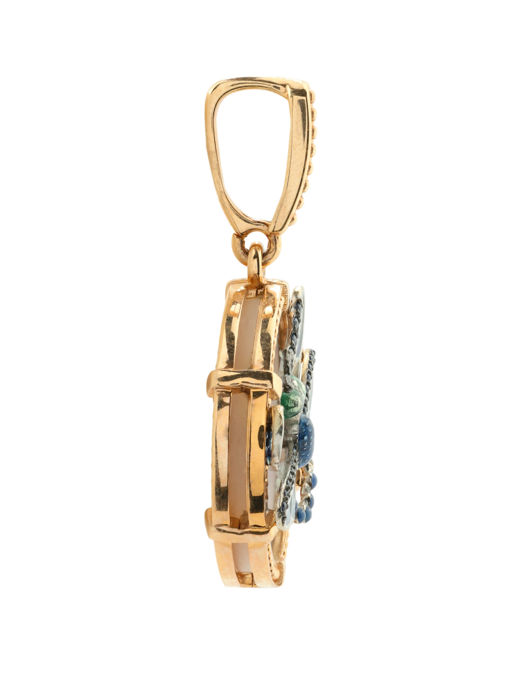 Подвеска из золота c сапфиром, эмалью и перламутром