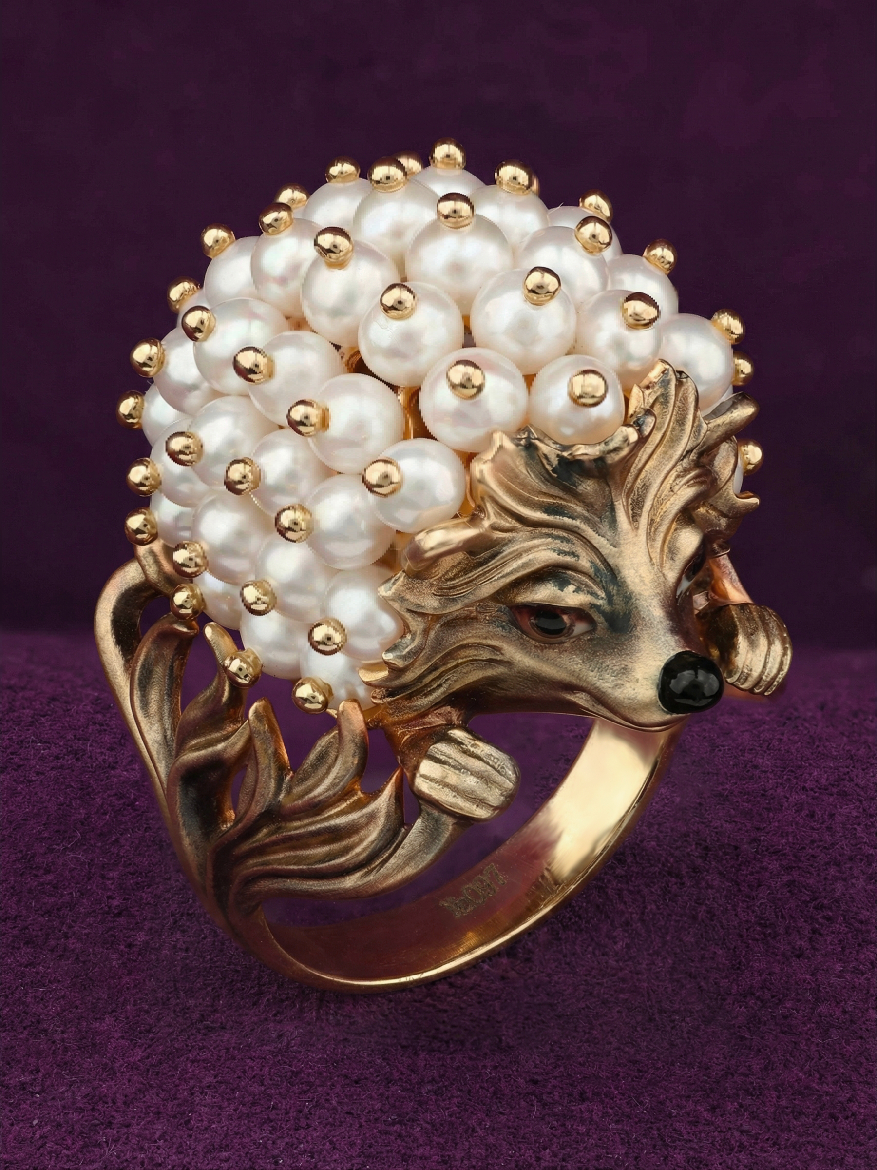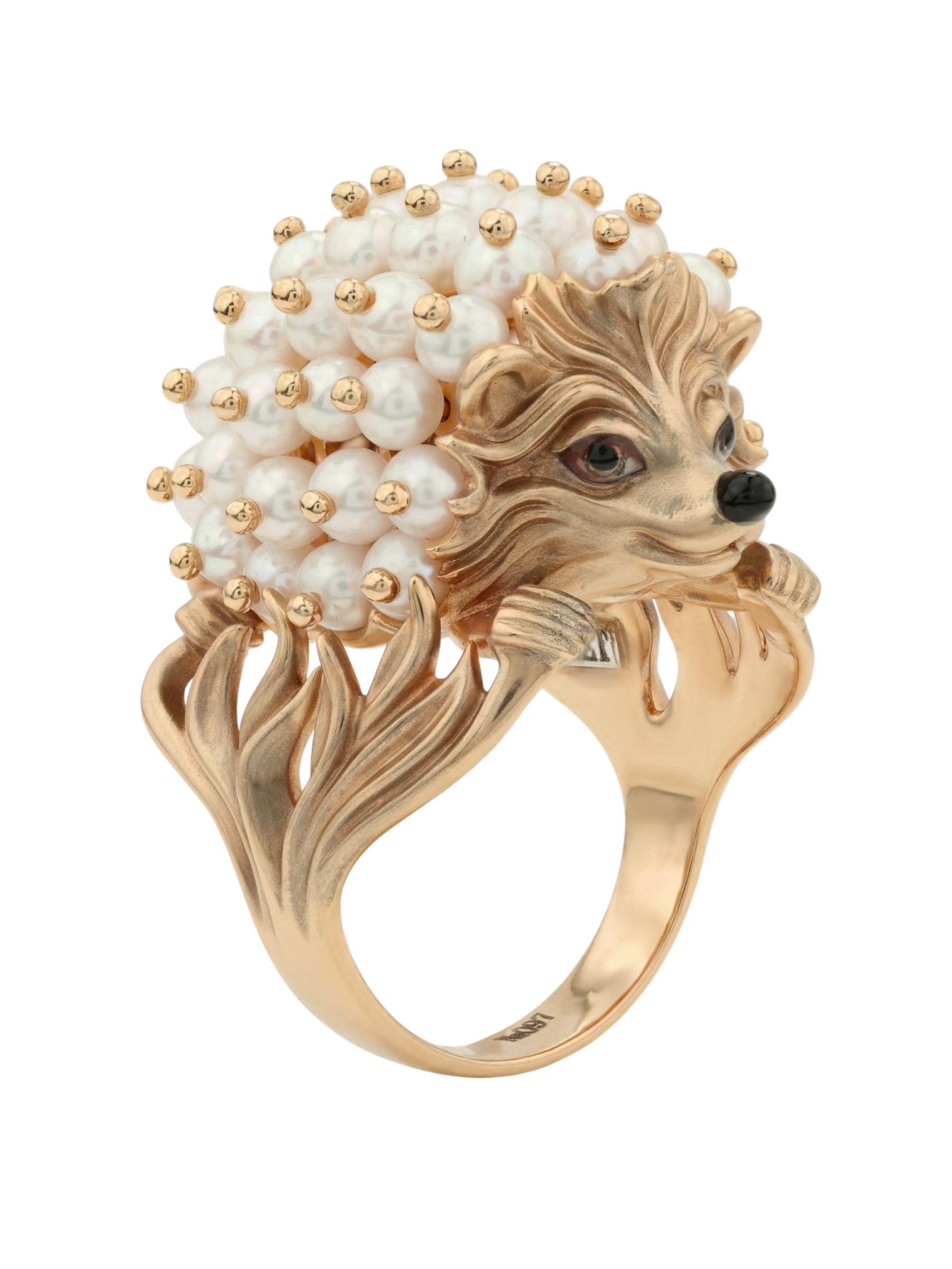Кольцо из золота c эмалью и жемчугом