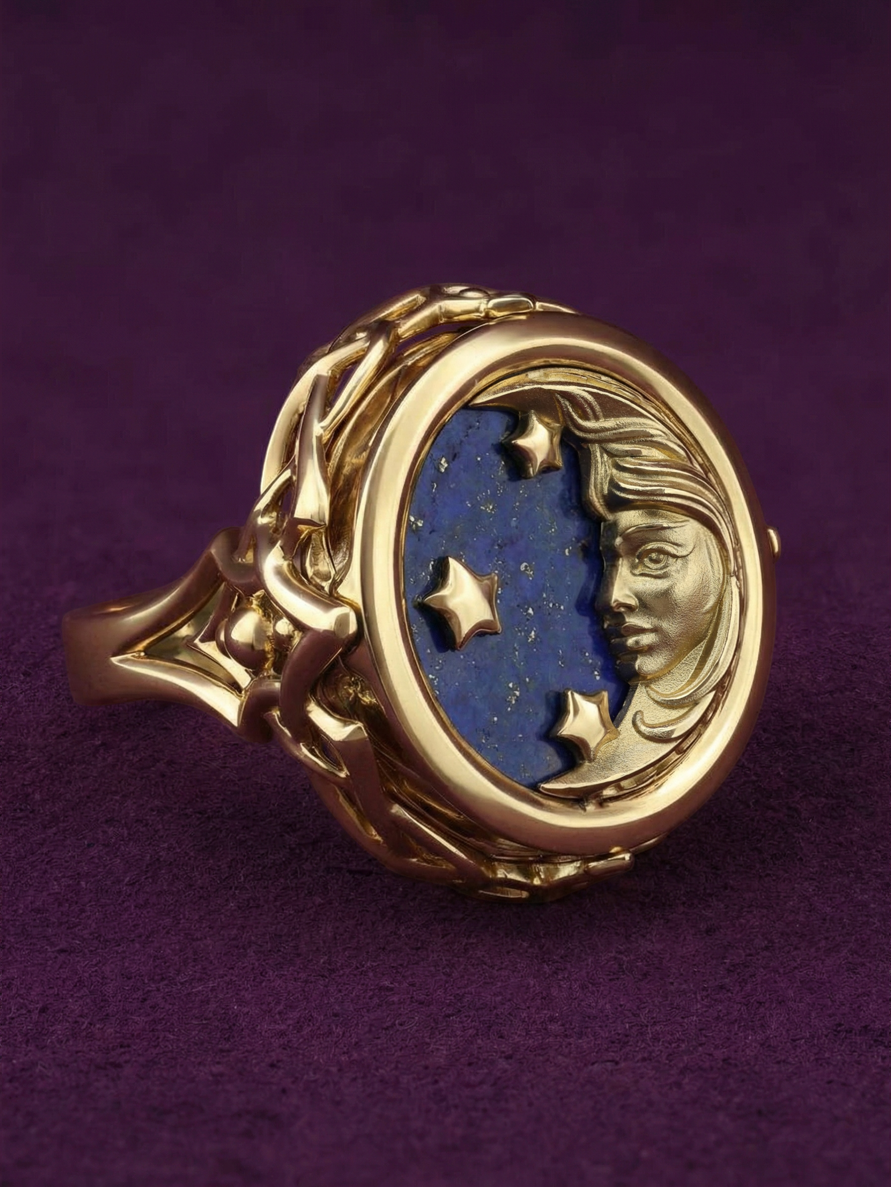 Кольцо из лимонного золота c бирюзой и лазуритом