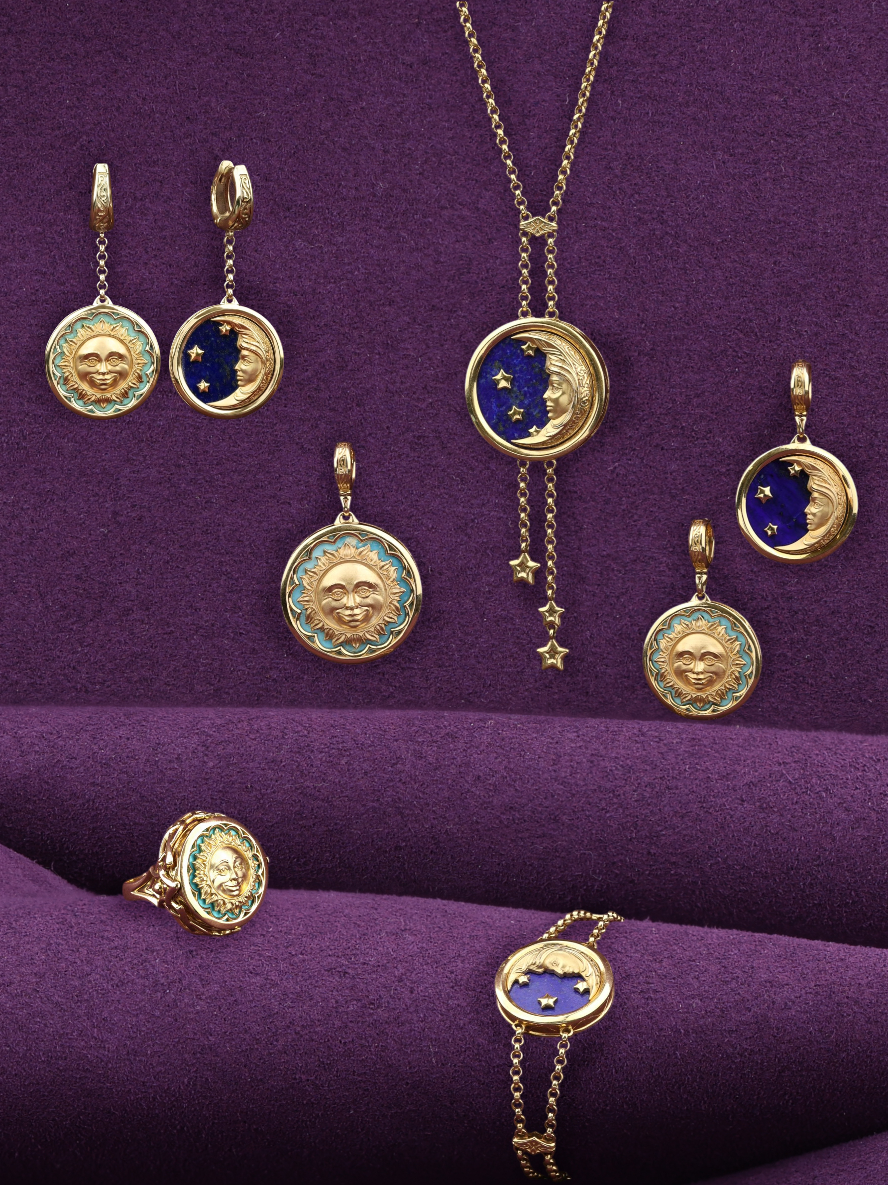 Подвеска из лимонного золота c бирюзой и лазуритом