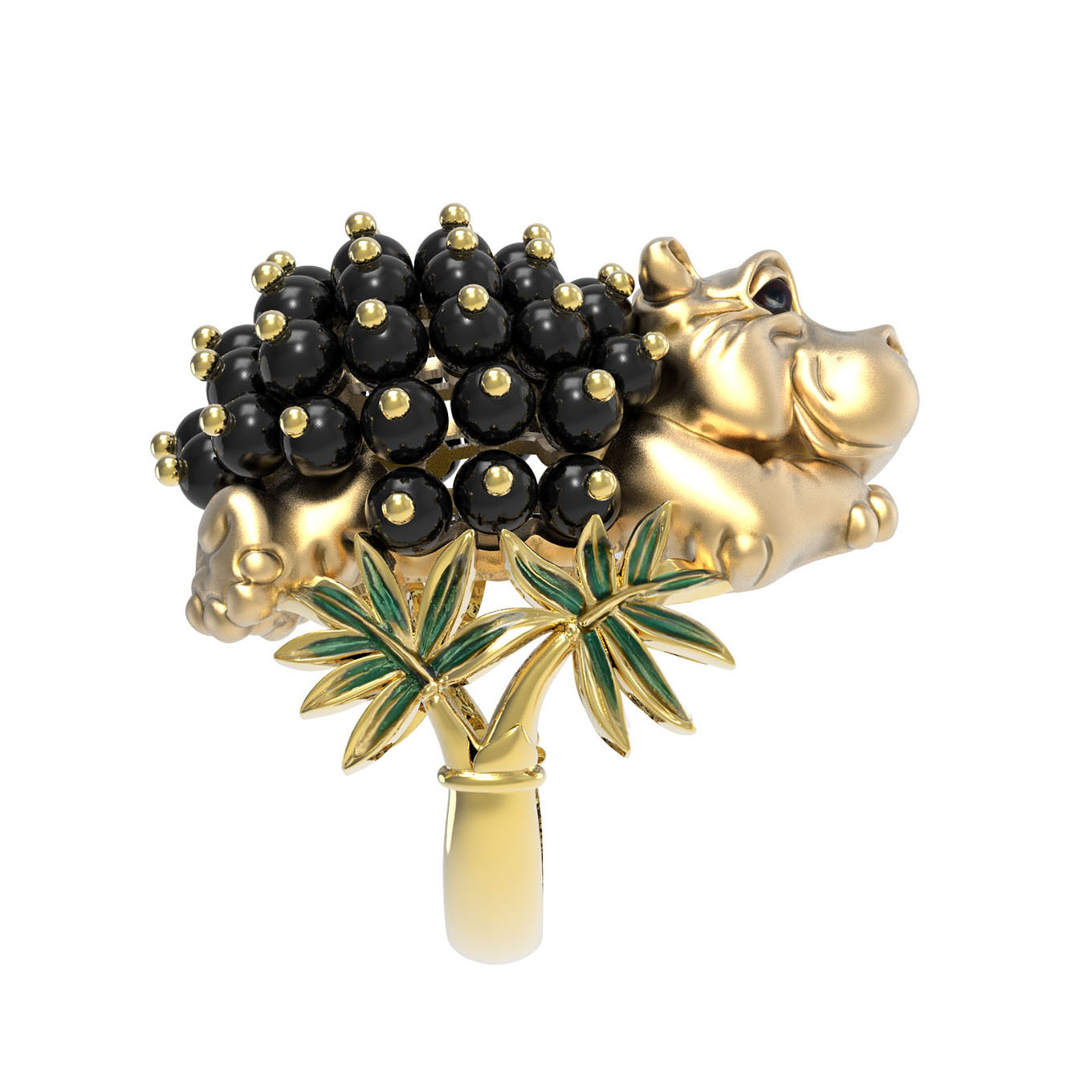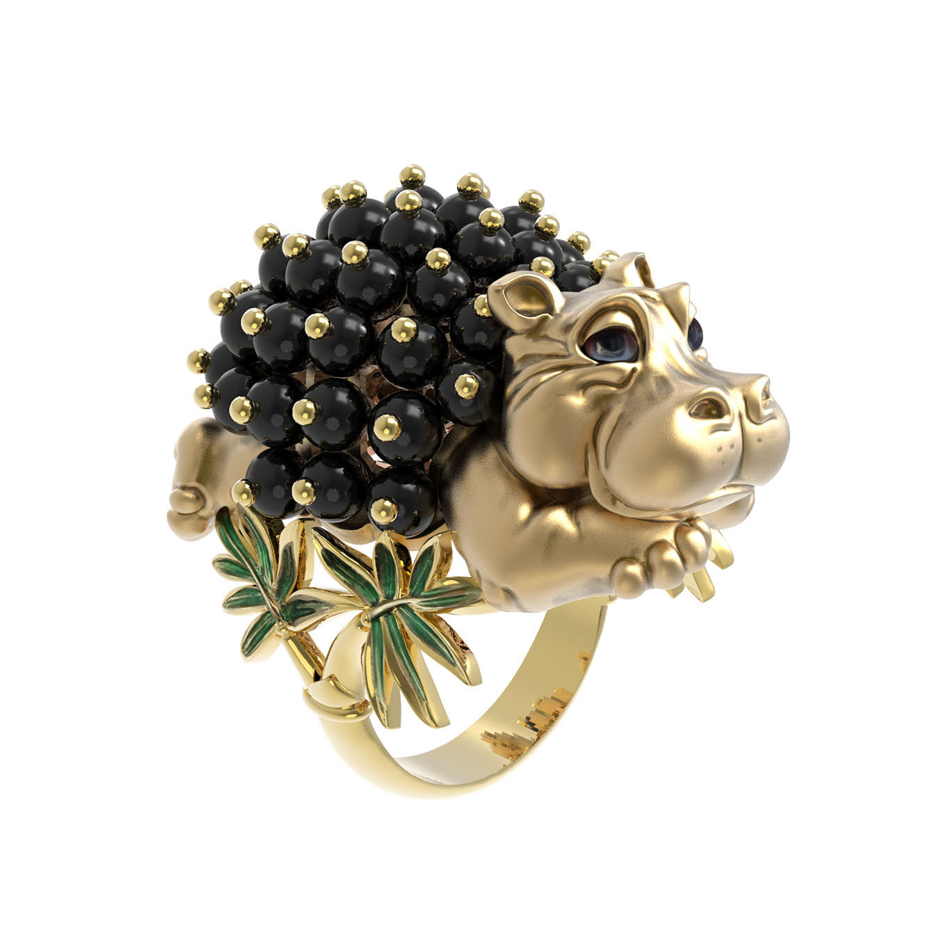 Кольцо из лимонного золота c эмаль и ониксом