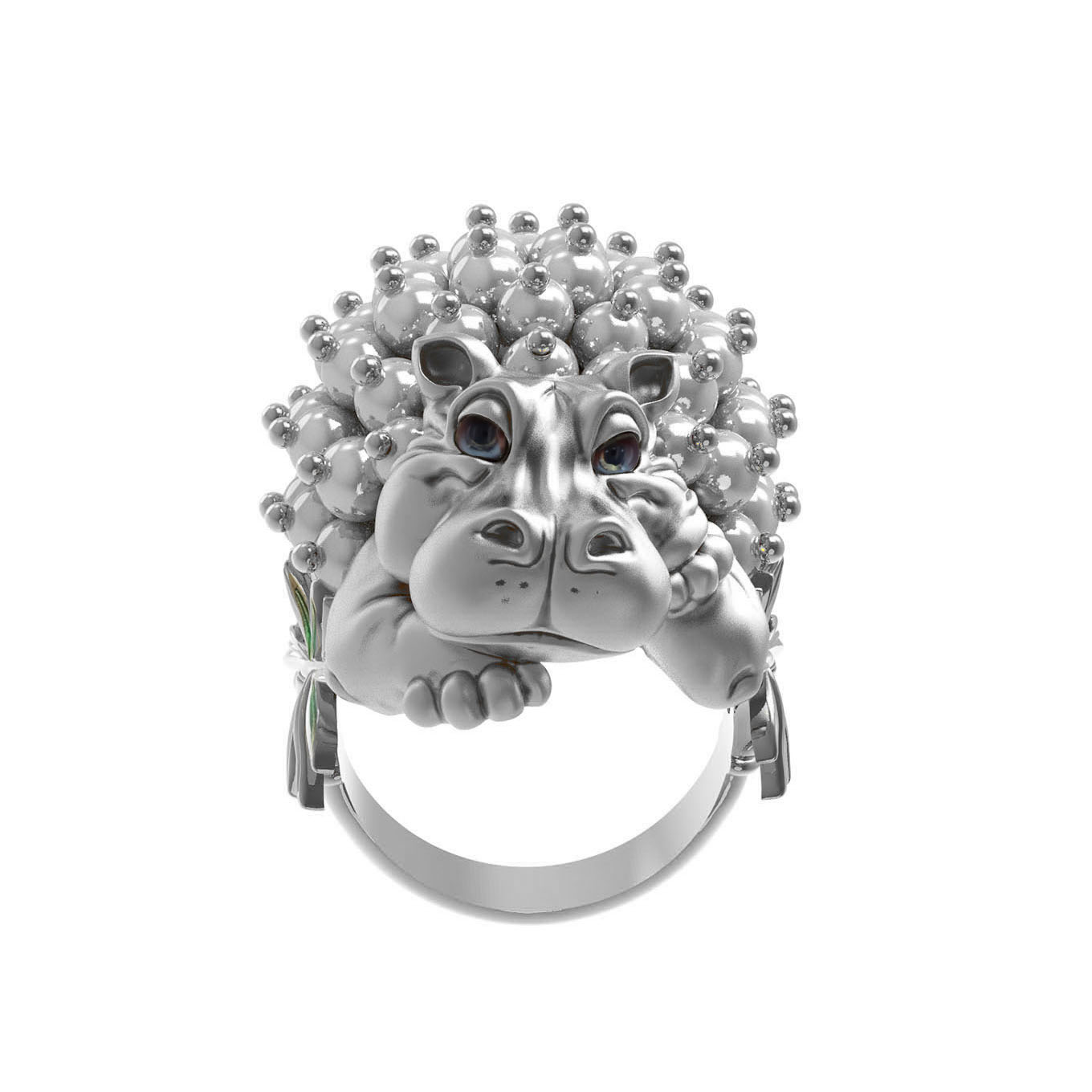 Кольцо из белого золота c эмаль и жемчугом