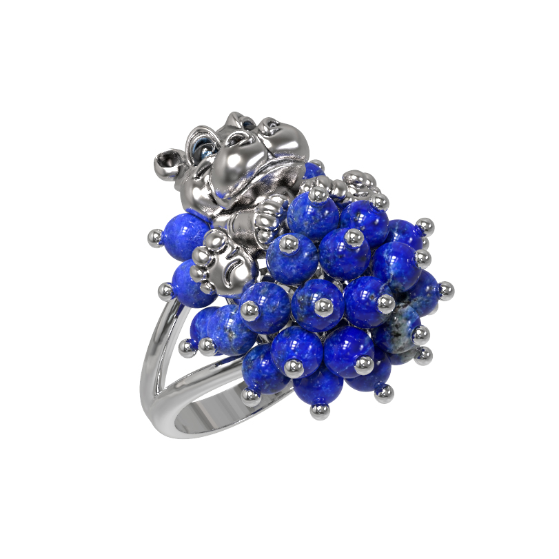 Кольцо из белого золота c эмаль и лазуритом