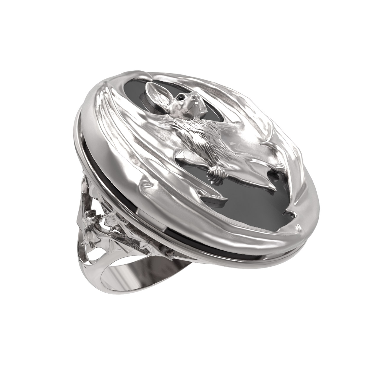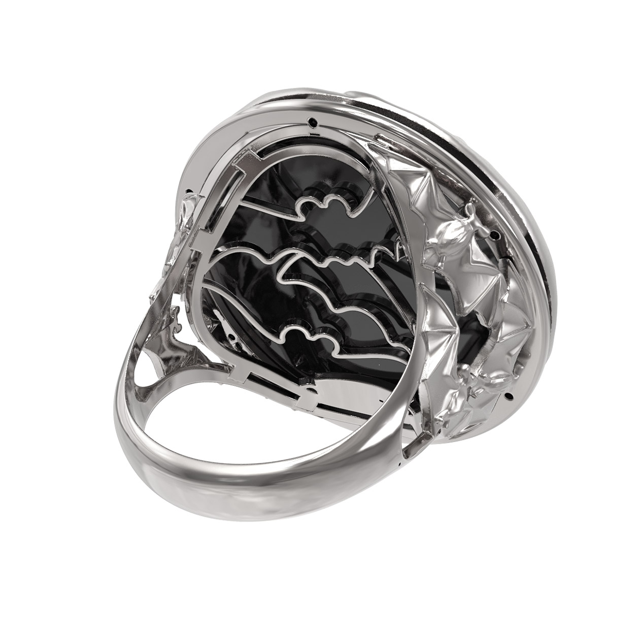 Кольцо из белого золота c эмалью и ониксом