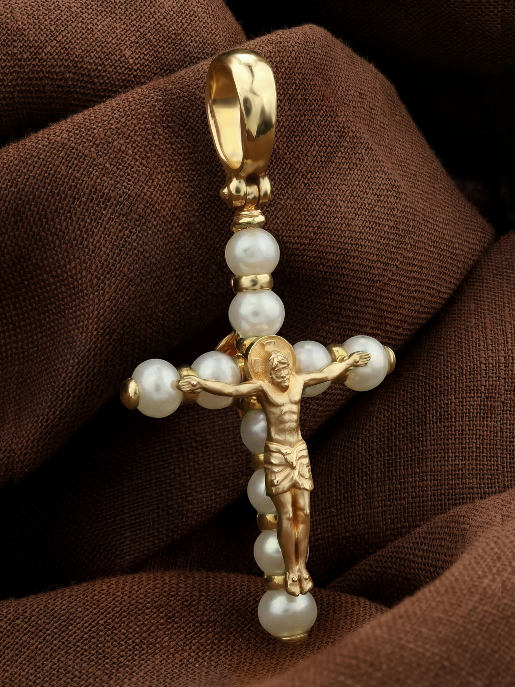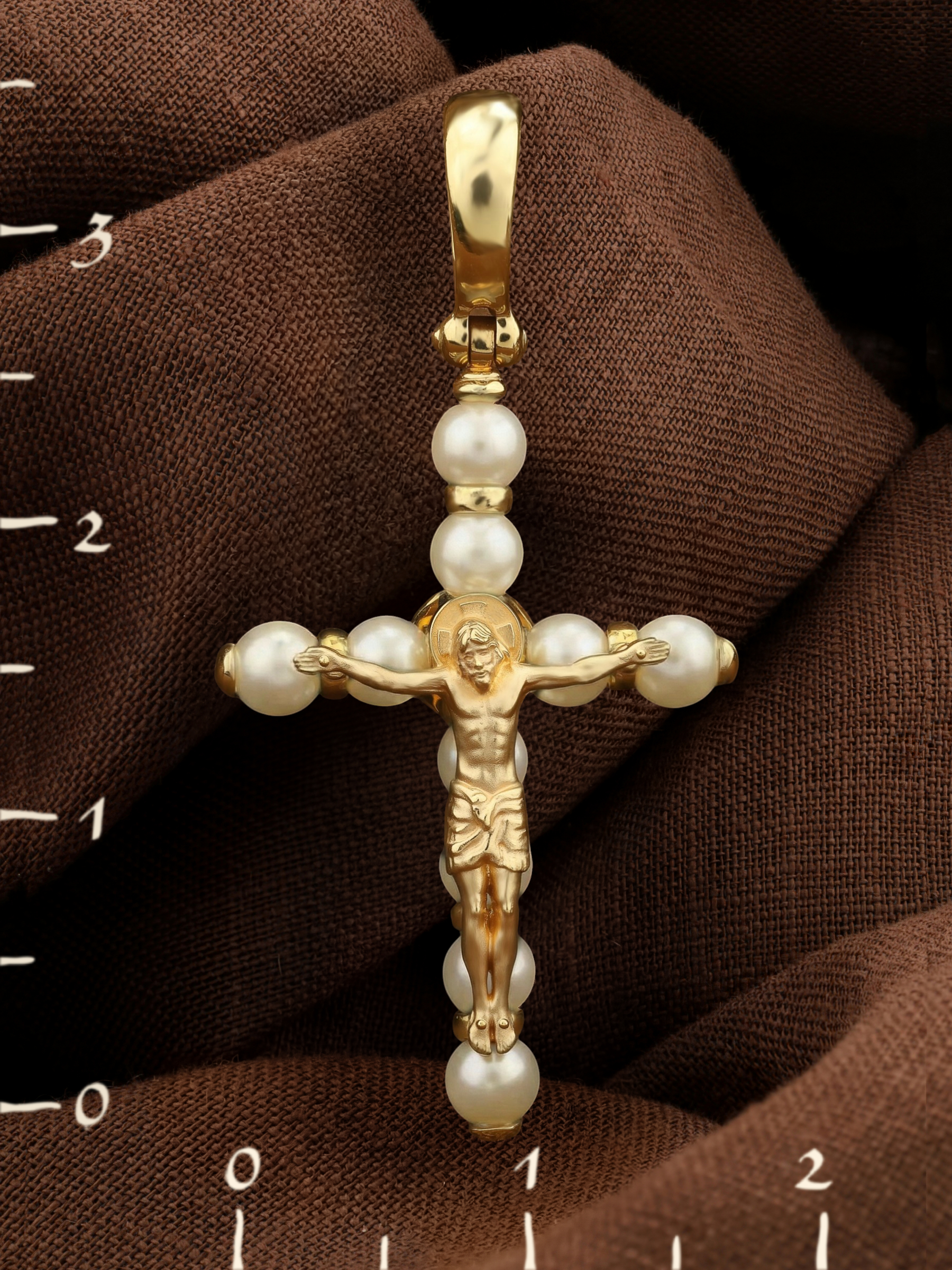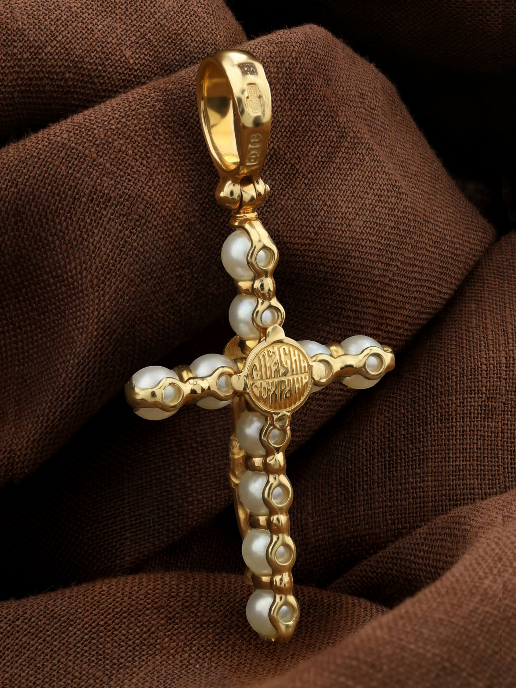 Крест из лимонного золота c жемчугом