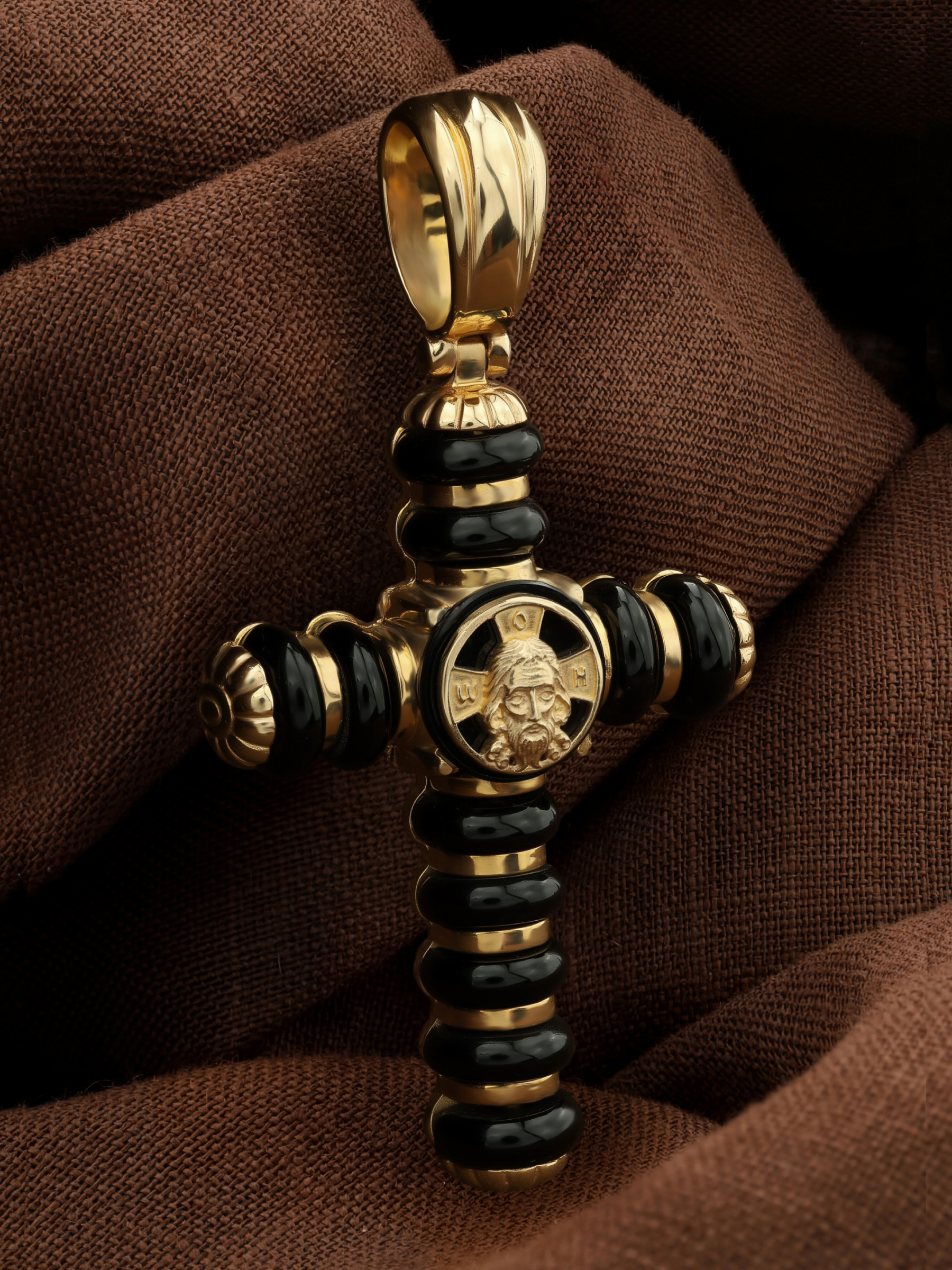 Крест из лимонного золота c ониксом