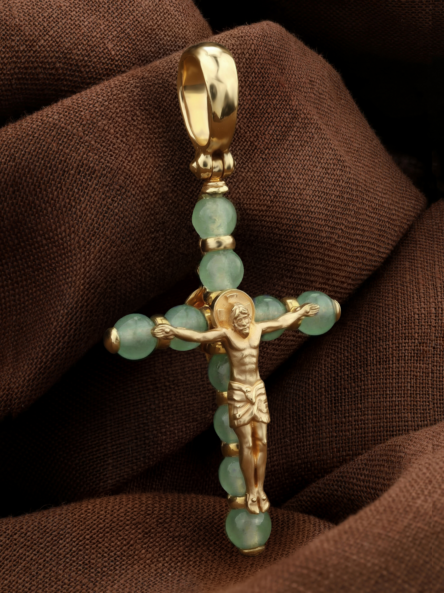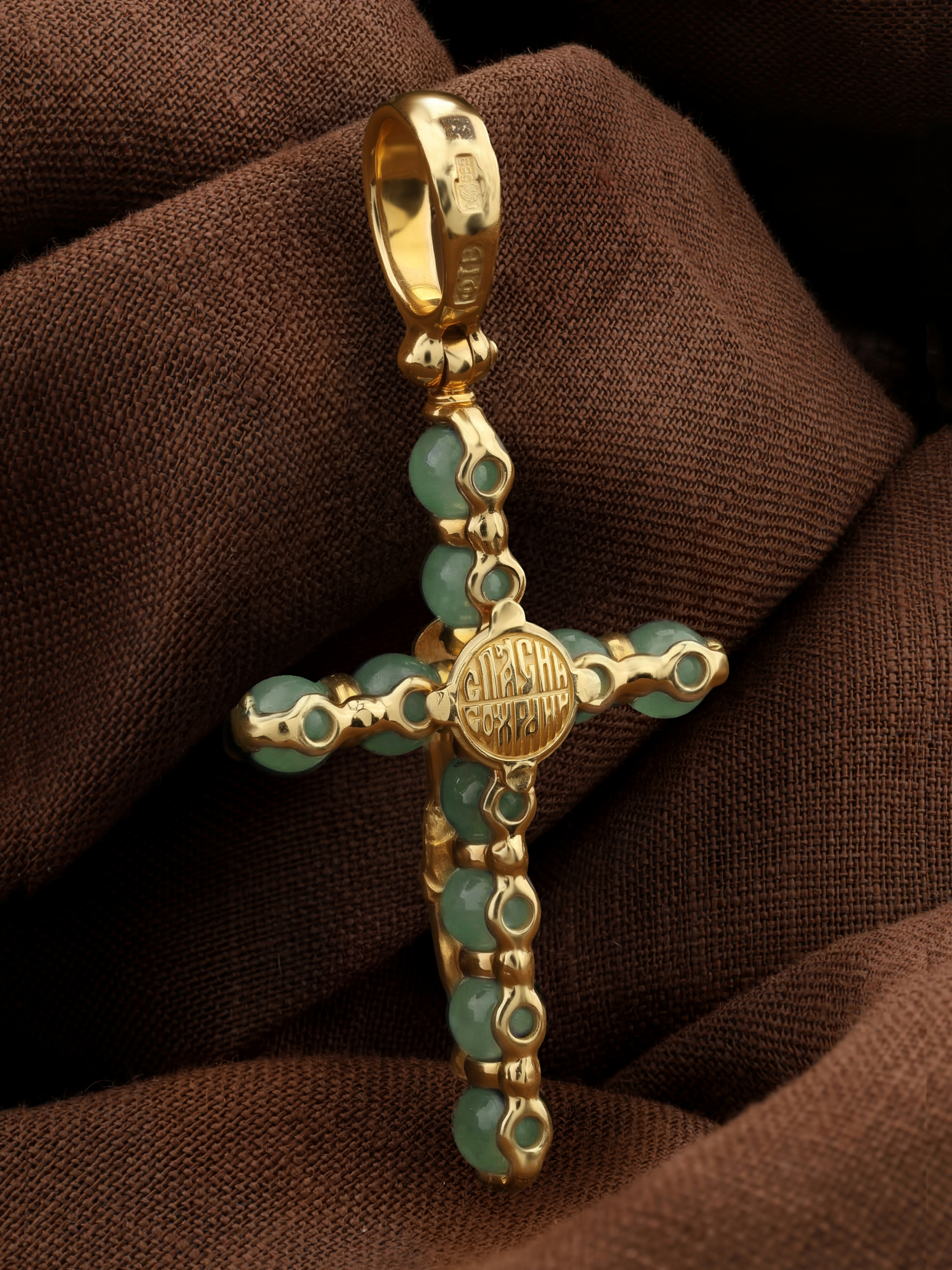 Крест из лимонного золота c нефритом