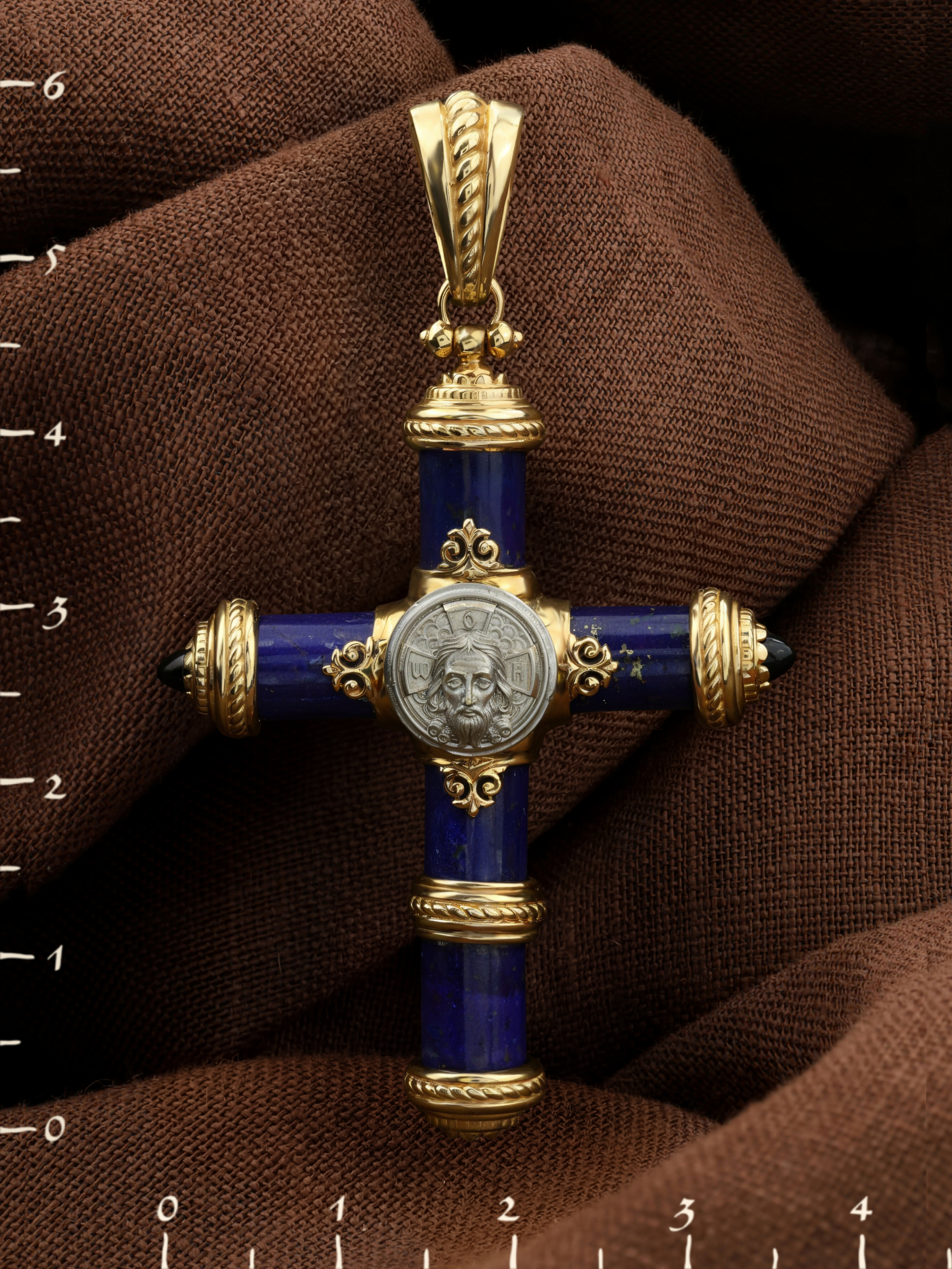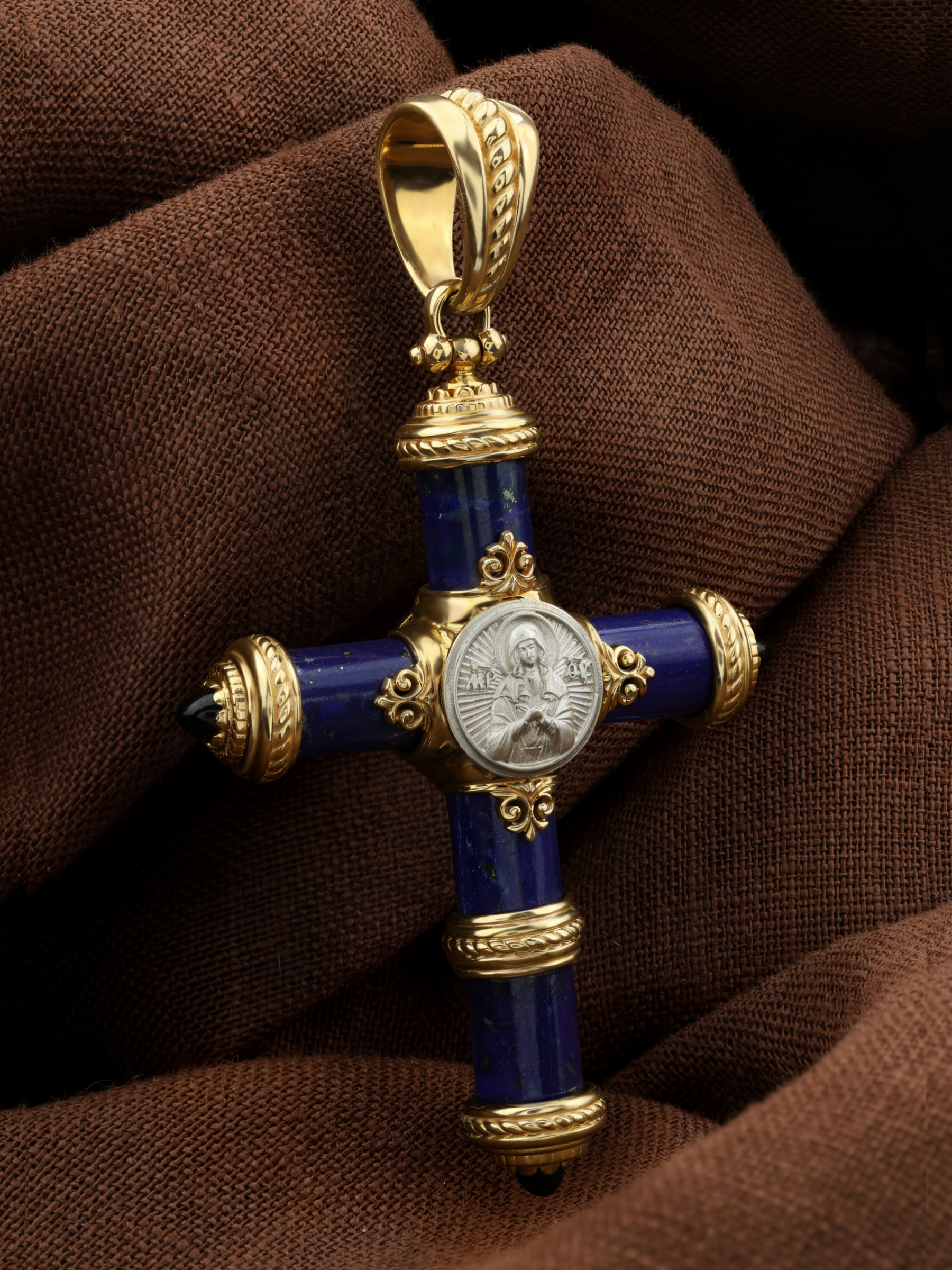 Крест из лимонного золота c ониксом и лазуритом