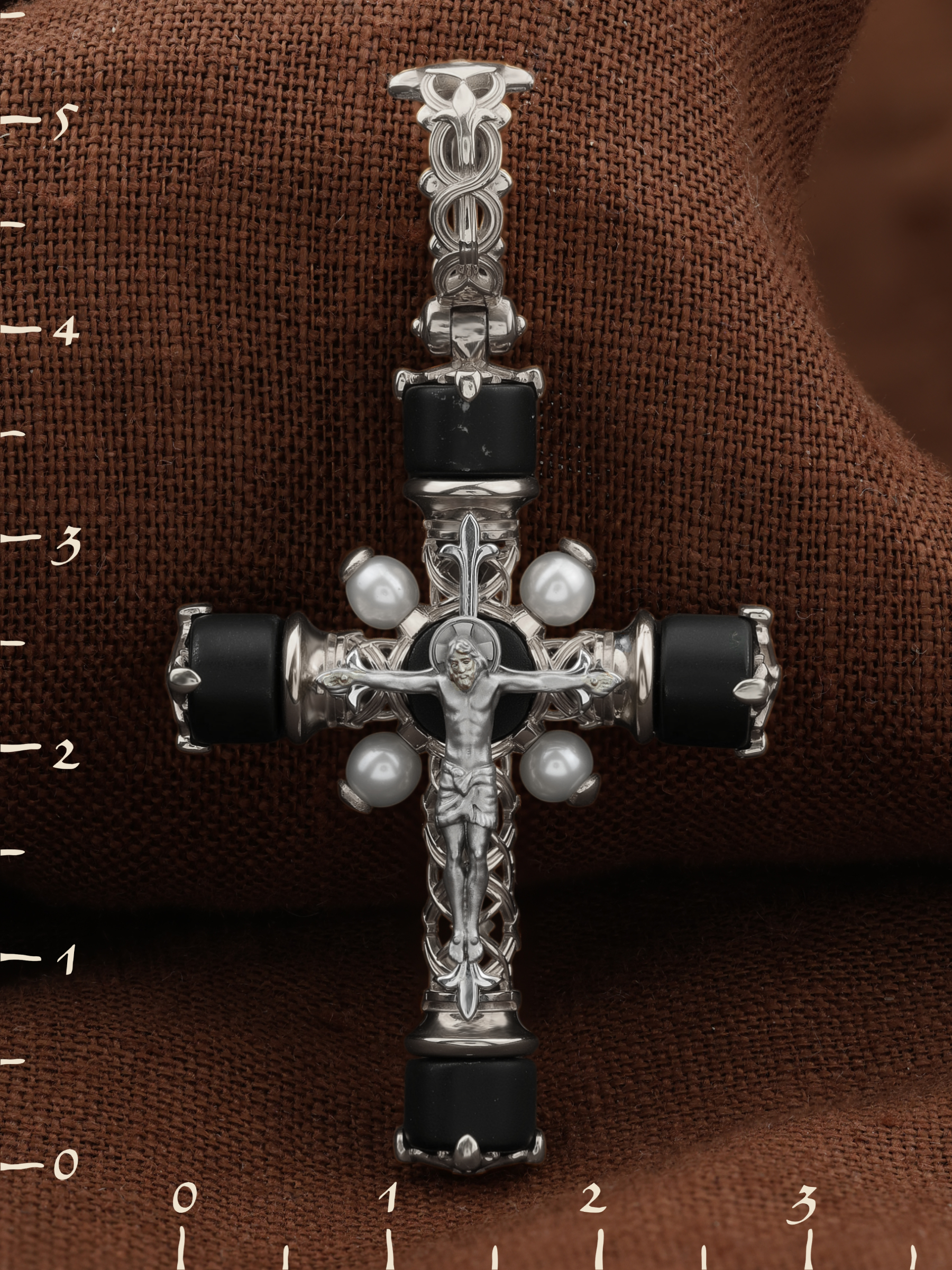 Крест из белого золота c жемчугом и ониксом