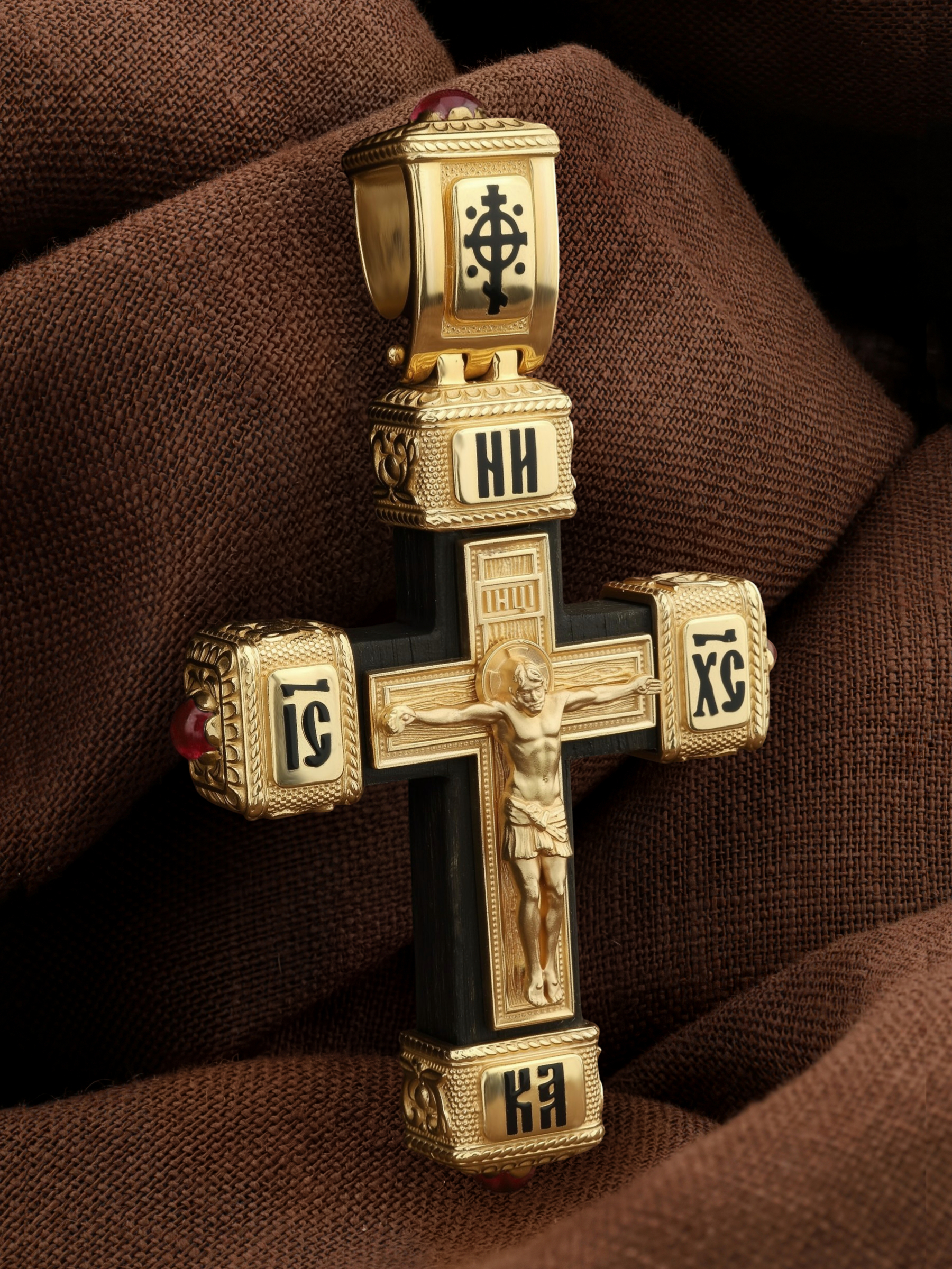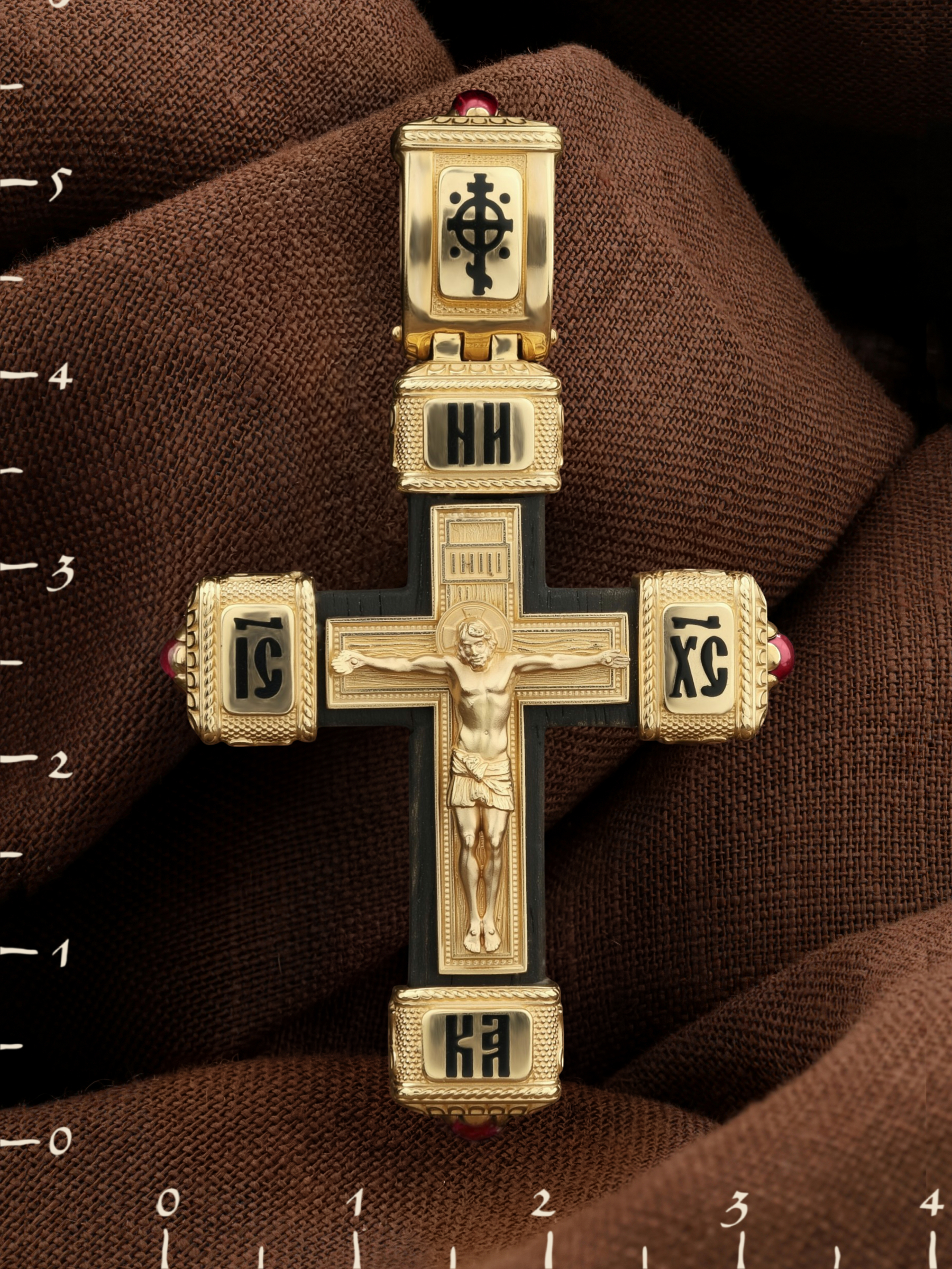 Крест из лимонного золота c эмалью, рубином и эбеновым деревом