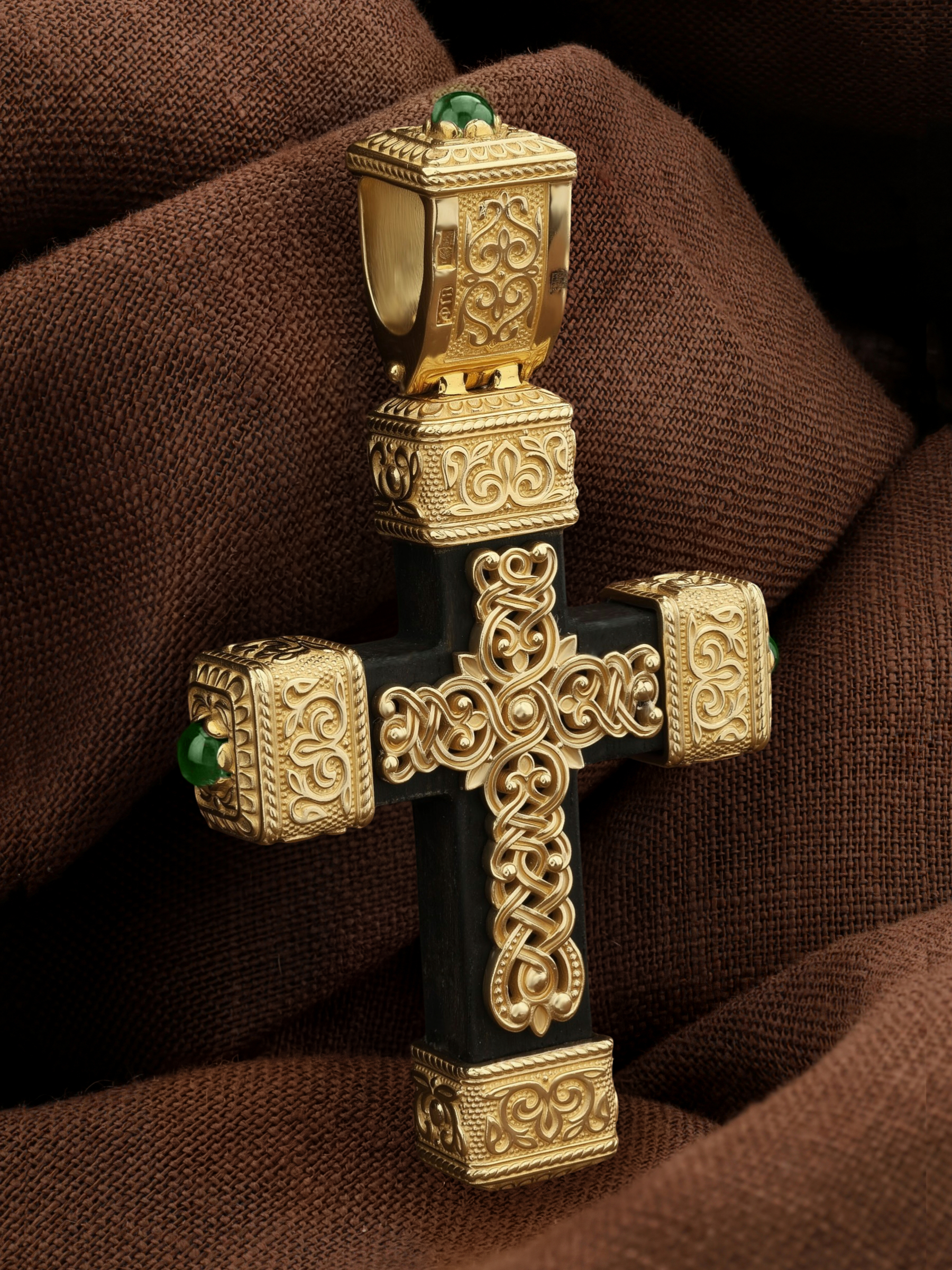 Крест из лимонного золота c эмаль, хризопразом и эбеновым деревом