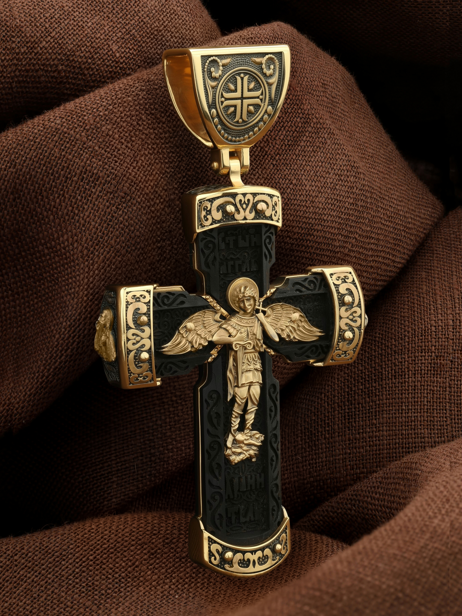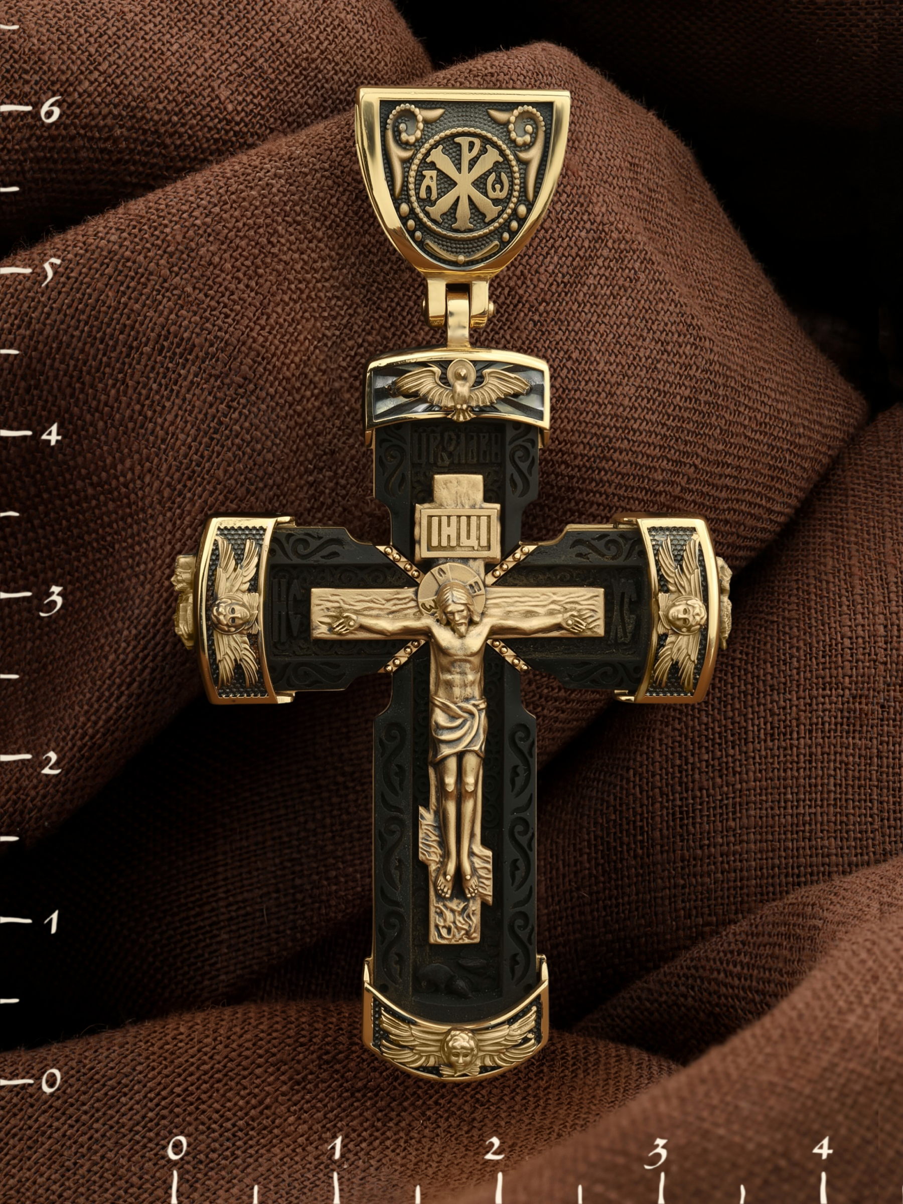 Крест из лимонного золота c эбеновым деревом