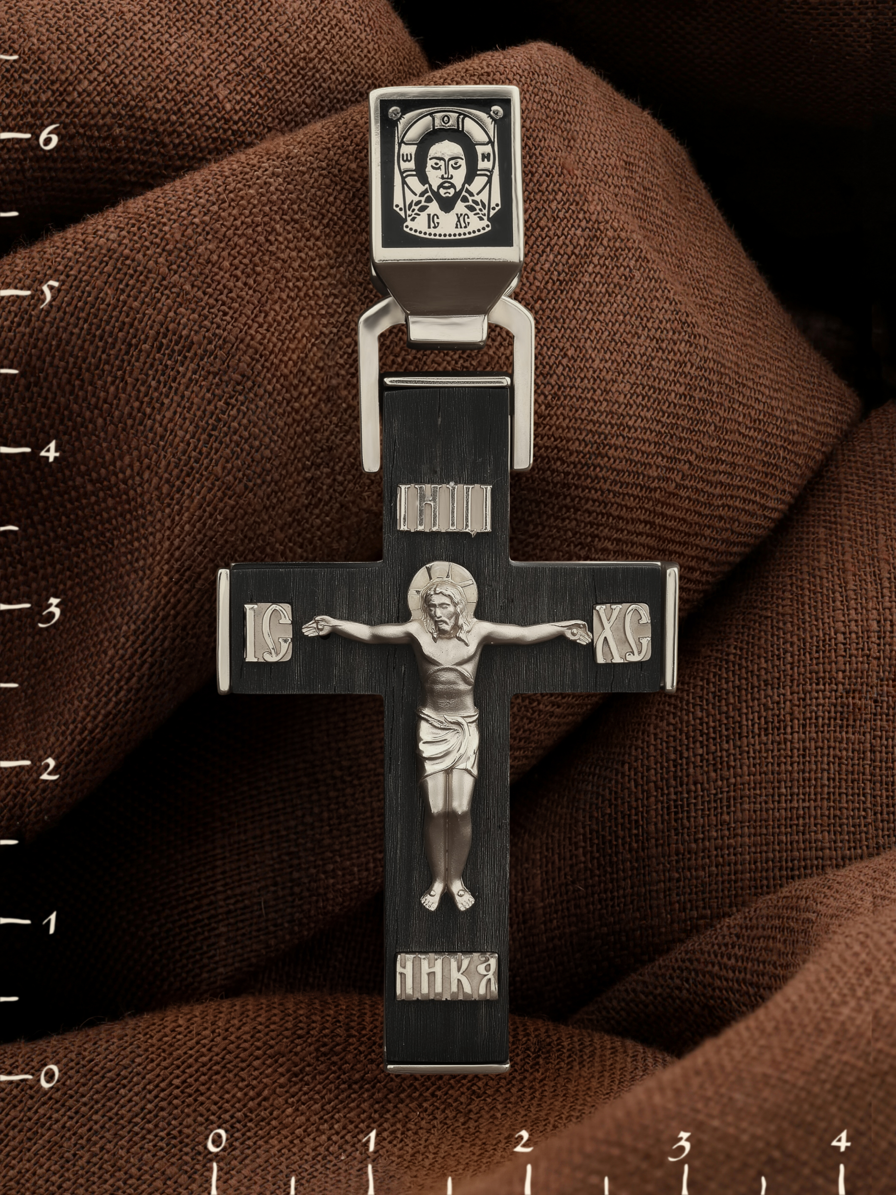 Крест из белого золота c эмаль и эбеновым деревом