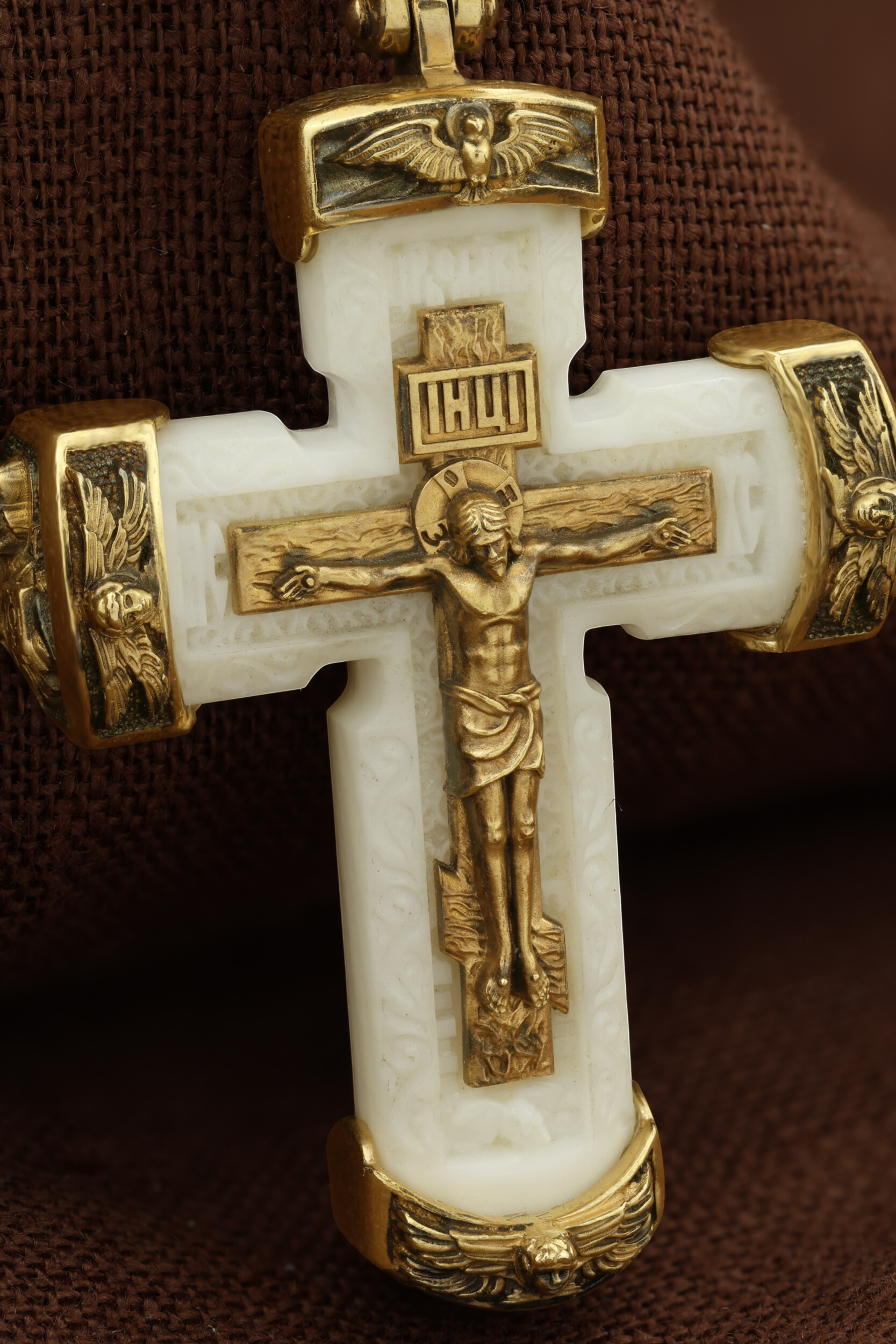 Над Распятием изображен парящий голубь — символ Святого Духа и Его благодати.