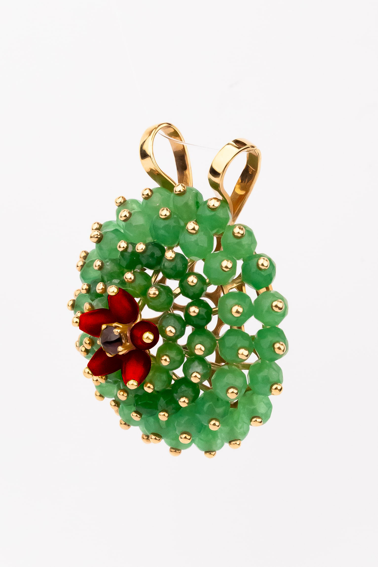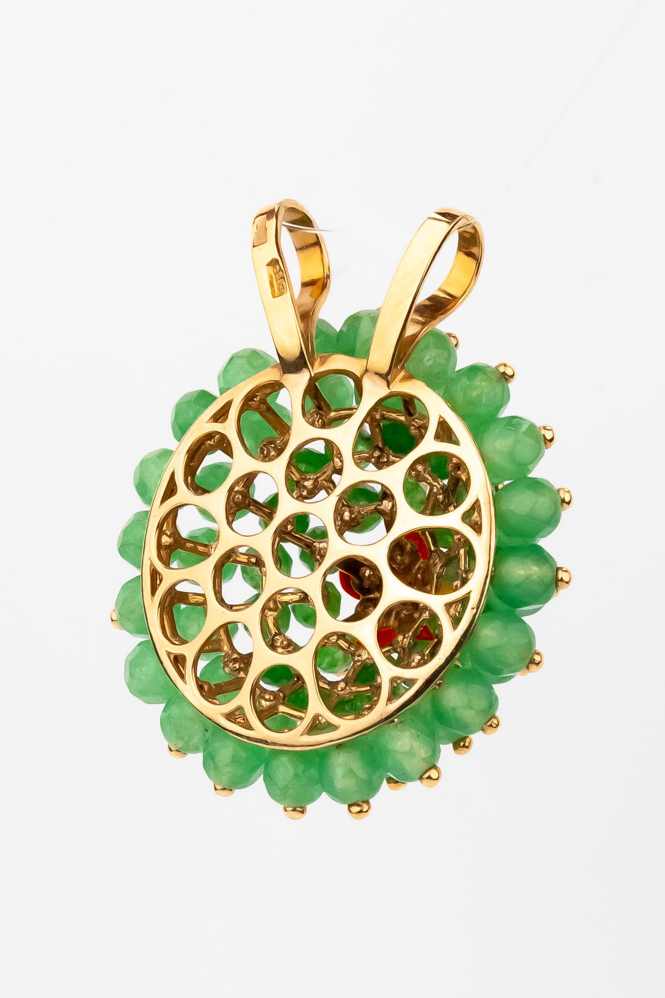 Подвеска из золота c гранатом, хризопразом и кораллом