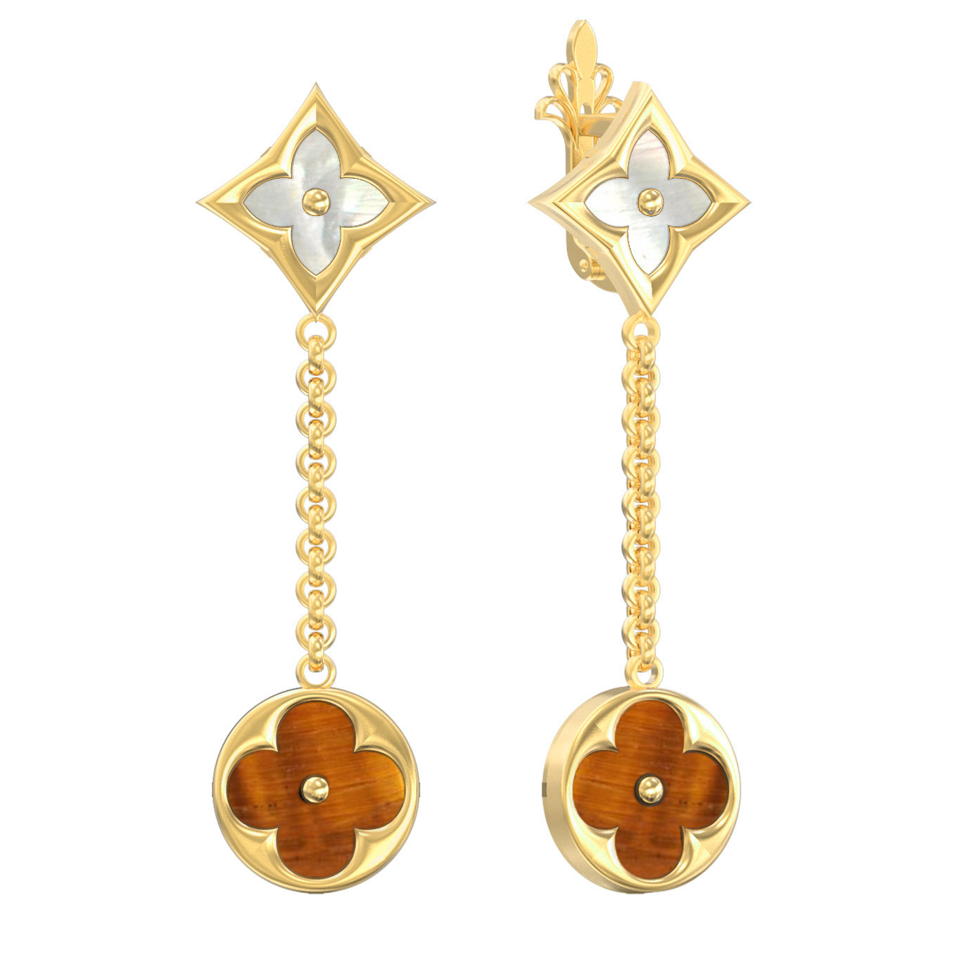 Серьги из лимонного золота c тигровым глазом и перламутром