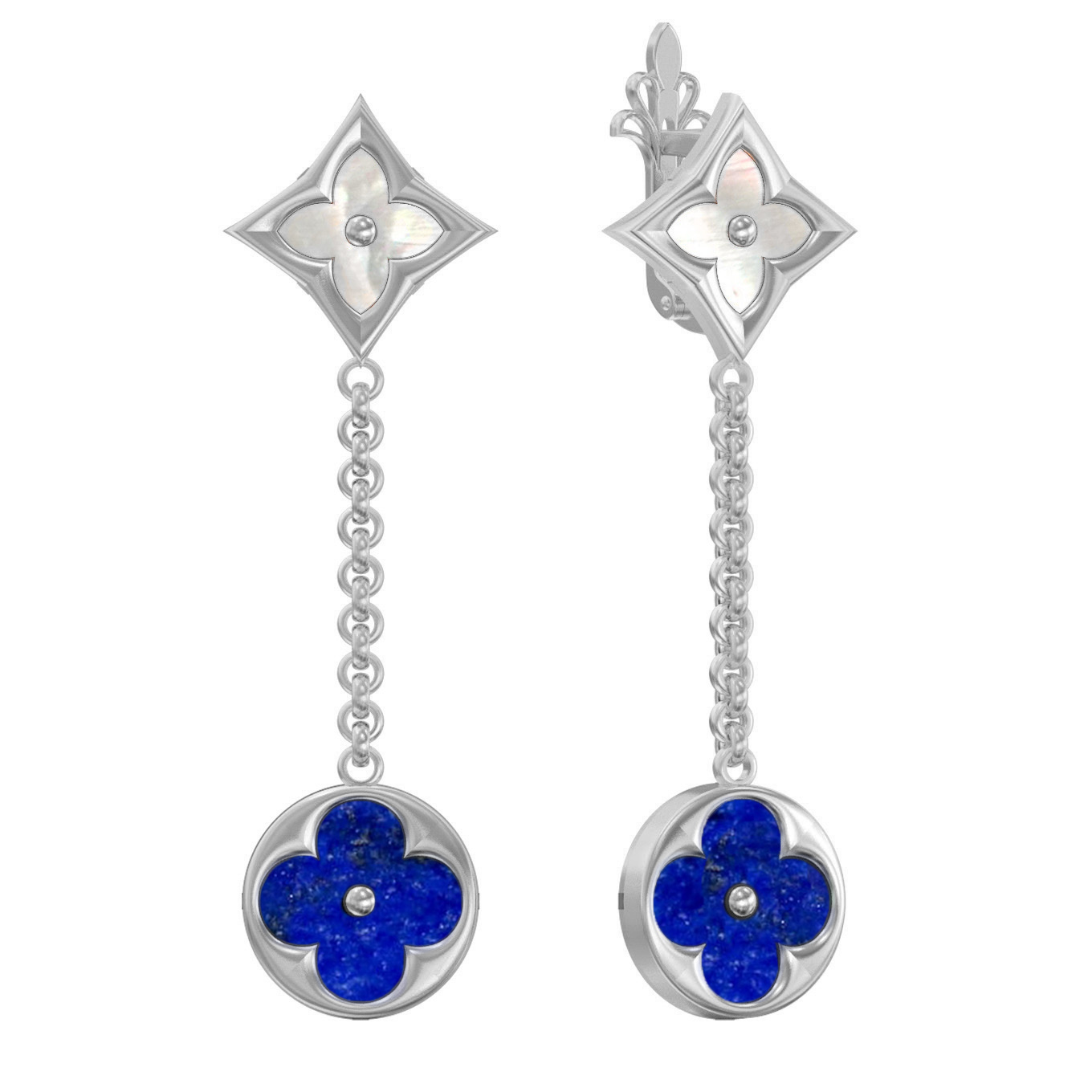 Серьги из белого золота c лазуритом и перламутром