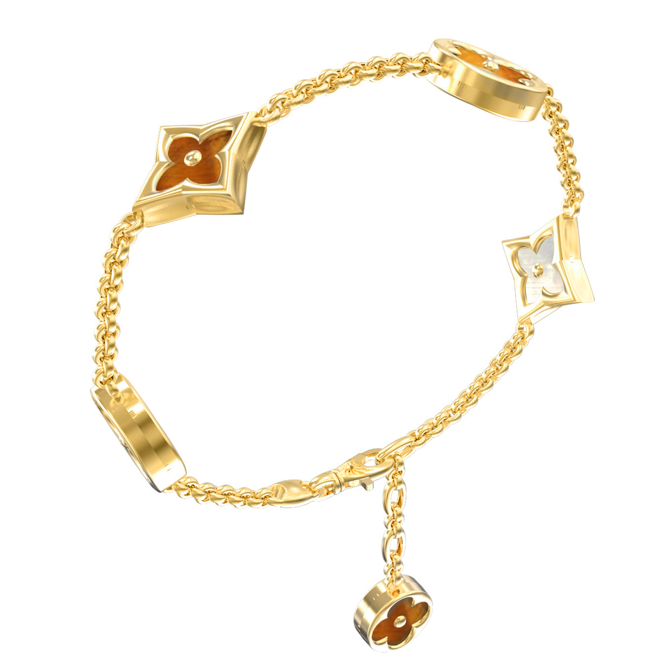 Браслет из лимонного золота c тигровым глазом и перламутром