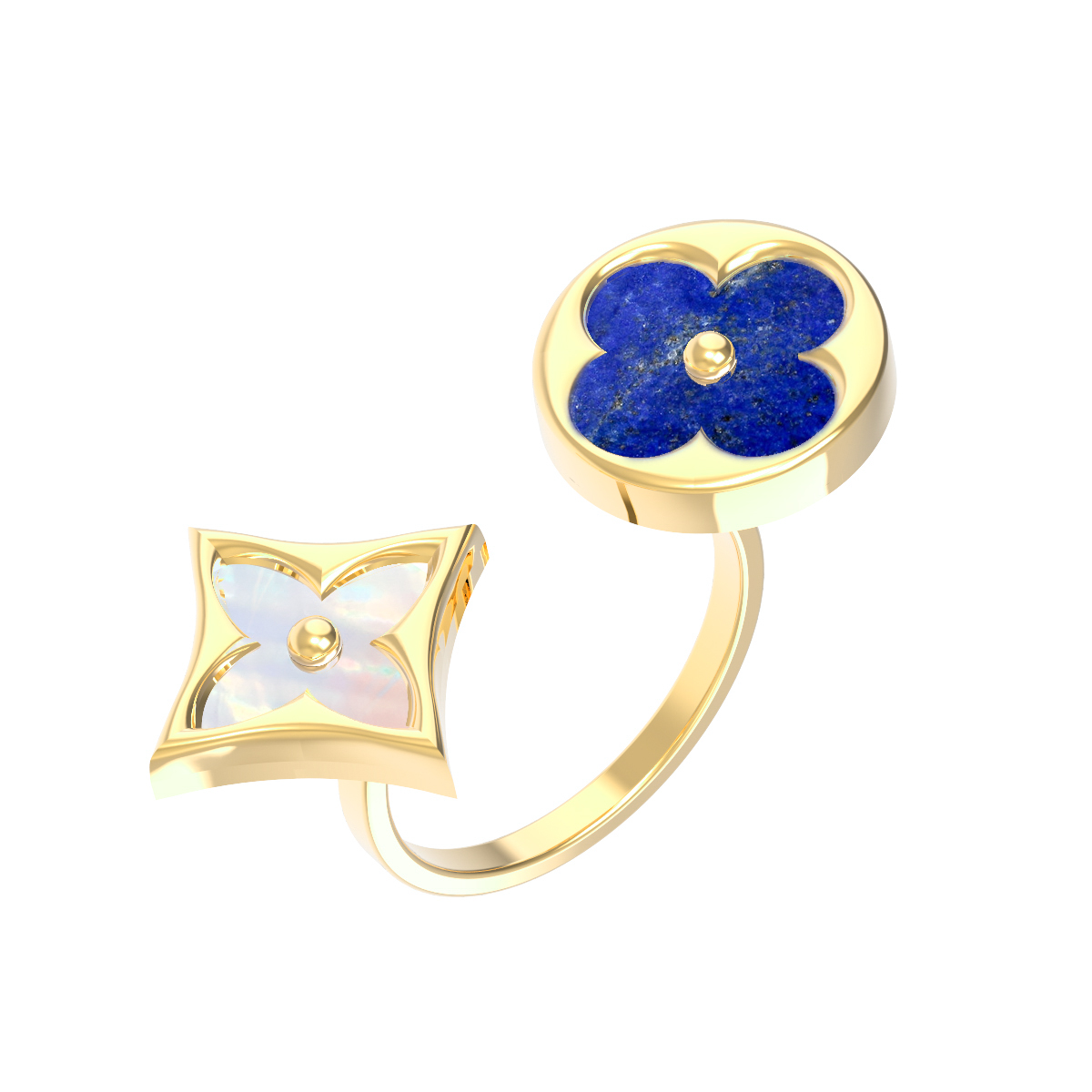 Кольцо из лимонного золота c лазуритом и перламутром