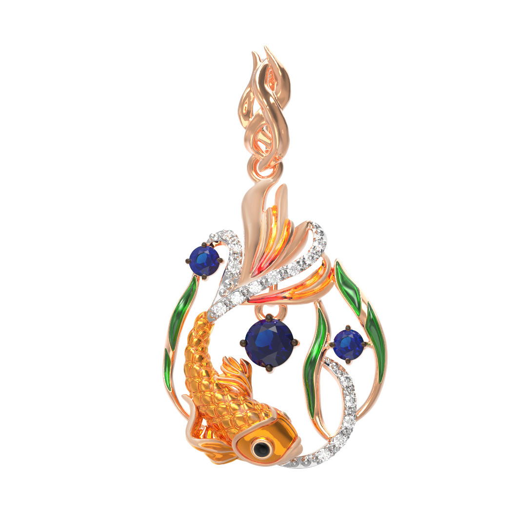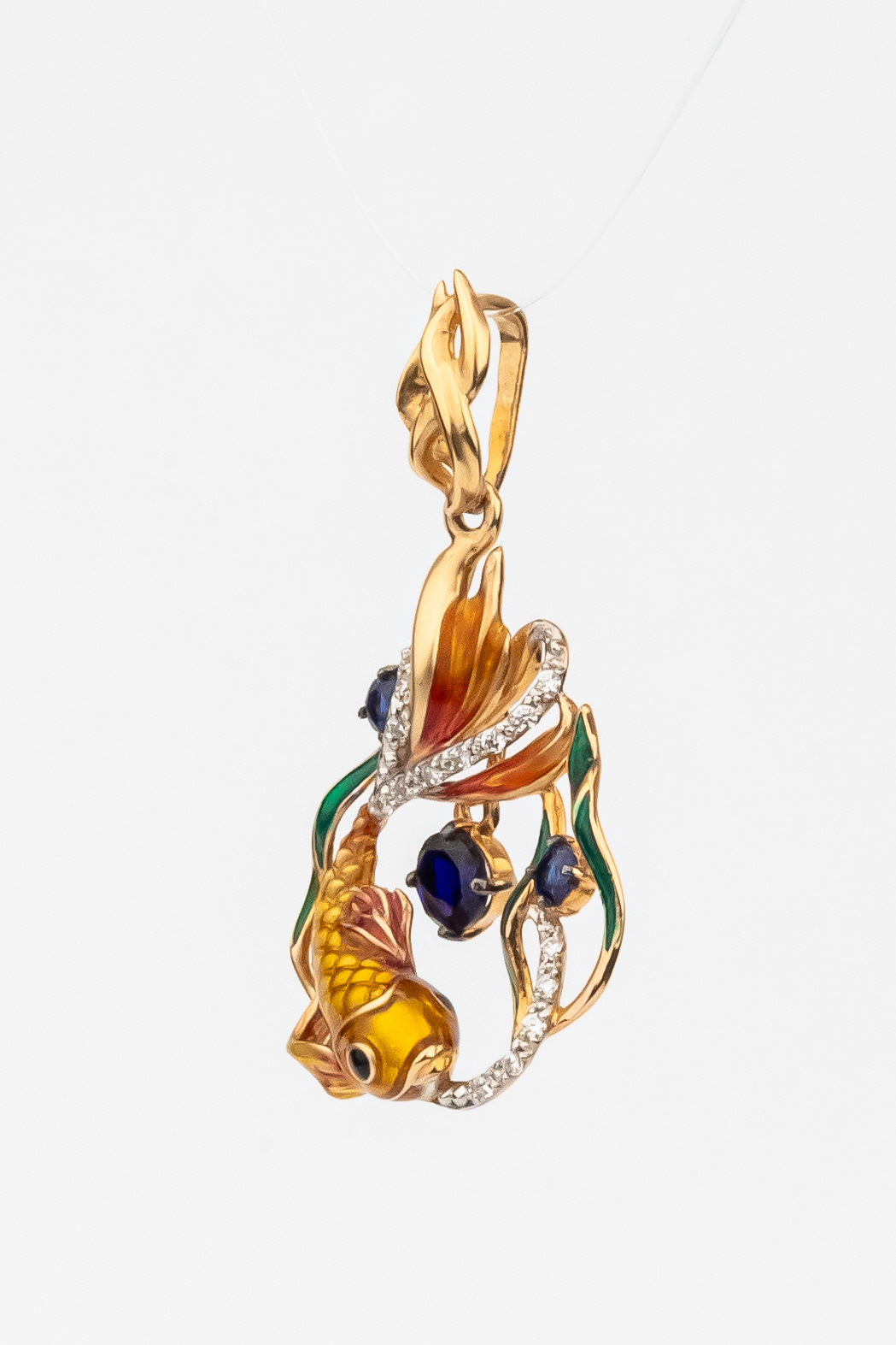 Подвеска из золота c эмаль, фианитом и сапфиром