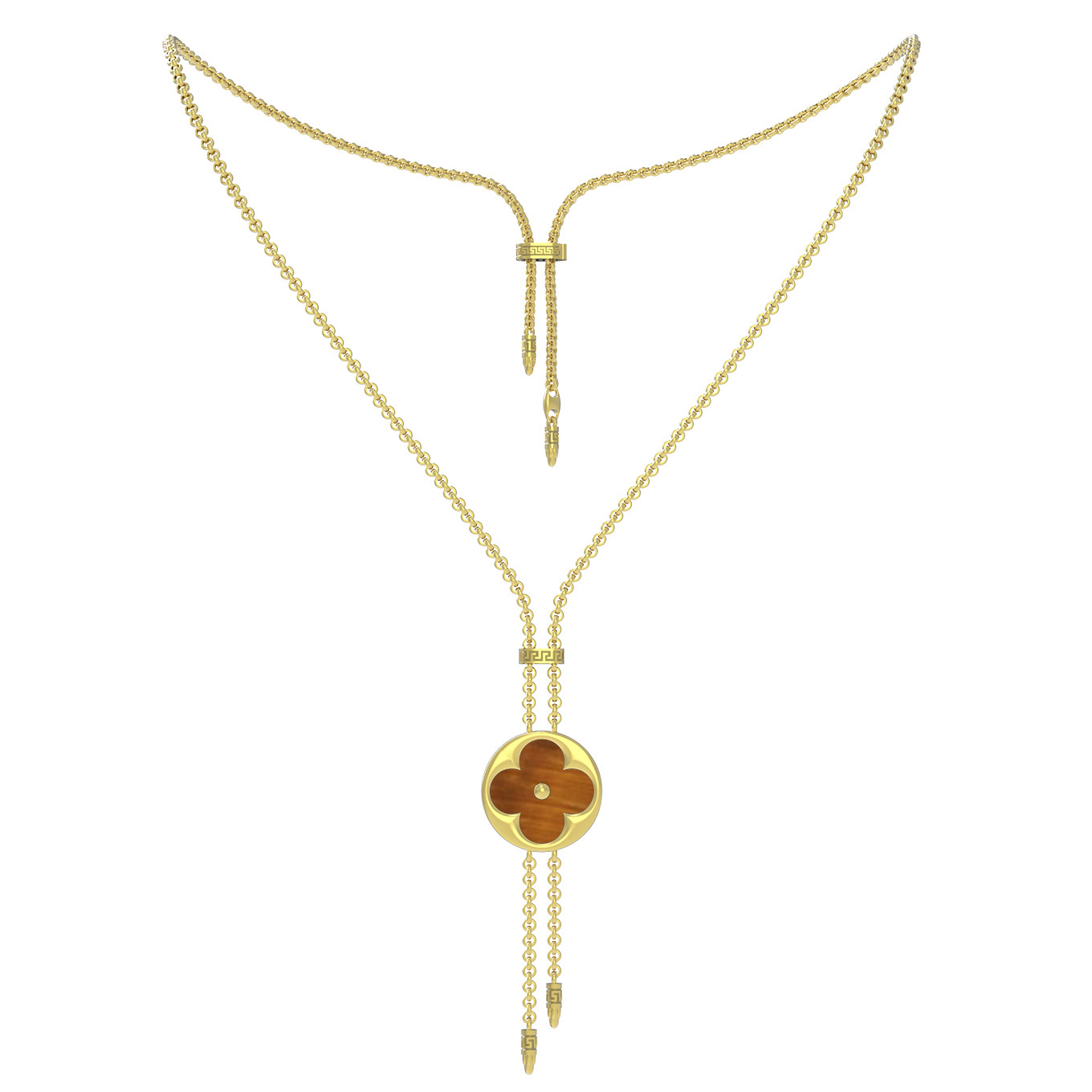 Колье из лимонного золота c тигровым глазом и перламутром