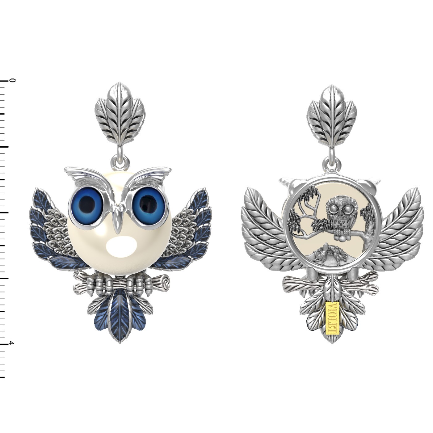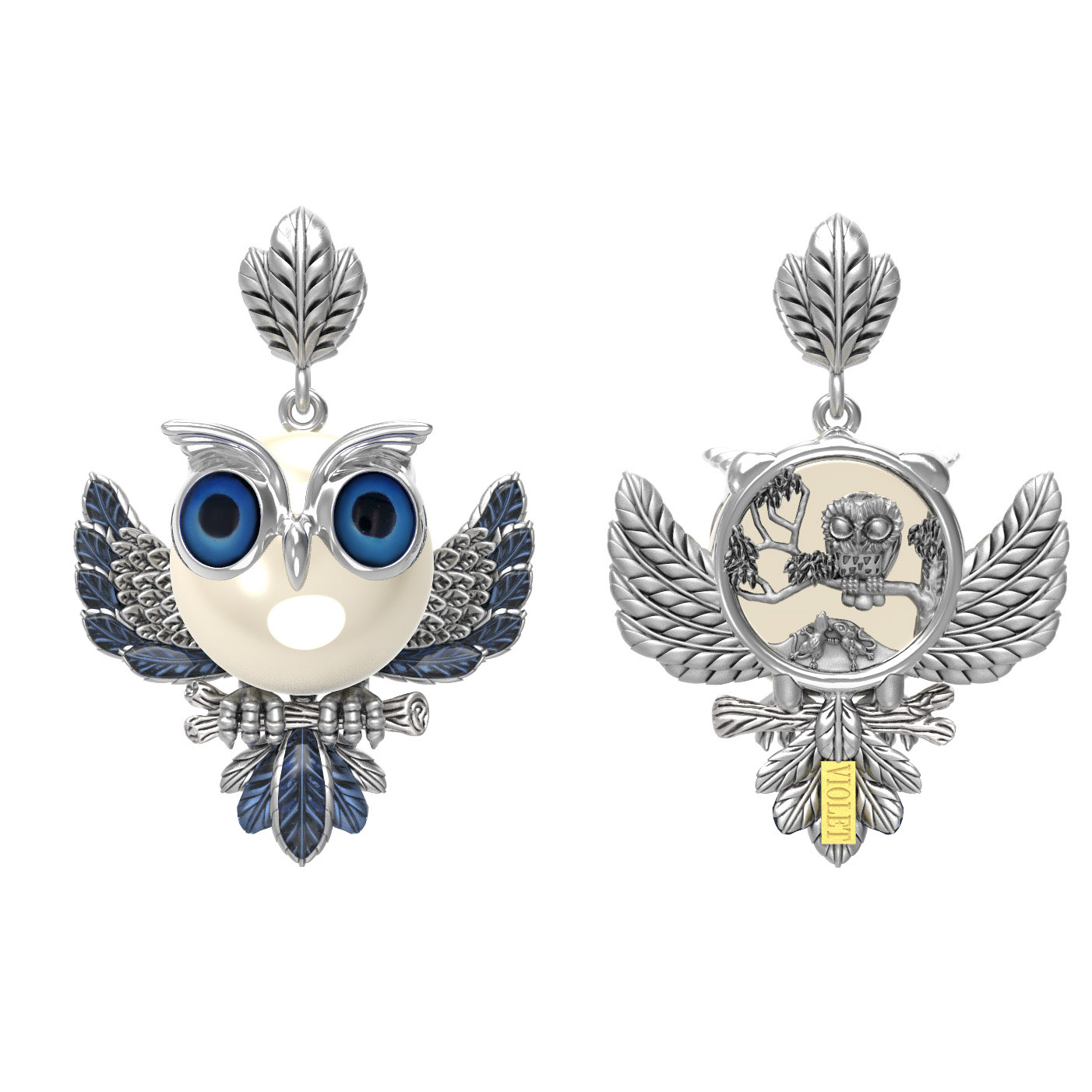 Подвеска из белого золота c эмаль и жемчугом