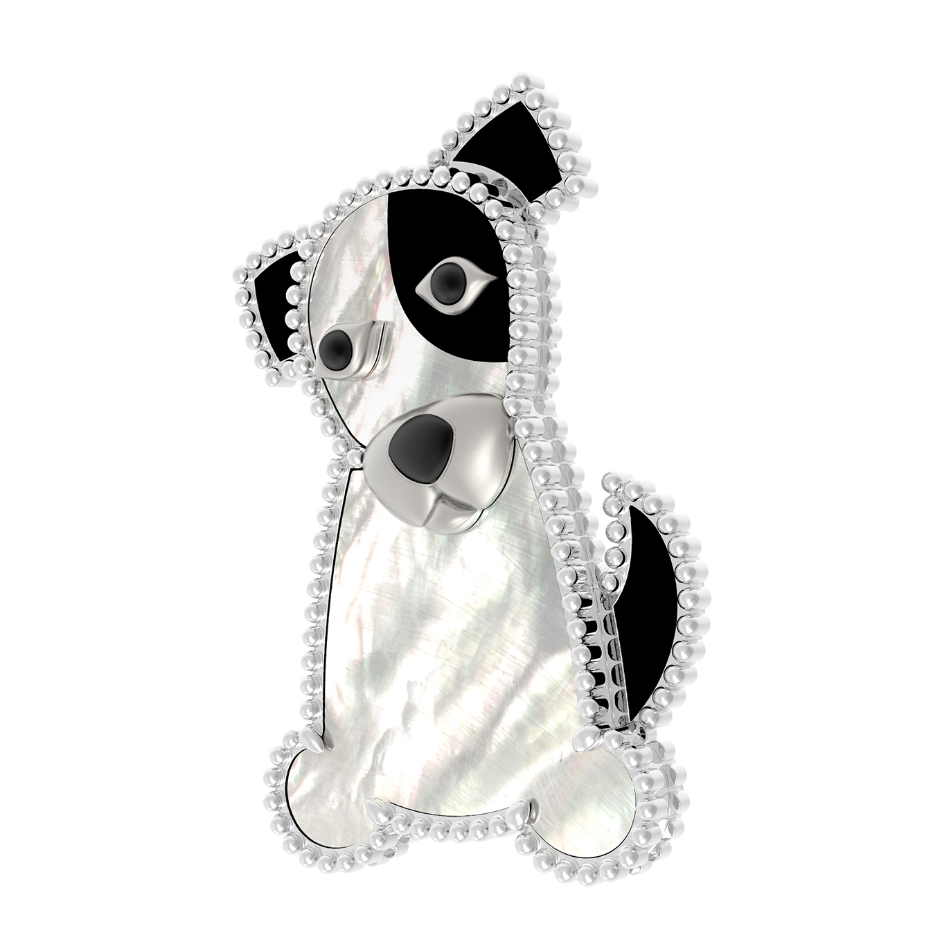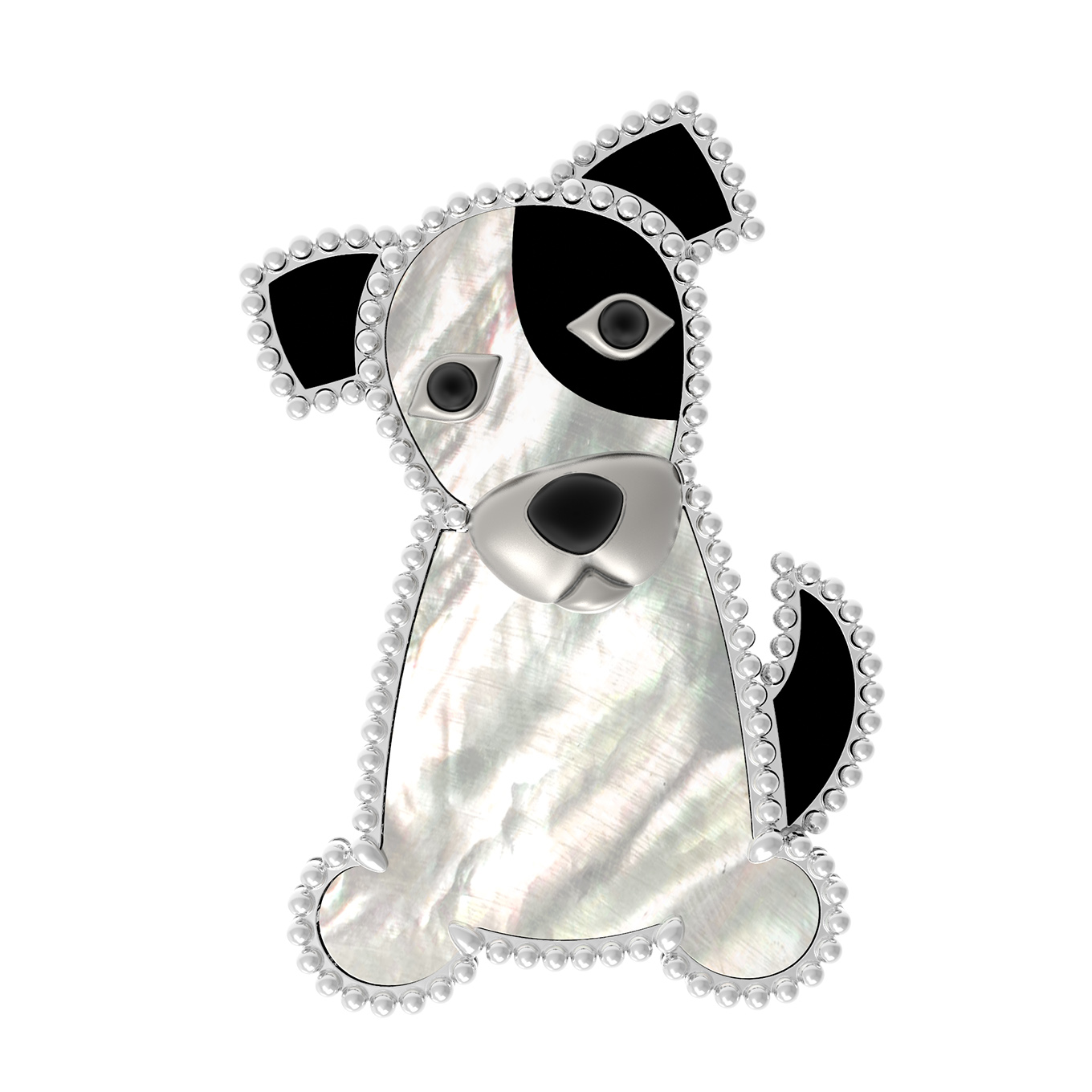 Брошь из белого золота c эмаль, ониксом и перламутром