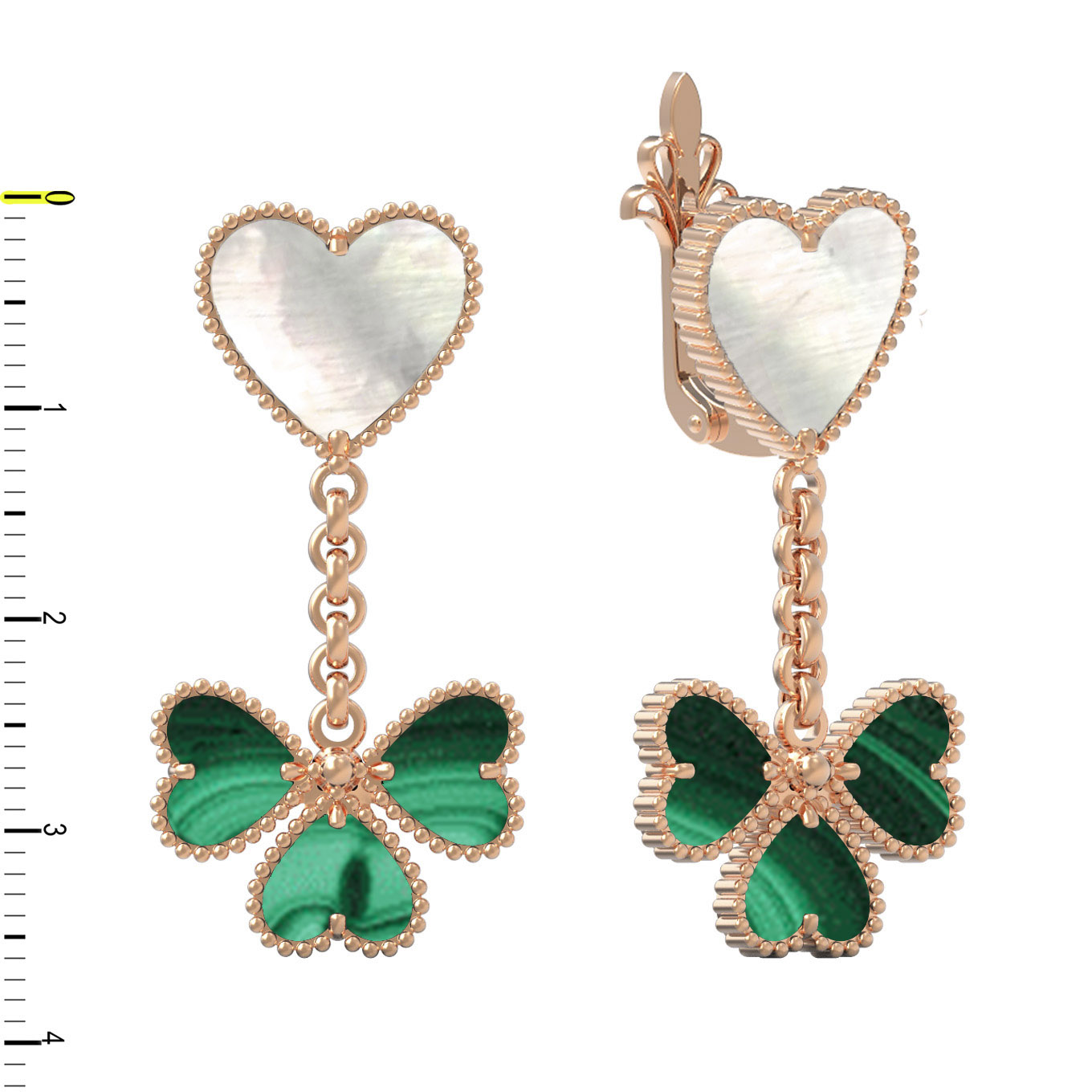 • Серьги из лимонного золота c малахитом и перламутром