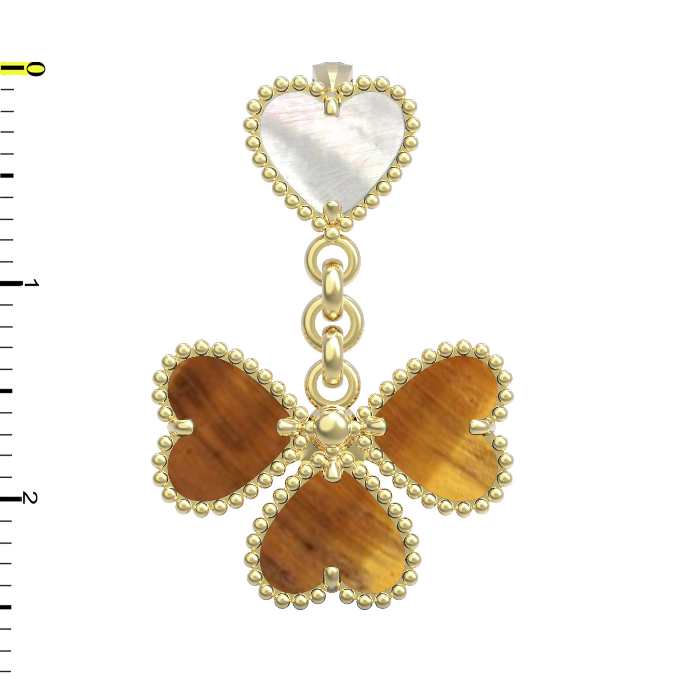 Подвеска из лимонного золота c тигровым глазом и перламутром
